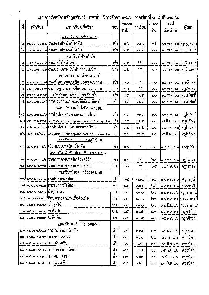 รับสมัครนักศึกษาหลักสูตรวิชาชีพระยะสั้น รุ่นที่ 133/1 ภาคเรียนที่ 1 ปีการศึกษา 2566 (วันที่ 10 เดือน มีนาคม พ.ศ. 2566)