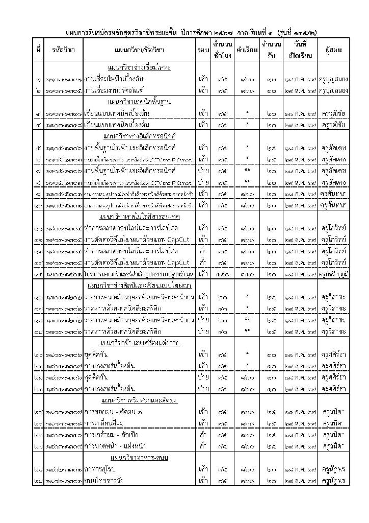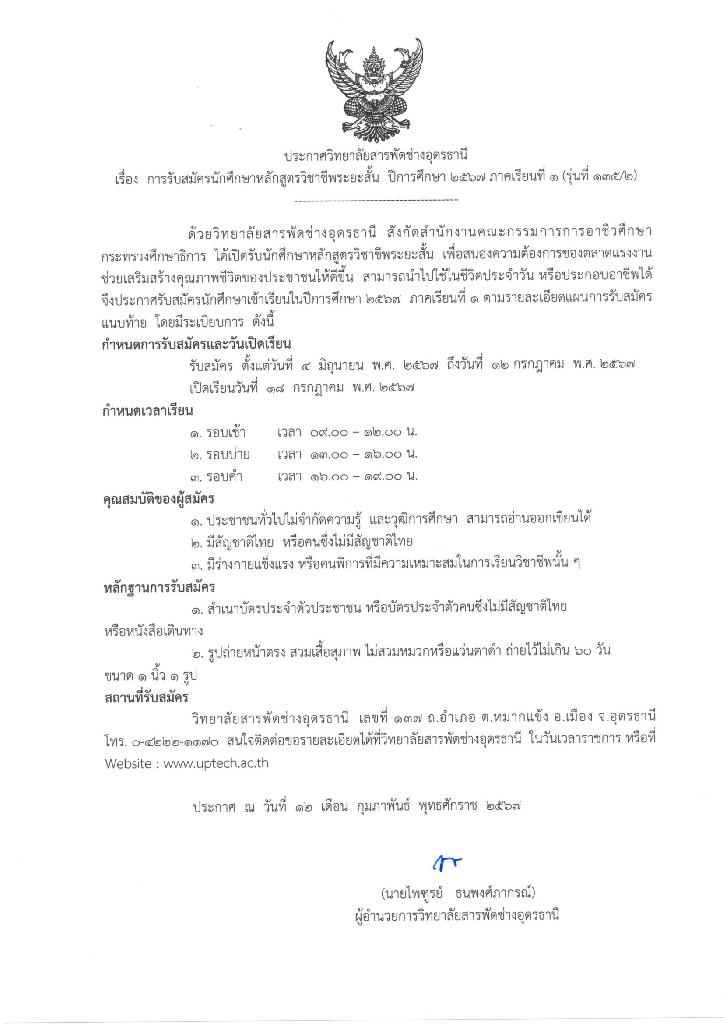 รับสมัครนักศึกษาหลักสูตรวิชาชีพระยะสั้น รุ่นที่ 135/2 (วันที่ 23 เดือน พฤษภาคม พ.ศ. 2567)