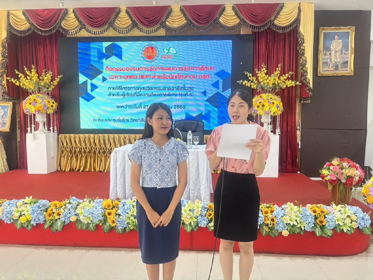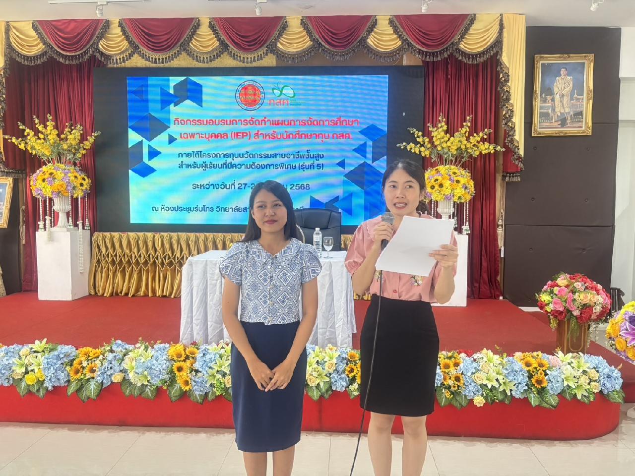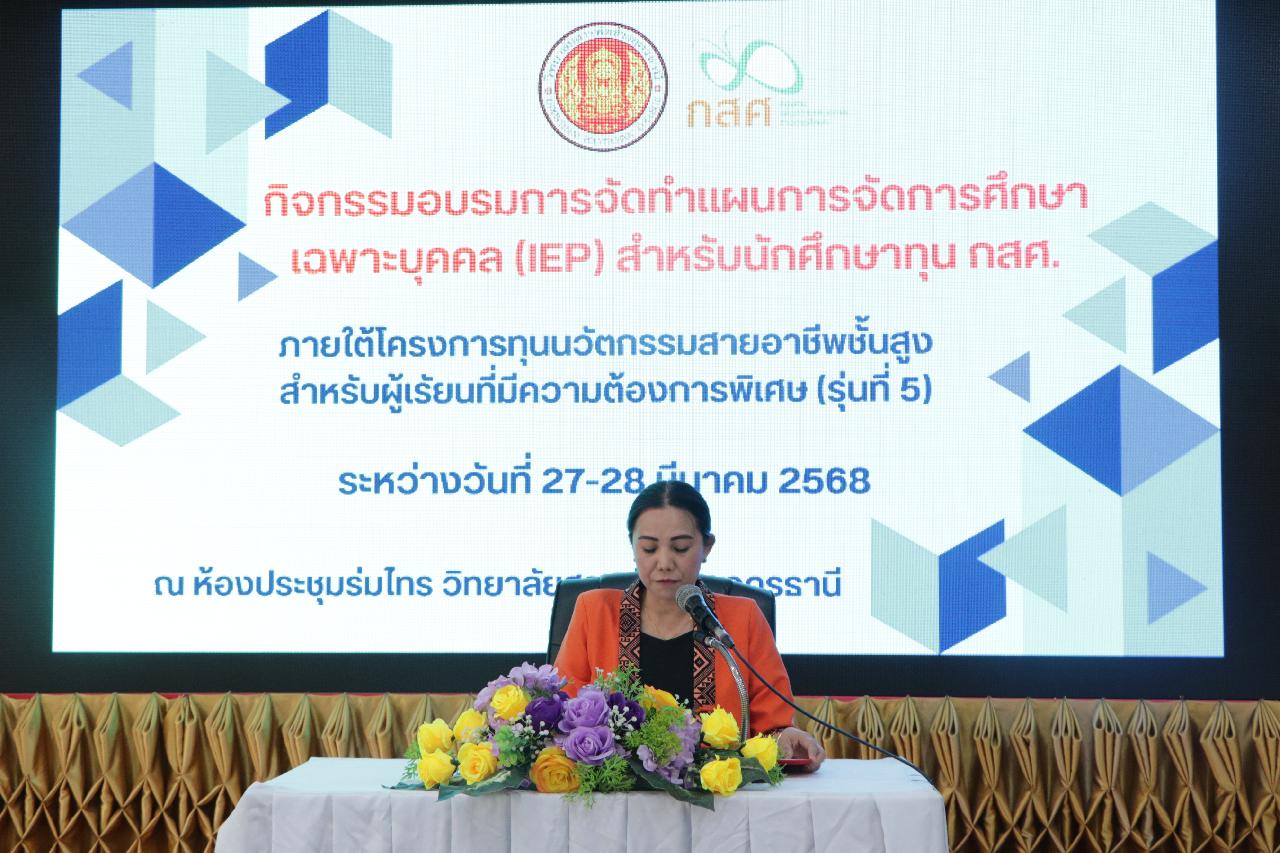 วันพฤหัสบดี ที่ 27 และ วันศุกร์ ที่ 28 มีนาคม 2568 นายไพฑูรย์ ธนพงศ์ภากรณ์ ผู้อำนวยการวิทยาลัยสารพัดช่างอุดรธานี มอบหมายให้ ดร.ยุพาวดี ศิริปีริด์ รองผู้อำนวยการฝ่ายวิชาการ คณะครู และบุคลากรทางการศึกษา เข้าร่วมกิจกรรมอบรมการจัดทำแผนการจัดการศึกษาเฉพาะบุคคล(IEP) สำหรับนักศึกษาทุน กสศ. ภายใต้โครงการทุนนวัตกรรมสายอาชีพชั้นสูง สำหรับผู้เรียนที่มีความต้องการพิเศษ (รุ่นที่ 5) ณ ห้องประชุมร่มไทร ชั้น 3 อาคารอำนวยการ วิทยาลัยสารพัดช่างอุดรธานี