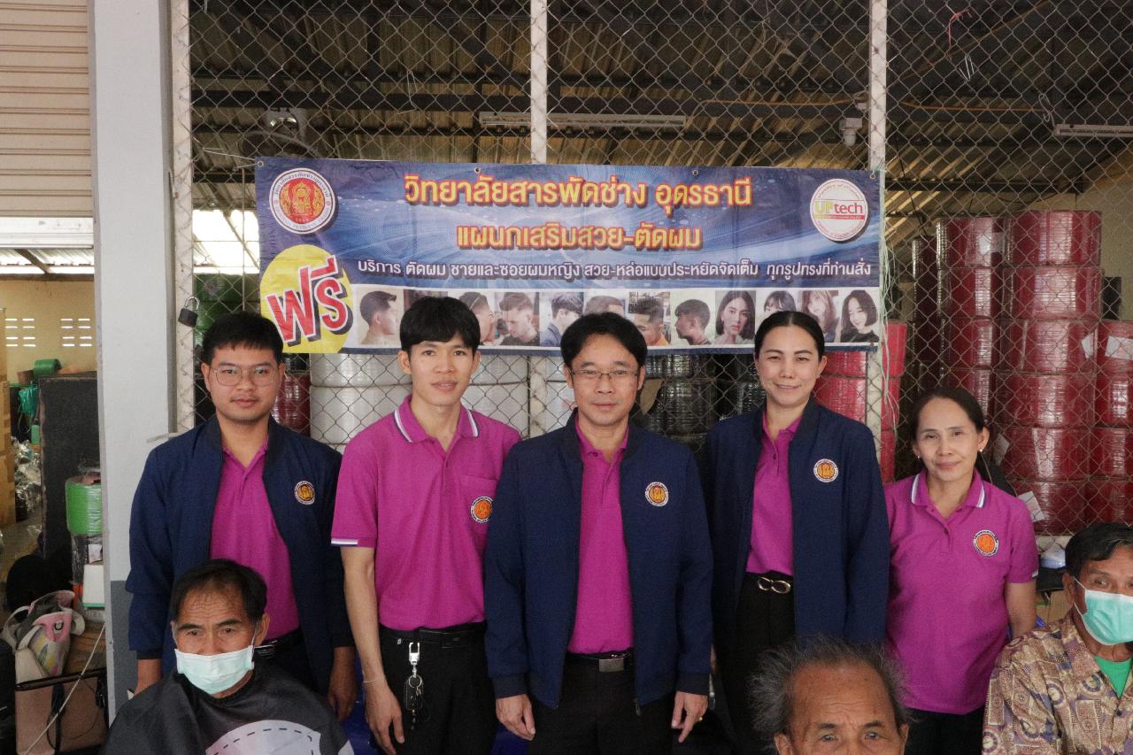 วันพุธ ที่ 2 เมษายน 2568 นายไพฑูรย์ ธนพงศ์ภากรณ์ ผู้อำนวยการวิทยาลัยสารพัดช่างอุดรธานี พร้อมด้วย ดร.ยุพาวดี ศิริปีริด์ รองผู้อำนวยการฝ่ายวิชาการ, คณะครูแผนกอาหาร และคณะครูแผนกตัดผม-เสริมสวย เข้าร่วมโครงการสังคมสร้างสรรค์แบ่งปันให้คนพิการ จังหวัดอุดรธานี ประจำปีการศึกษา 2568 ณศูนย์ฝึกอาชีพคนพิการ สมาคมรวมใจคนพิการจังหวัดอุดรธานี ตำบลสามพร้าว อำเภอเมือง จังหวัดอุดรธานี