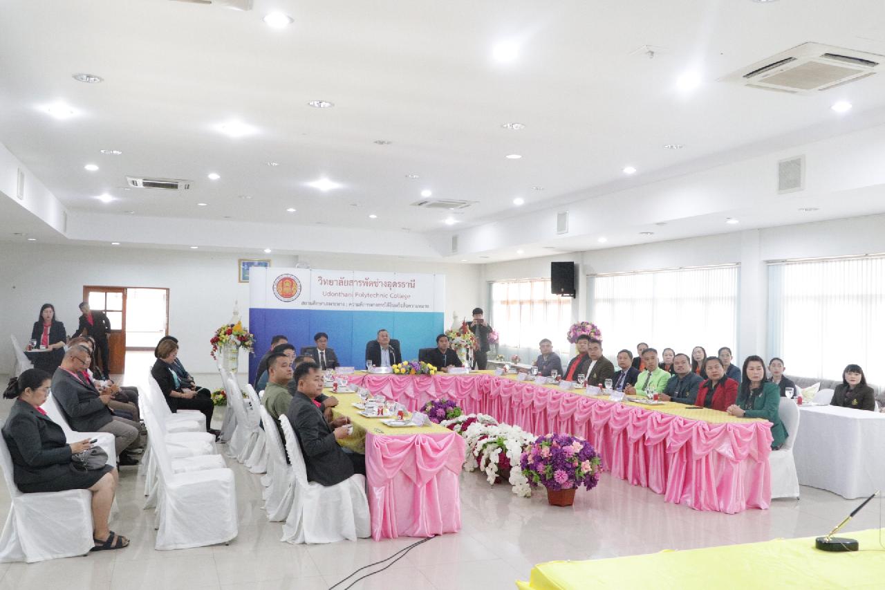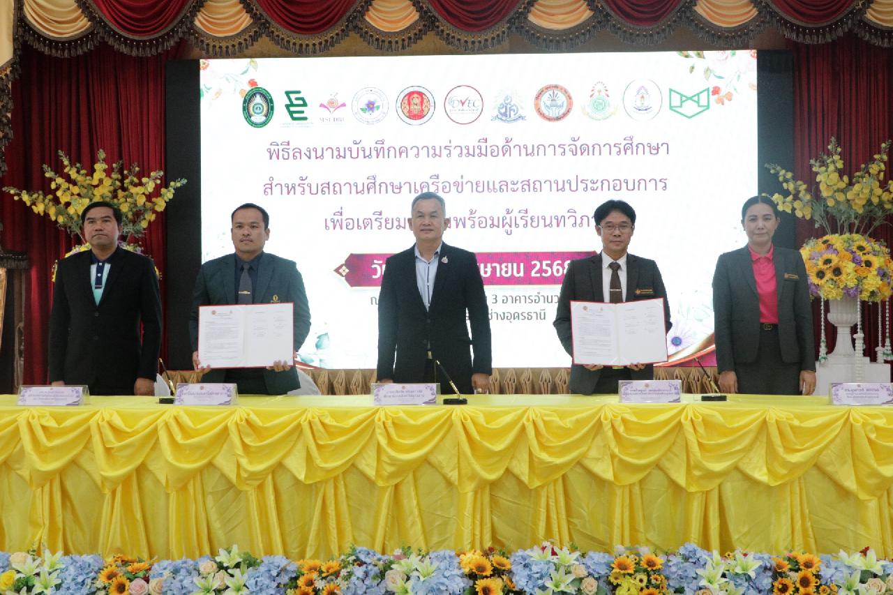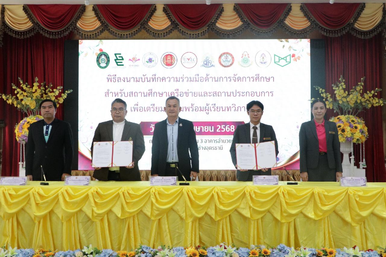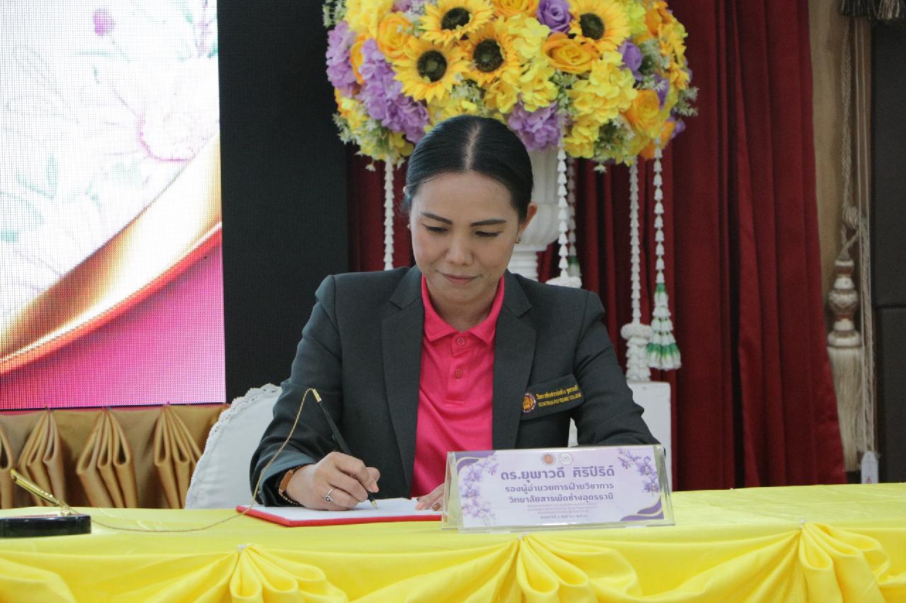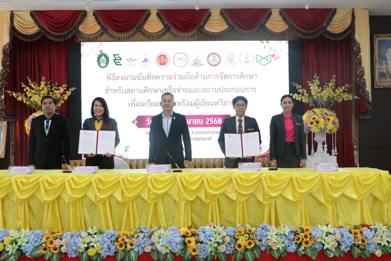วันศุกร์ ที่ 4 เมษายน 2568 นายไพฑูรย์ ธนพงศ์ภากรณ์ ผู้อำนวยการวิทยาลัยสารพัดช่างอุดรธานี พร้อมด้วย คณะผู้บริหาร, คณะครู และบุคลากรทางการศึกษา เข้าร่วมพิธีลงนามบันทึกความร่วมมือด้านการจัดการศึกษา สำหรับสถานศึกษาเครือข่ายและสถานประกอบการ เพื่อเตรียมความพร้อมผู้เรียนทวิภาคี ณ ห้องประชุมร่มไทร่ ชั้น 3 อาคารอำนวยการ วิทยาลัยสารพัดช่างอุดรธานี