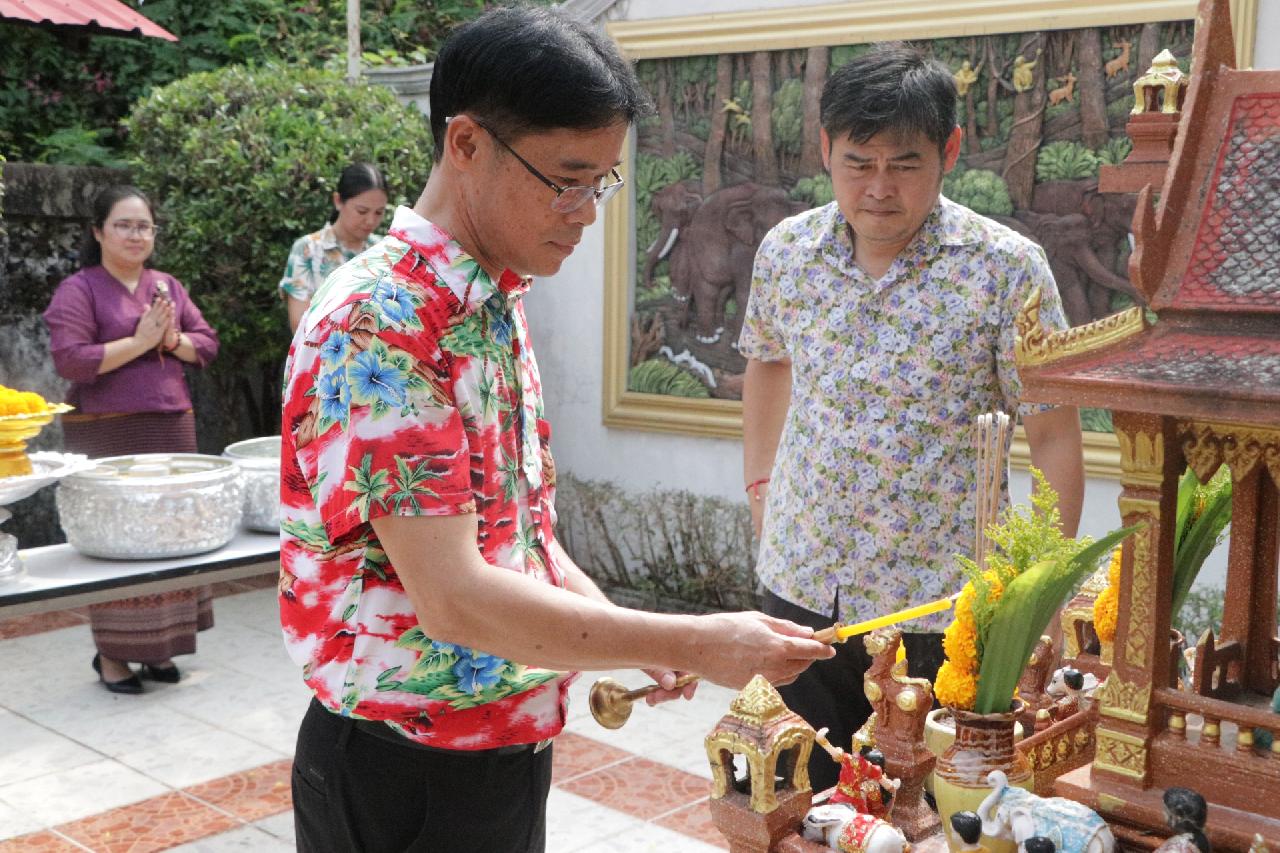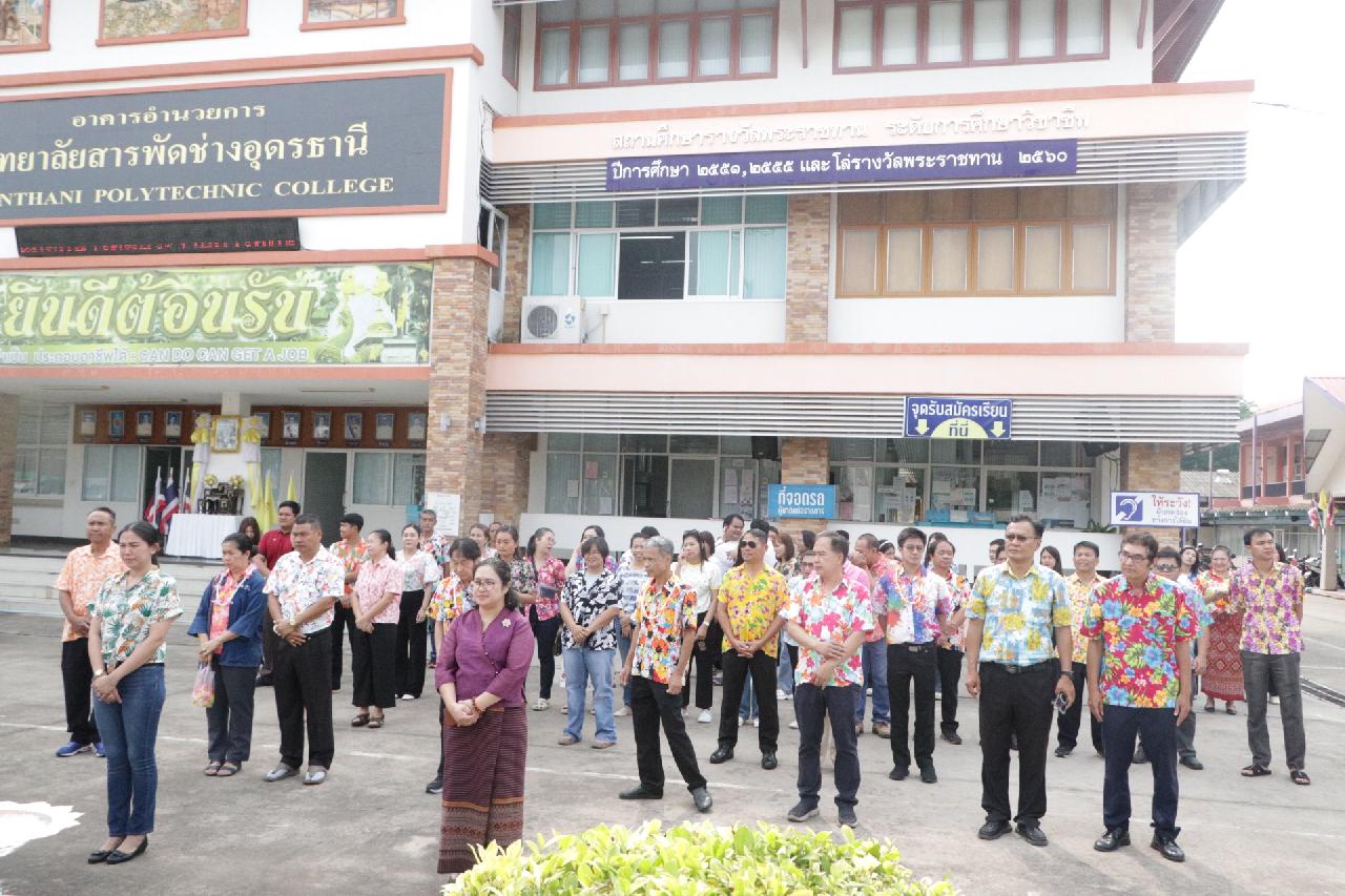 วันพฤหัสบดี ที่ 10 เมษายน 2568 นายไพฑูรย์ ธนพงศ์ภากรณ์ ผู้อำนวยการวิทยาลัยสารพัดช่างอุดรธานี พร้อมด้วย คณะผู้บริหาร คณะครู และบุคลากรทางการศึกษา เข้าร่วมโครงการสืบสานวัฒนธรรมประเพณีสงกรานต์ ประจำปี 2568 ณ โดมอเนกประสงค์ วิทยาลัยสารพัดอุดรธานี