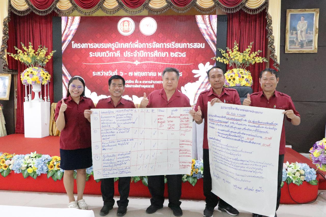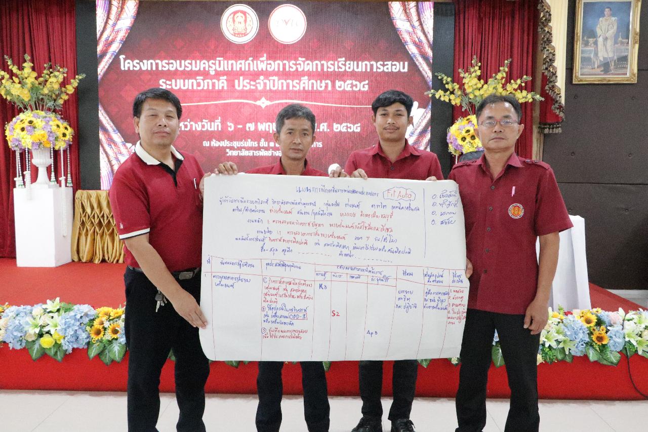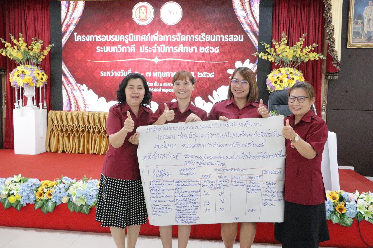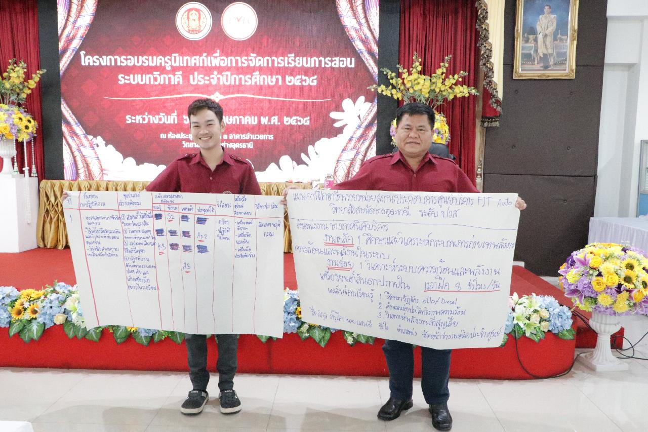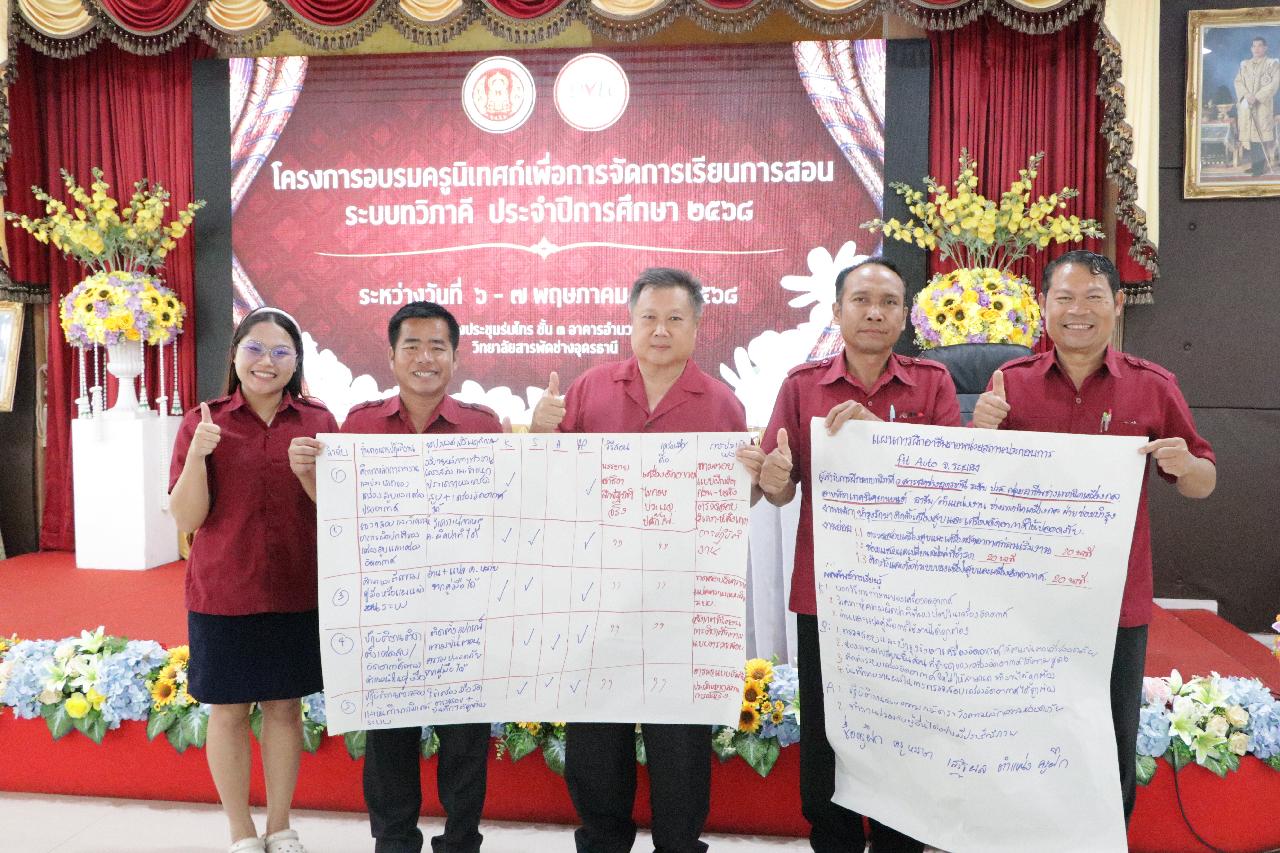 วันพุธ ที่ 7 พฤษภาคม 2568 นายไพฑูรย์ ธนพงศ์ภากรณ์ ผู้อำนวยการวิทยาลัยสารพัดช่างอุดรธานี มอบหมายให้ ว่าที่ร้อยโท อภิเดช สารคำ รองผู้อำนวยการฝ่ายบริหารทรัพยากร, ดร.ยุพาวดี ศิริปีริด์ รองผู้อำนวยการฝ่ายวิชาการ, คณะครู, และบุคลากรทางการศึกษา เข้าร่วมโครงการอบรมครูนิเทศก์เพื่อการจัดการเรียนการสอนระบบทวิภาคี ประจำปีการศึกษา 2568 ณ ห้องประชุมร่มไทร่ชั้น 3 อาคารอำนวยการ วิทยาลัยสารพัดช่างอุดรธานี