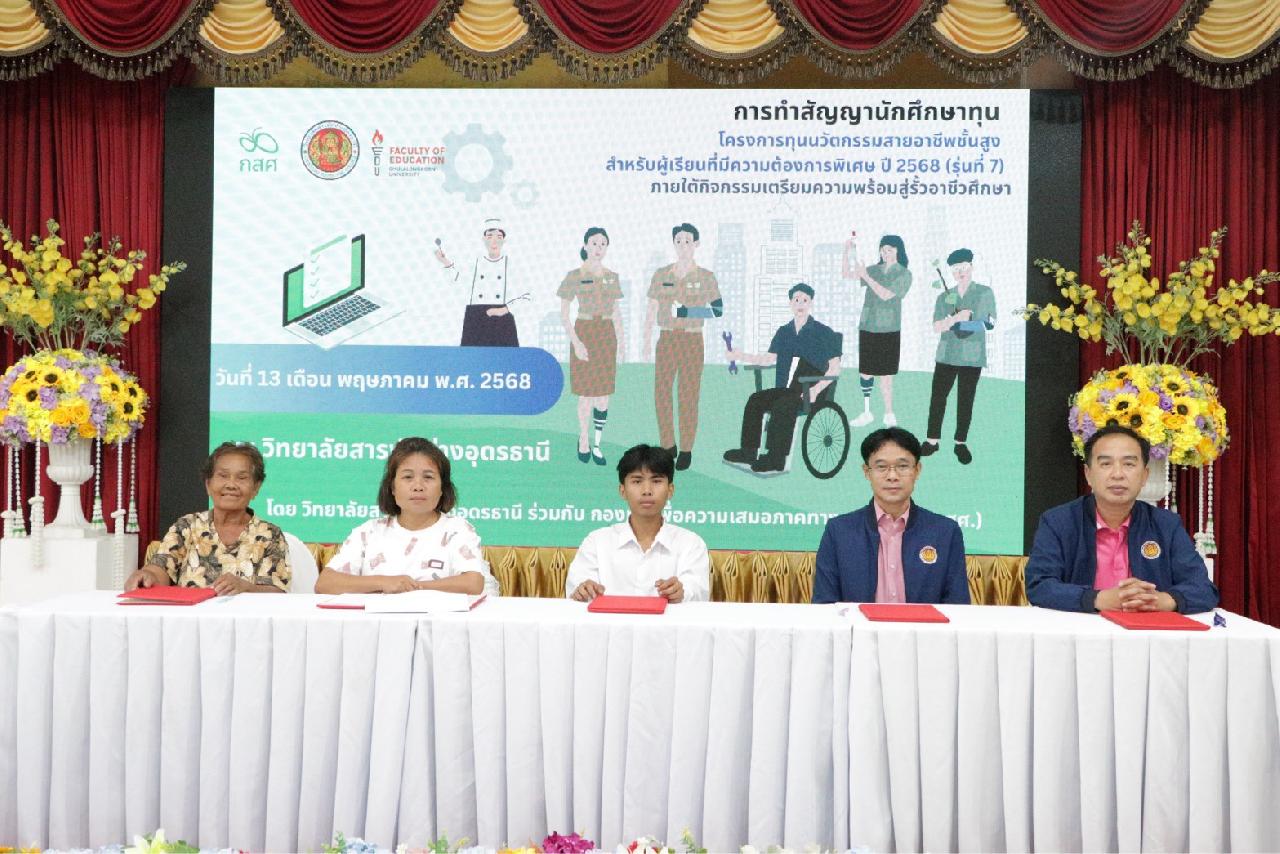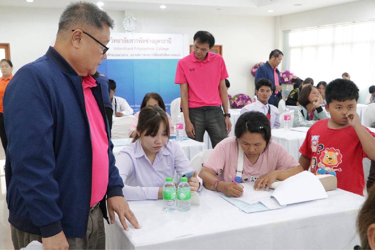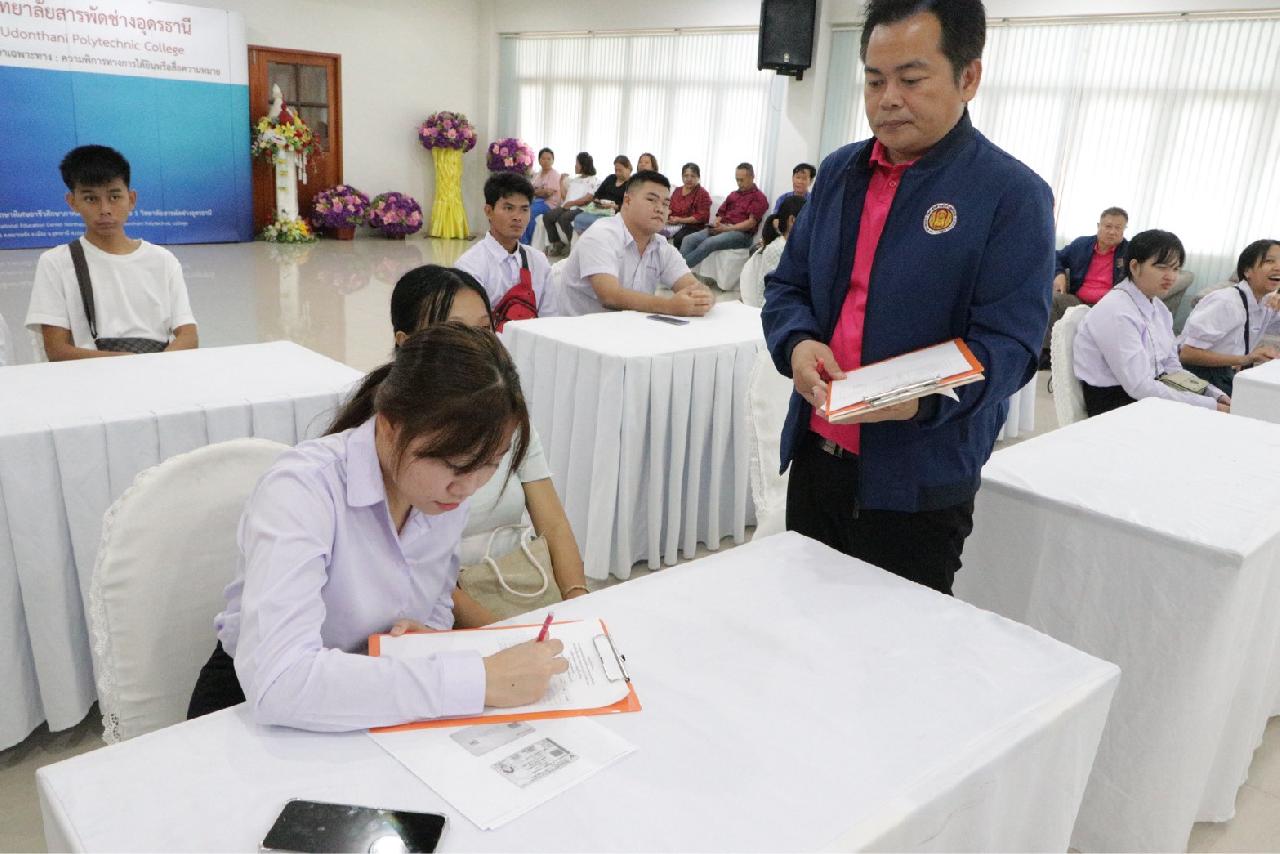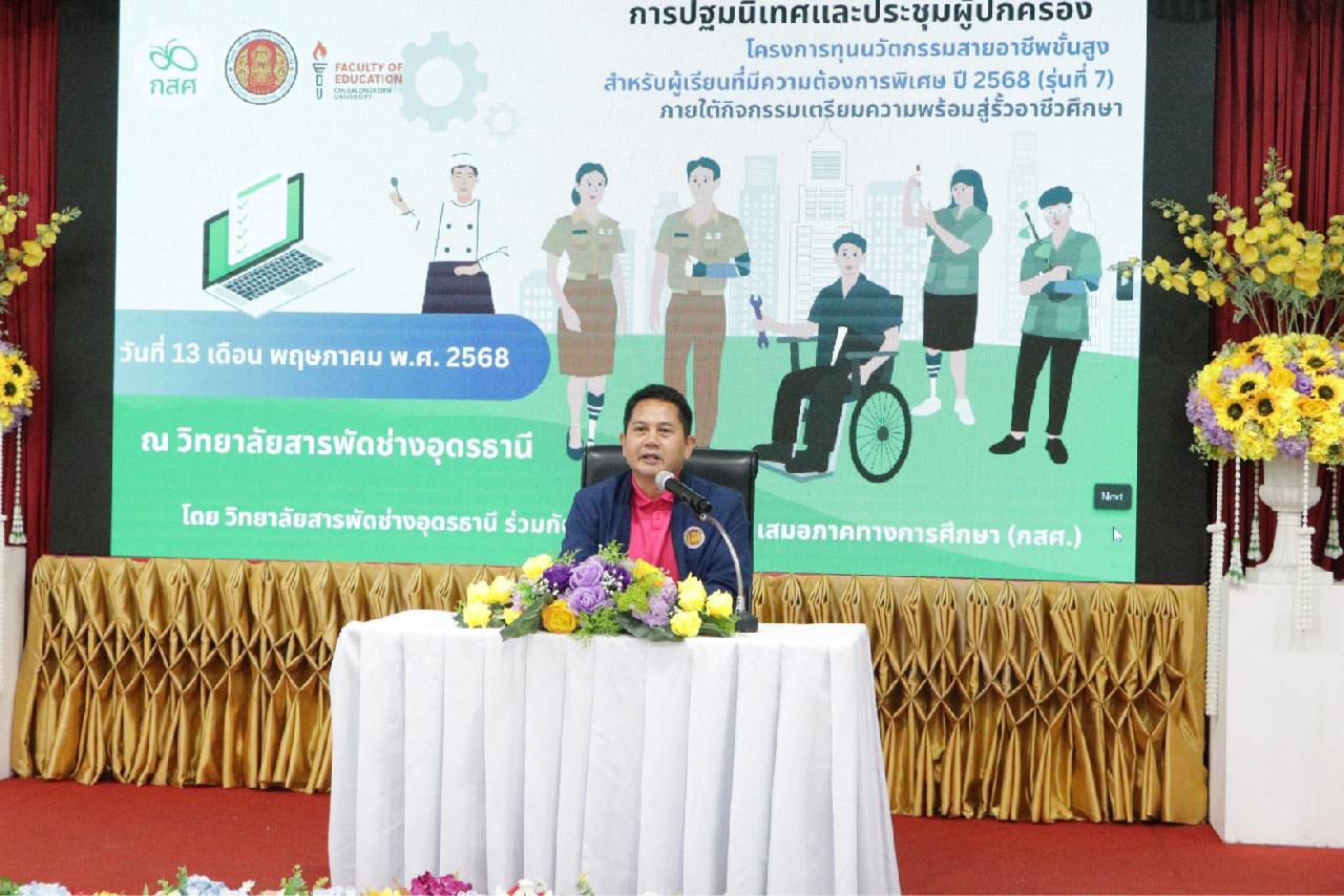 วันอังคาร ที่ 13 พฤษภาคม 2568 นายไพฑูรย์ ธนพงศ์ภากรณ์ ผู้อำนวยการวิทยาลัยสารพัดช่างอุดรธานี พร้อมด้วย ว่าที่ร้อยโท อภิเดช สารคำ รองผู้อำนวยการฝ่ายบริหารทรัพยากร, ดร.ยุพาวดี ศิริปีริด์ รองผู้อำนวยการฝ่ายวิชาการ, คณะครู, และบุคลากรทางการศึกษา เข้าร่วมการปฐมนิเทศและประชุมผู้ปกครอง โครงการทุนนวัตกรรมสายอาชีพชั้นสูง สำหรับผู้เรียนที่มีความต้องการพิเศษ ปี 2568 (รุ่นที่ 7) ณ ห้องประชุมร่มไทรชั้น 3 อาคารอำนวยการ วิทยาลัยสารพัดช่างอุดรธานี