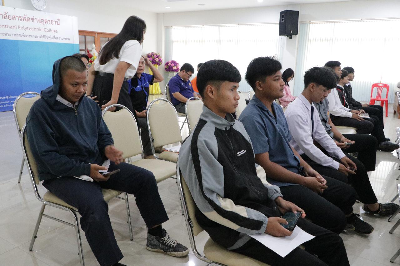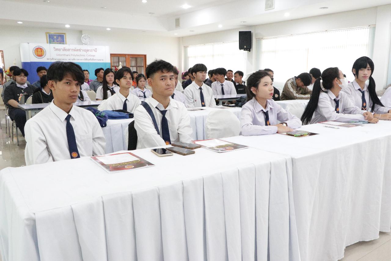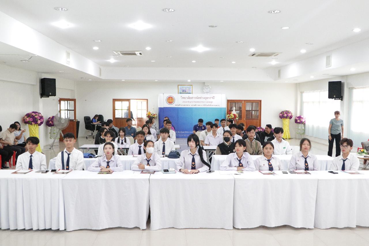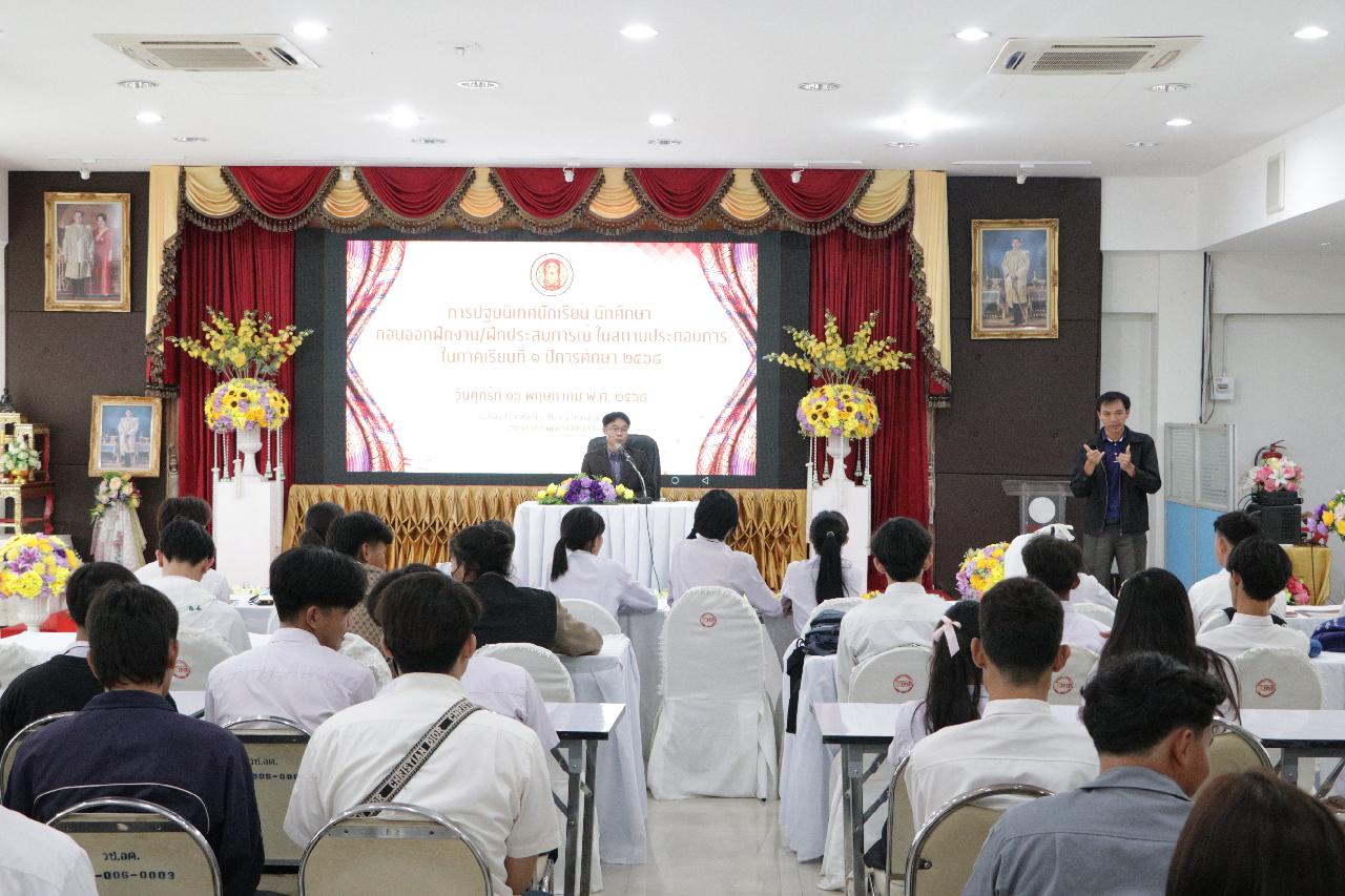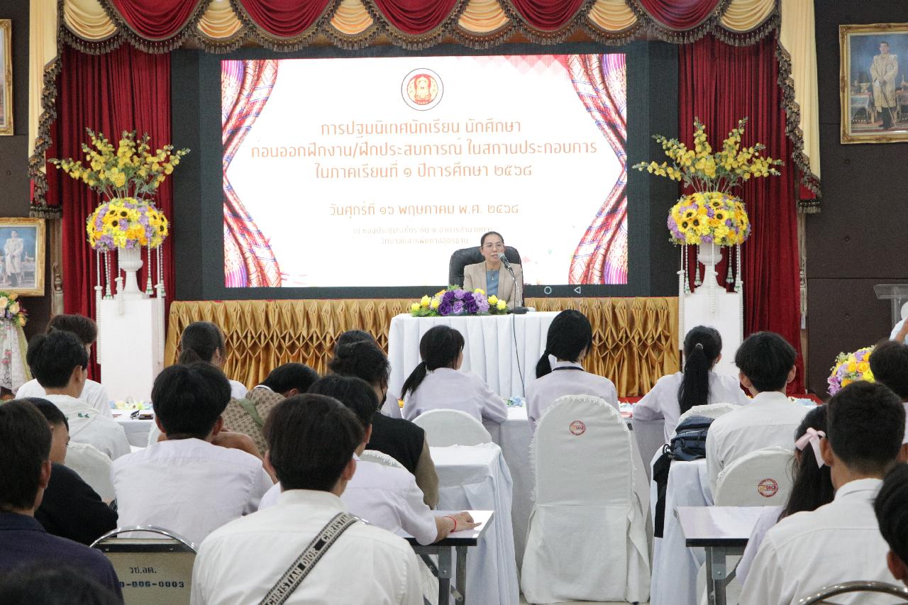 วันศุกร์ ที่ 16 พฤษภาคม 2568 นายไพฑูรย์ ธนพงศ์ภากรณ์ ผู้อำนวยการวิทยาลัยสารพัดช่างอุดรธานี พร้อมด้วย ดร.ยุพาวดี ศิริปีริด์ รองผู้อํานวยการฝ่ายวิชาการ, คณะครู และบุคลากรทางการศึกษา ร่วมการปฐมนิเทศนักเรียน นักศึกษาก่อนออกฝึกงาน/ฝึกประสบการณ์ ในสถานประกอบการ ในภาคเรียนที่ 1 ปีการศึกษา 2568 ณ ห้องประชุมร่มไทร ชั้น 3 อาคารอำนวยการ วิทยาลัยสารพัดช่างอุดรธานี