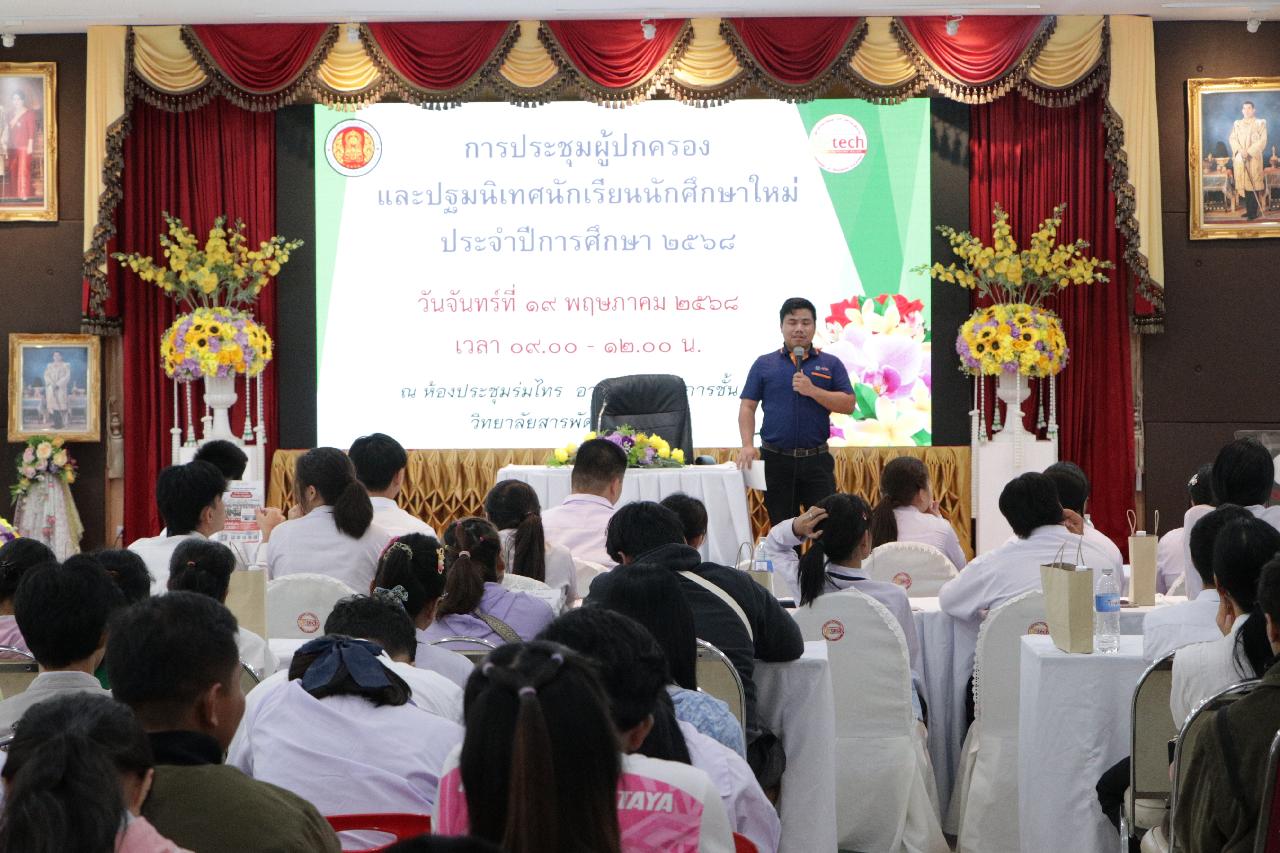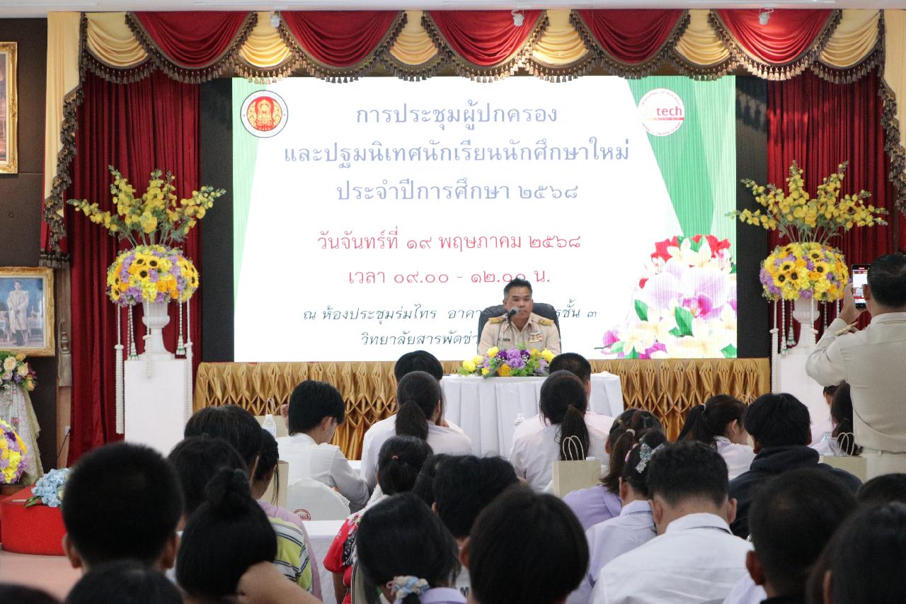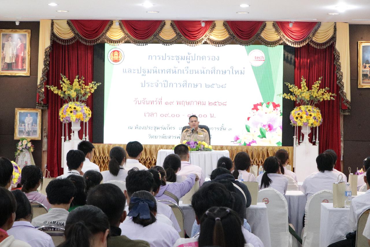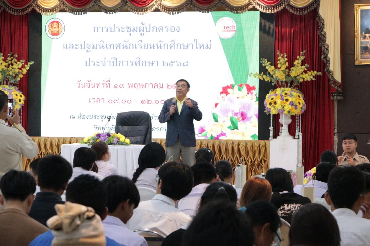 วันจันทร์ ที่ 19 พฤษภาคม 2568 นายไพฑูรย์ ธนพงศ์ภากรณ์ ผู้อำนวยการวิทยาลัยสารพัดช่างอุดรธานี พร้อมด้วย คณะผู้บริหาร คณะครู และบุคลากรทางการศึกษา เข้าร่วมการประชุมผู้ปกครองและปฐมนิเทศนักเรียน นักศึกษาใหม่ ประจำปีการศึกษา 2568 ณ ห้องประชุมร่มไทร ชั้น 3 อาคารอำนวยการ วิทยาลัยสารพัดช่างอุดรธานี