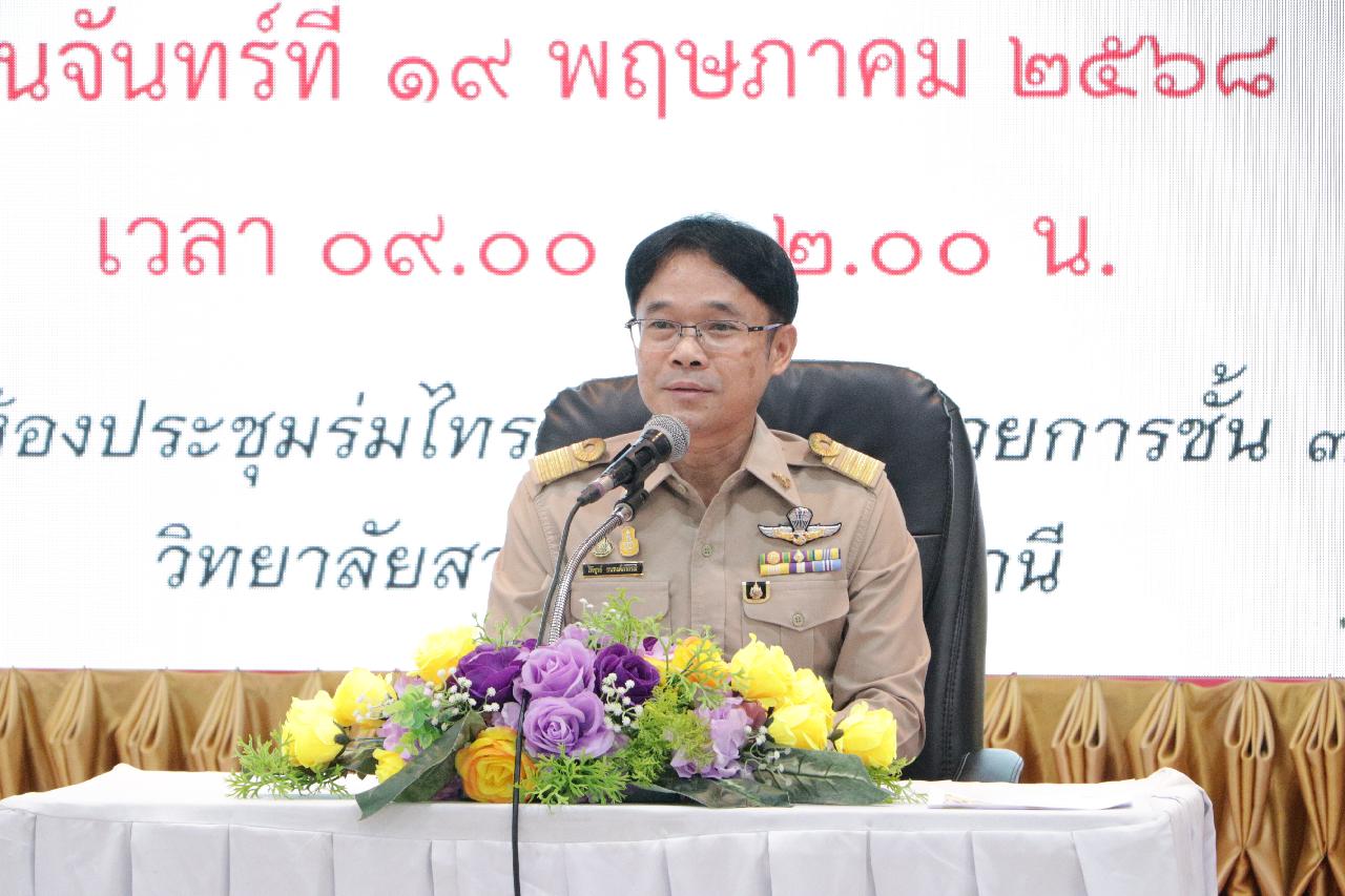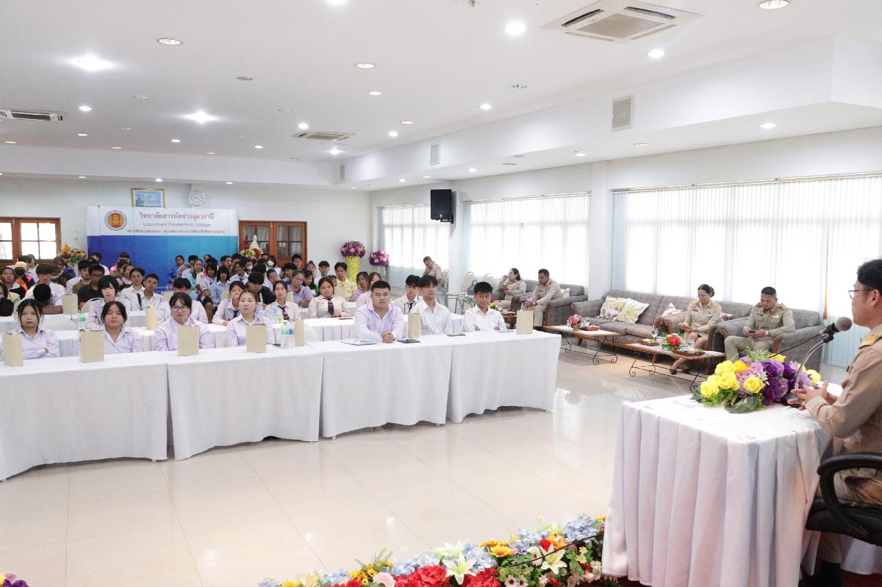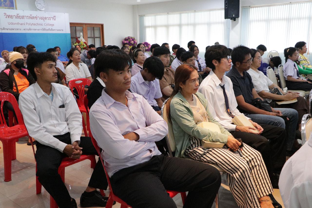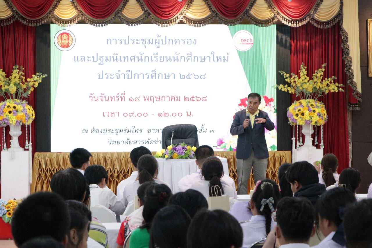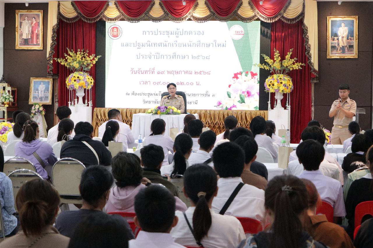 วันจันทร์ ที่ 19 พฤษภาคม 2568 นายไพฑูรย์ ธนพงศ์ภากรณ์ ผู้อำนวยการวิทยาลัยสารพัดช่างอุดรธานี พร้อมด้วย คณะผู้บริหาร คณะครู และบุคลากรทางการศึกษา เข้าร่วมการประชุมผู้ปกครองและปฐมนิเทศนักเรียน นักศึกษาใหม่ ประจำปีการศึกษา 2568 ณ ห้องประชุมร่มไทร ชั้น 3 อาคารอำนวยการ วิทยาลัยสารพัดช่างอุดรธานี