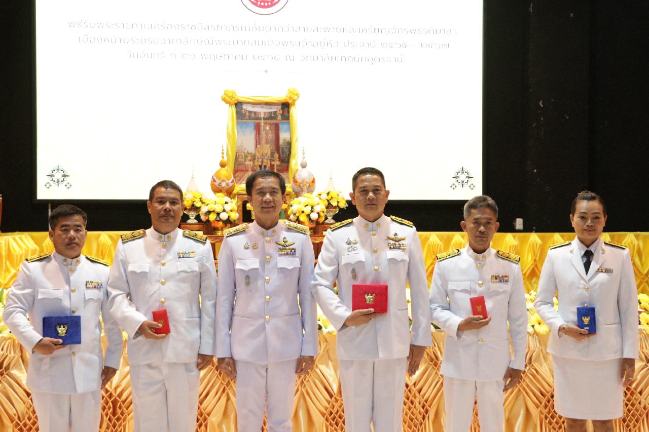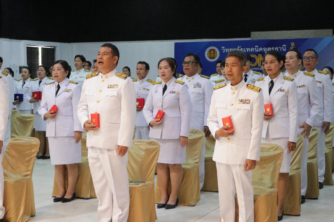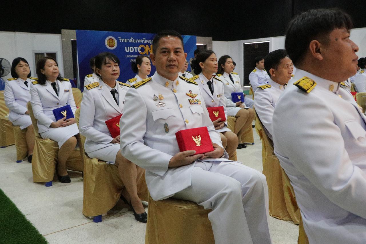 วันจันทร์ ที่ 26 พฤษภาคม 2568 นายไพฑูรย์ ธนพงศ์ภากรณ์ ผู้อำนวยการวิทยาลัยสารพัดช่างอุดรธานี มอบหมายให้ ว่าที่ร้อยโทอภิเดช สารคำ รองผู้อำนวยการฝ่ายบริหารทรัพยากร และคณะครู เข้าร่วมพิธีรับพระราชทานเครื่องราชอิสริยาภรณ์ชั้นต่ำกว่าสายสะพายและเหรียญจักรพรรดิมาลา เบื้องหน้าพระบรมฉายาลักษณ์พระบาทสมเด็จพระเจ้าอยู่หัว ประจำปี 2565-2567 ณ วิทยาลัยเทคนิคอุดรธานี
