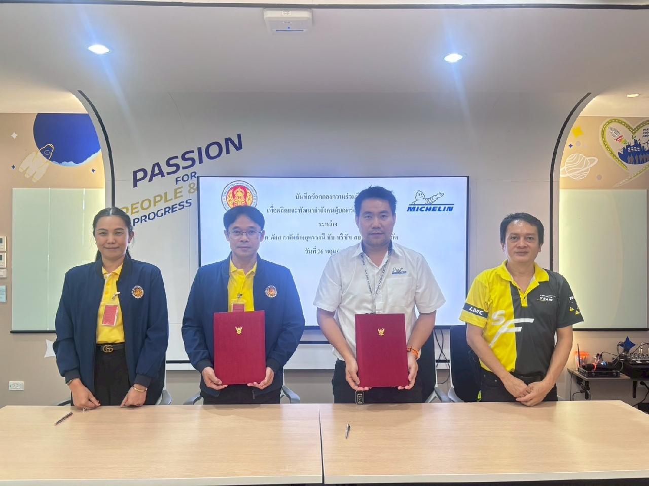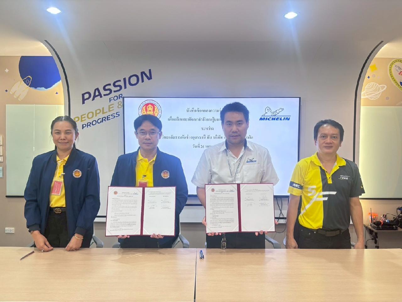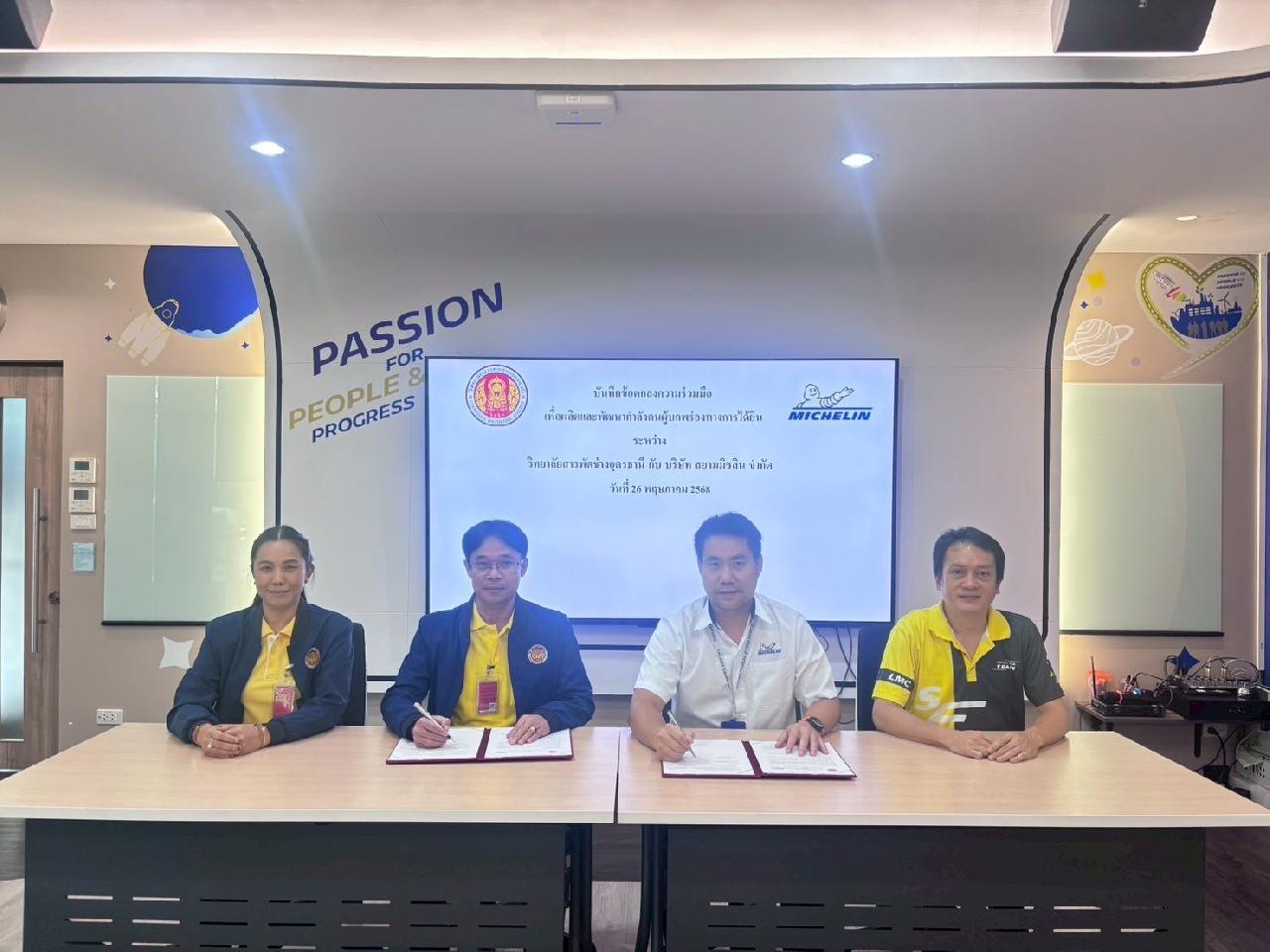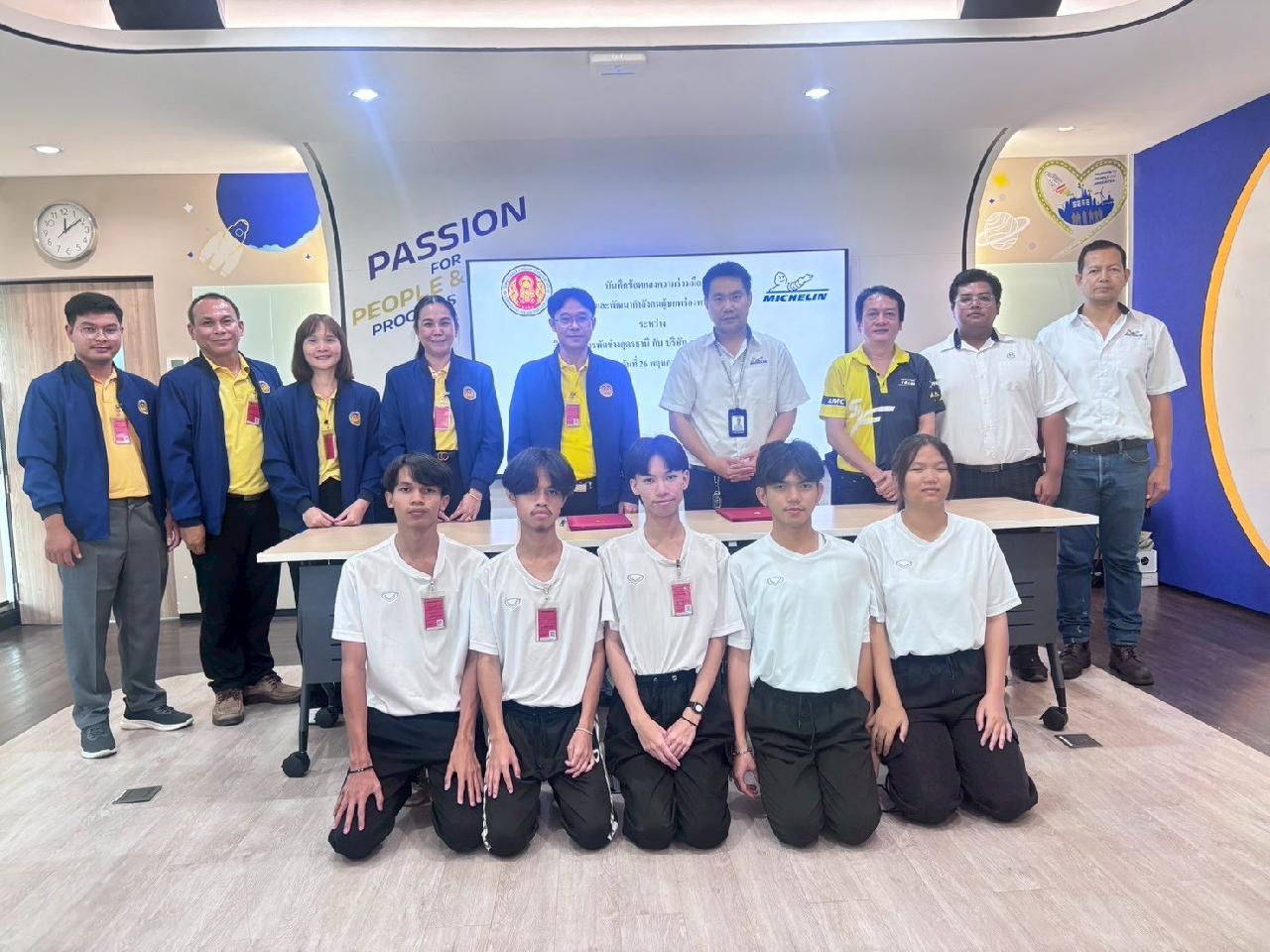 วันจันทร์ ที่ 26 พฤษภาคม 2568 นายไพฑูรย์ ธนพงศ์ภากรณ์ ผู้อำนวยการวิทยาลัยสารพัดช่างอุดรธานี พร้อมด้วย ดร.ยุพาวดี ศิริปีริด์ รองผู้อํานวยการฝ่ายวิชาการ, คณะครู นักศึกษาสาขาวิชาดิจิทัลกราฟิกและสาขาวิชาไฟฟ้า เข้าศึกษาดูงาน และบันทึกลงนามความร่วมมือกับสถานประกอบการ โดยผู้แทนบริษัทสยามมิชลิน จำกัด คือ นายอนุสร เอื้อประโยชน์กุล ผู้จัดการฝ่ายบุคคล ร่วมบันทึกลงนามฯ ณ บริษัท สยามมิชลิน อำเภอศรีราชา จังหวัดชลบุรี
