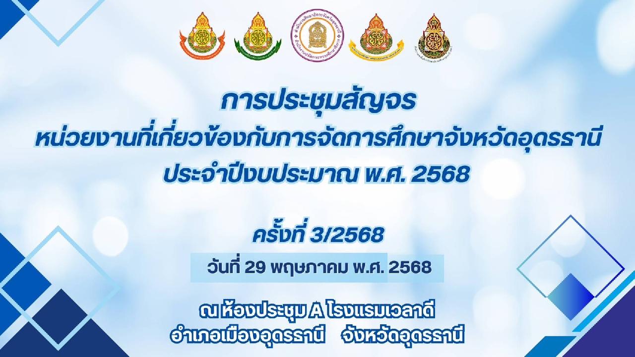 วันพฤหัสบดี ที่ 29 พฤษภาคม 2568 นายไพฑูรย์ ธนพงศ์ภากรณ์ ผู้อำนวยการวิทยาลัยสารพัดช่างอุดรธานี มอบหมายให้ ดร.ยุพาวดี ศิริปีริด์ รองผู้อำนวยการฝ่ายวิชาการ เข้าร่วมการประชุมสัญจรหน่วยงานที่เกี่ยวกับการจัดการศึกษาจังหวัดอุดรธานี้ ครั้งที่ 3 ณ ห้องประชุม A โรงแรมเวลาดี อุดรธานี อำเภอเมืองอุดรธานี จังหวัดอุดรธานี