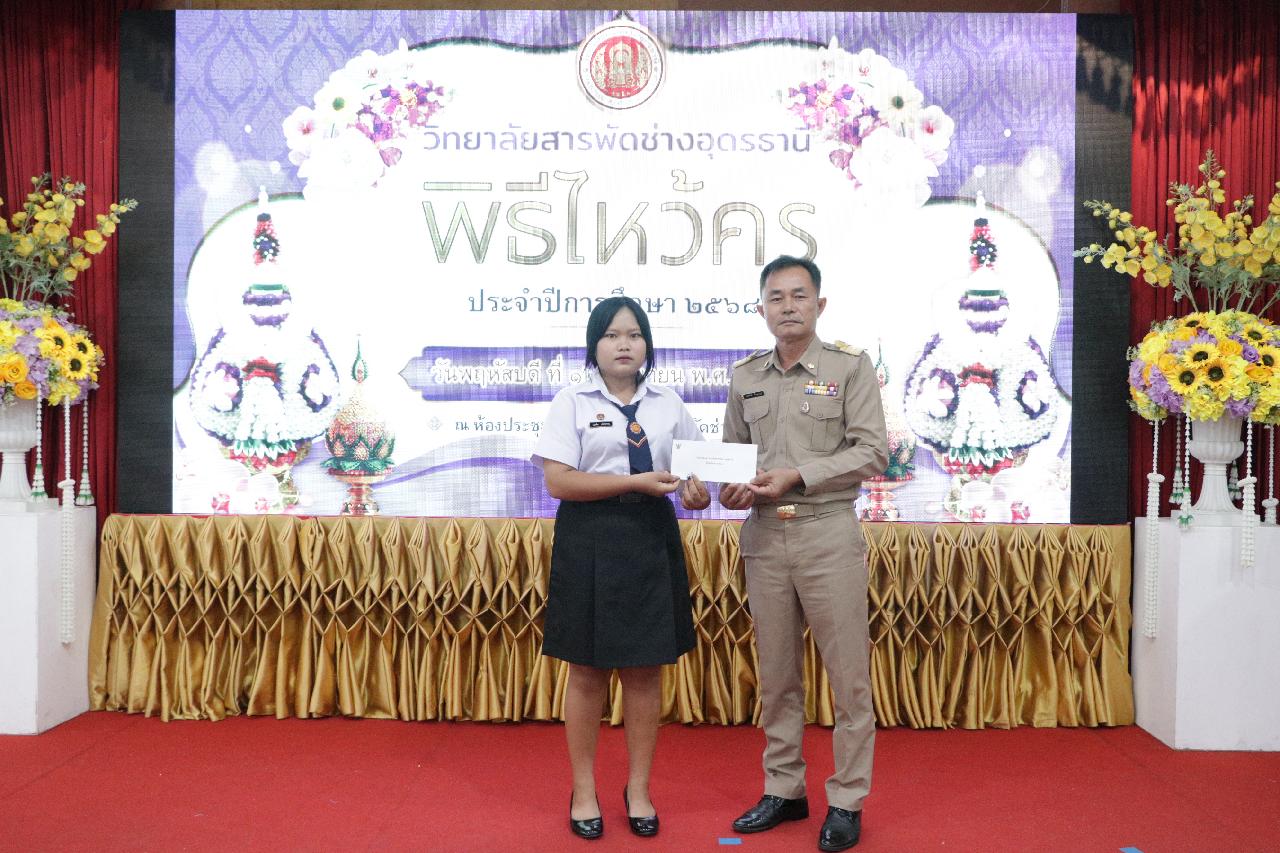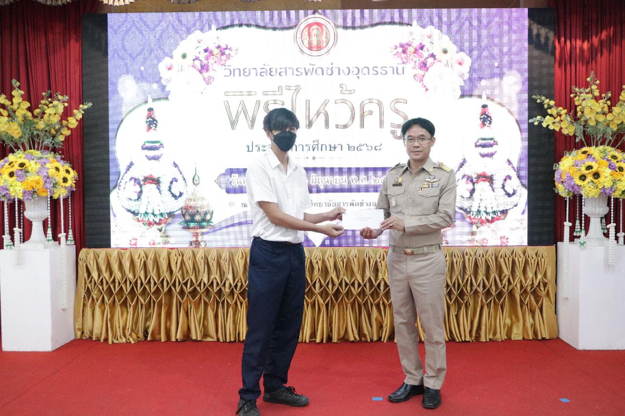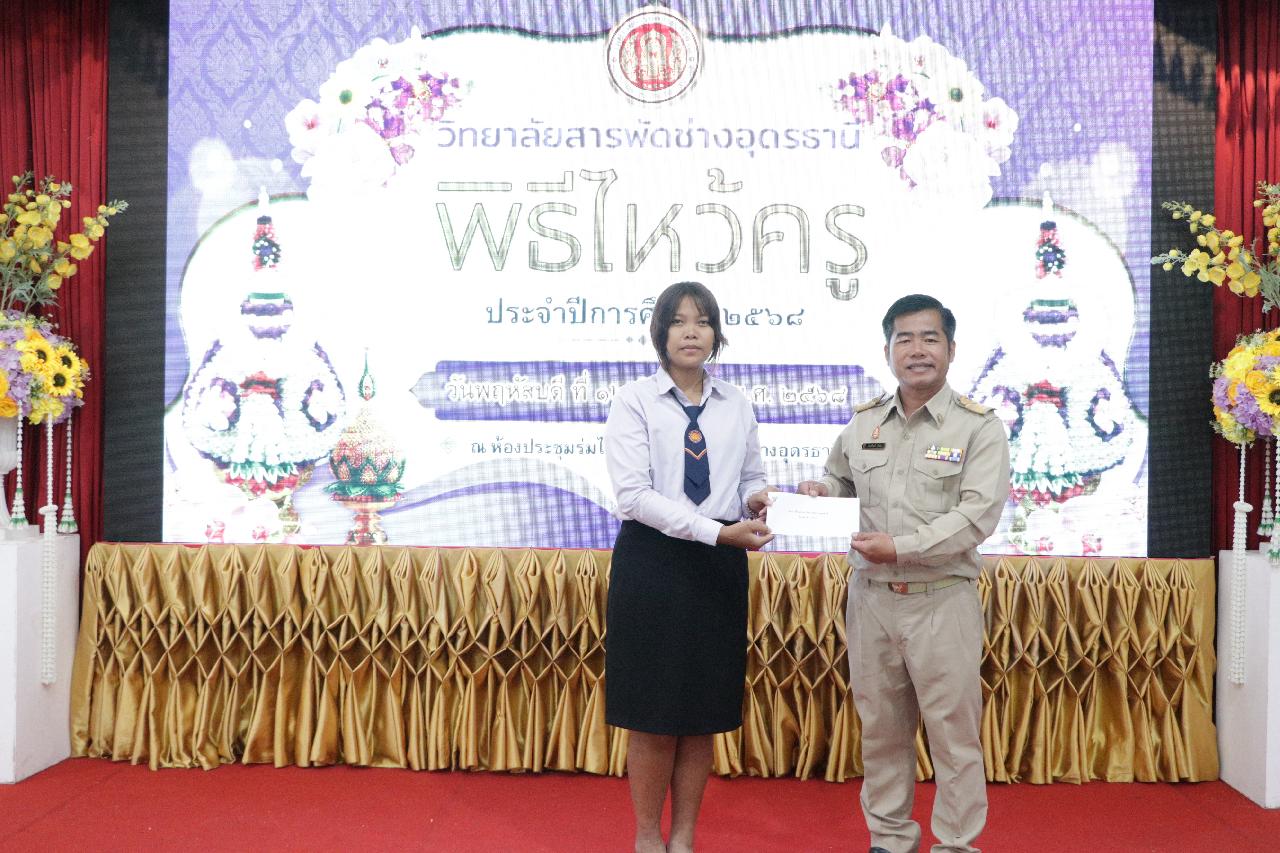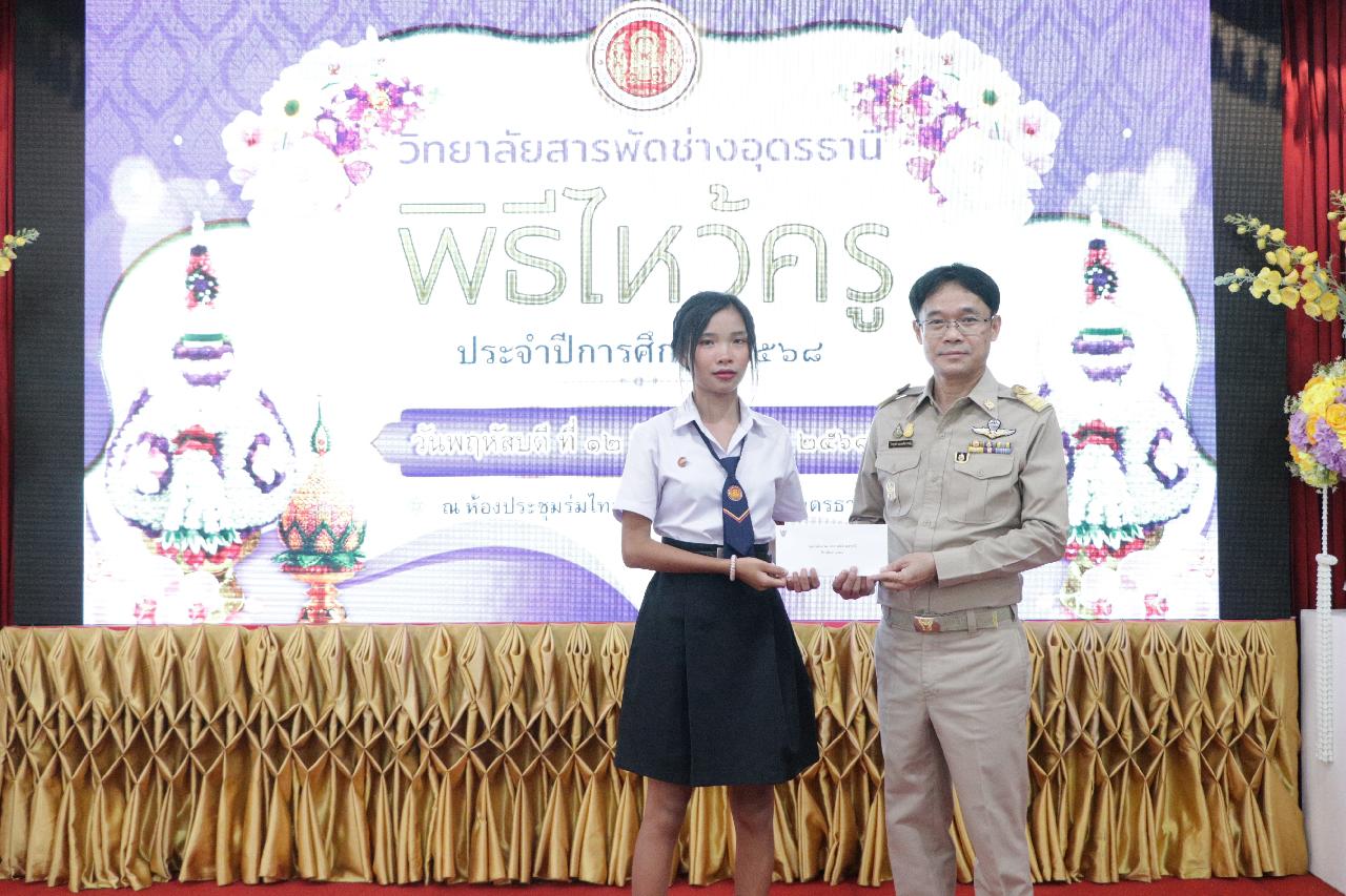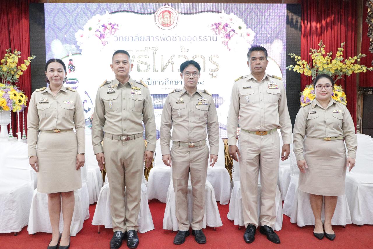 วันพฤหัสบดี ที่ 12 มิถุนายน 2568 นายไพฑูรย์ ธนพงศ์ภากรณ์ ผู้อำนวยการวิทยาลัยสารพัดช่างอุดรธานี พร้อมด้วย คณะผู้บริหาร, คณะครู, บุคลากรทางการศึกษา และนักเรียน นักศึกษา เข้าร่วมพิธีไหว้ครู ประจำปีการศึกษา 2568 ณ วิทยาลัยสารพัดช่างอุดรธานี