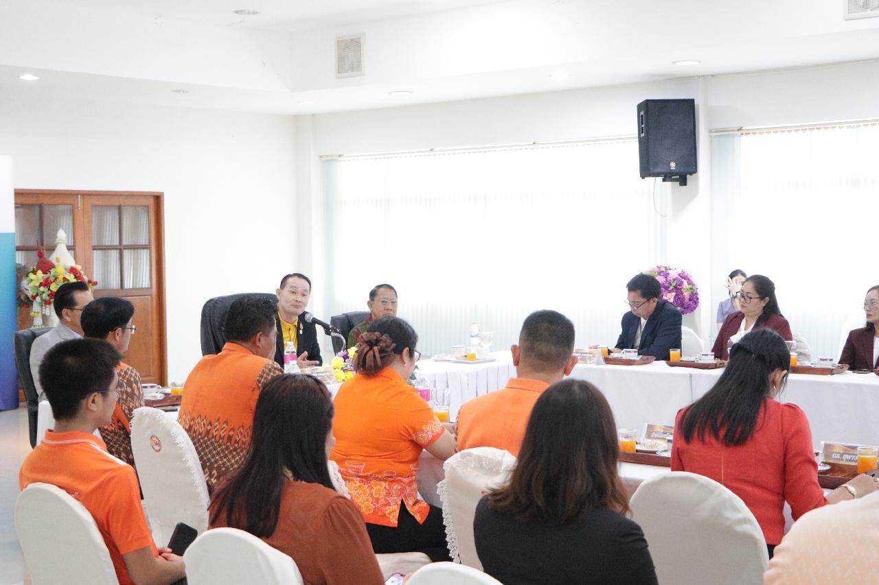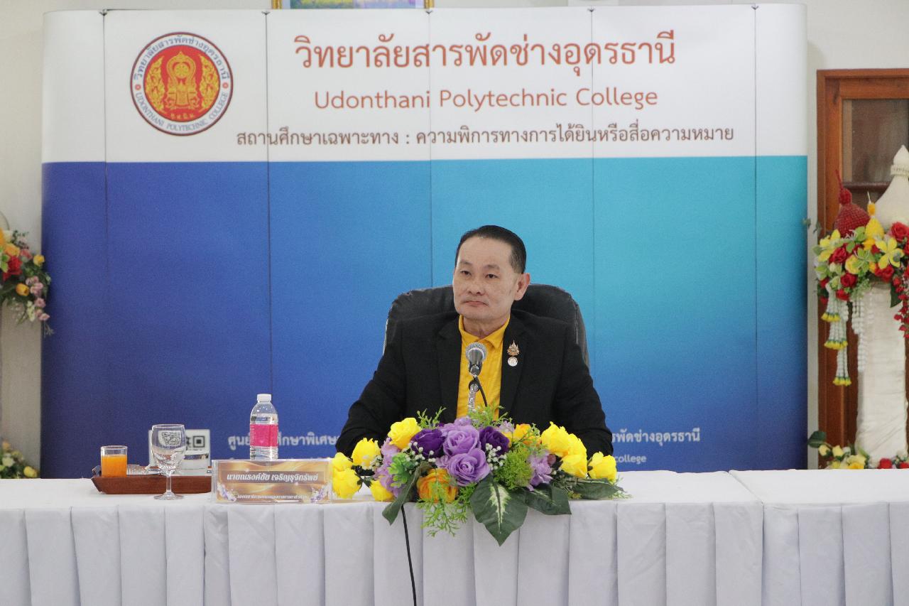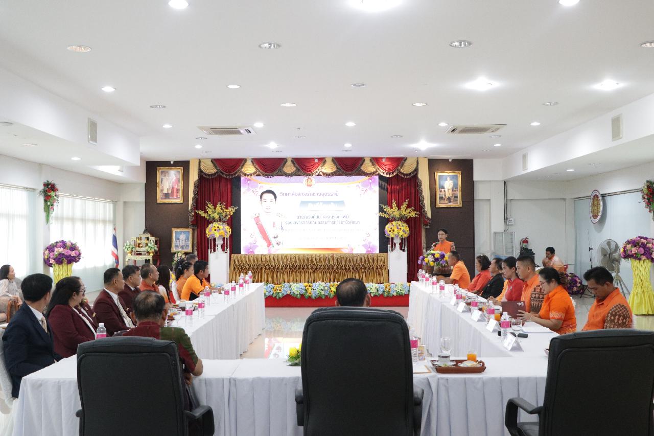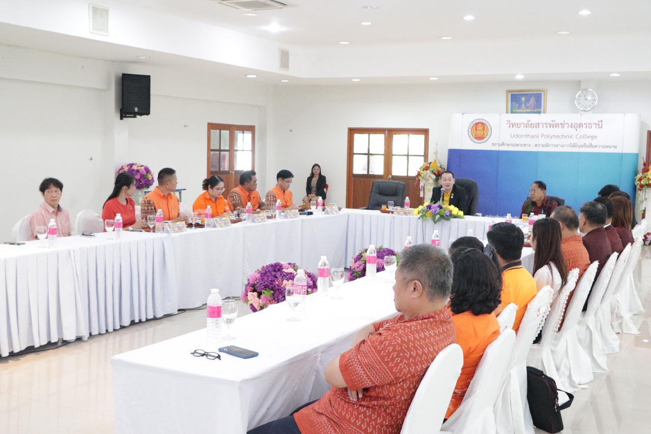 วันพฤหัสบดี ที่ 19 มิถุนายน 2568 นายไพฑูรย์ ธนพงศ์ภากรณ์ ผู้อำนวยการวิทยาลัยสารพัดช่างอุดรธานี พร้อมด้วย คณะผู้บริหาร คณะครู และบุคลากรทางการศึกษา ร่วมต้อนรับ นายณรงค์ชัย เจริญรุจิทรัพย์ รองเลขาธิการคณะกรรมการการอาชีวศึกษา ลงพื้นที่ตรวจราชการและติดตามการดำเนินงานตามนโยบาย ณ ห้องประชุมร่มไทร ชั้น 3 อาคารอำนวยการ วิทยาลัยสารพัดช่างอุดรธานี