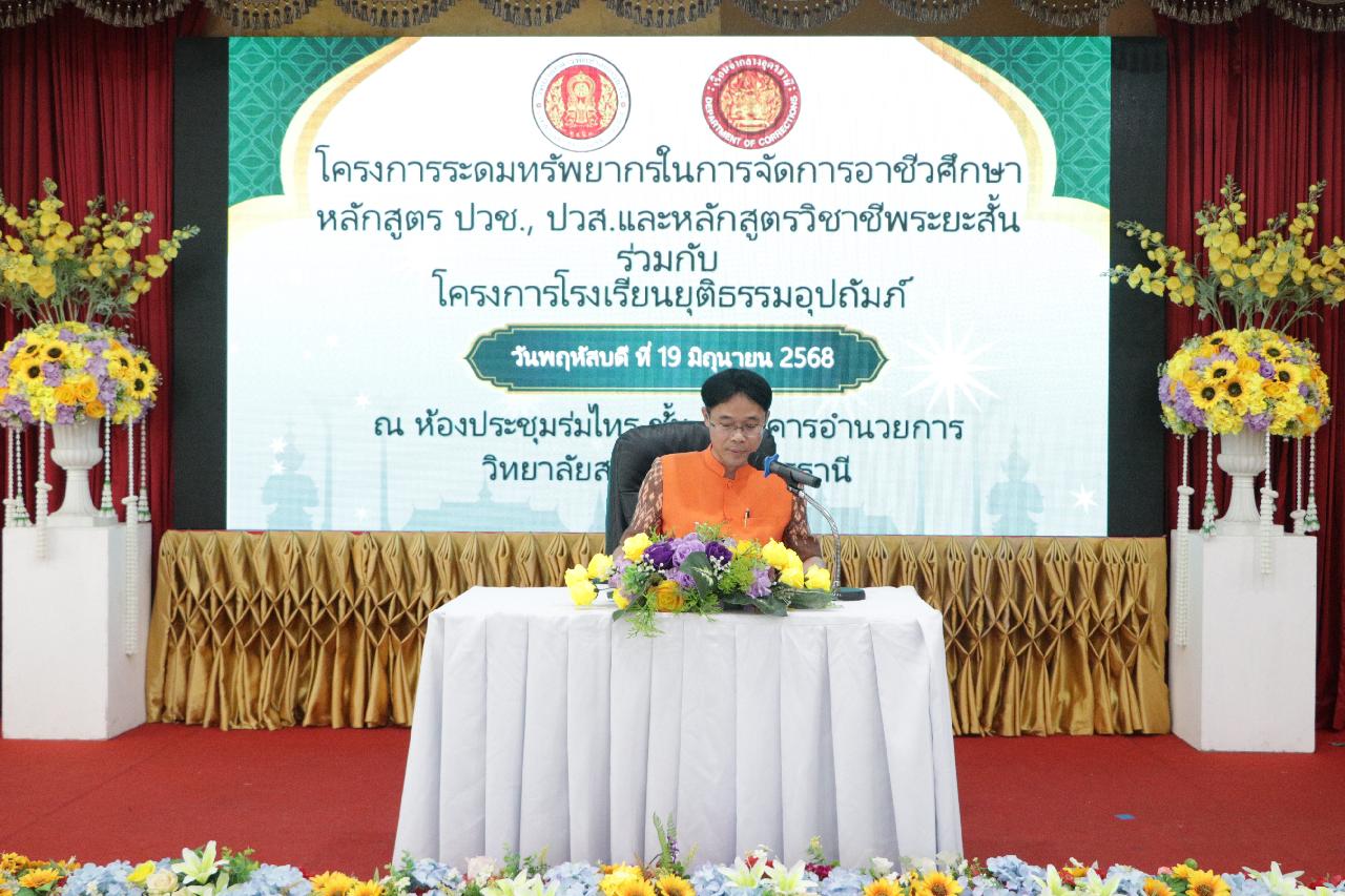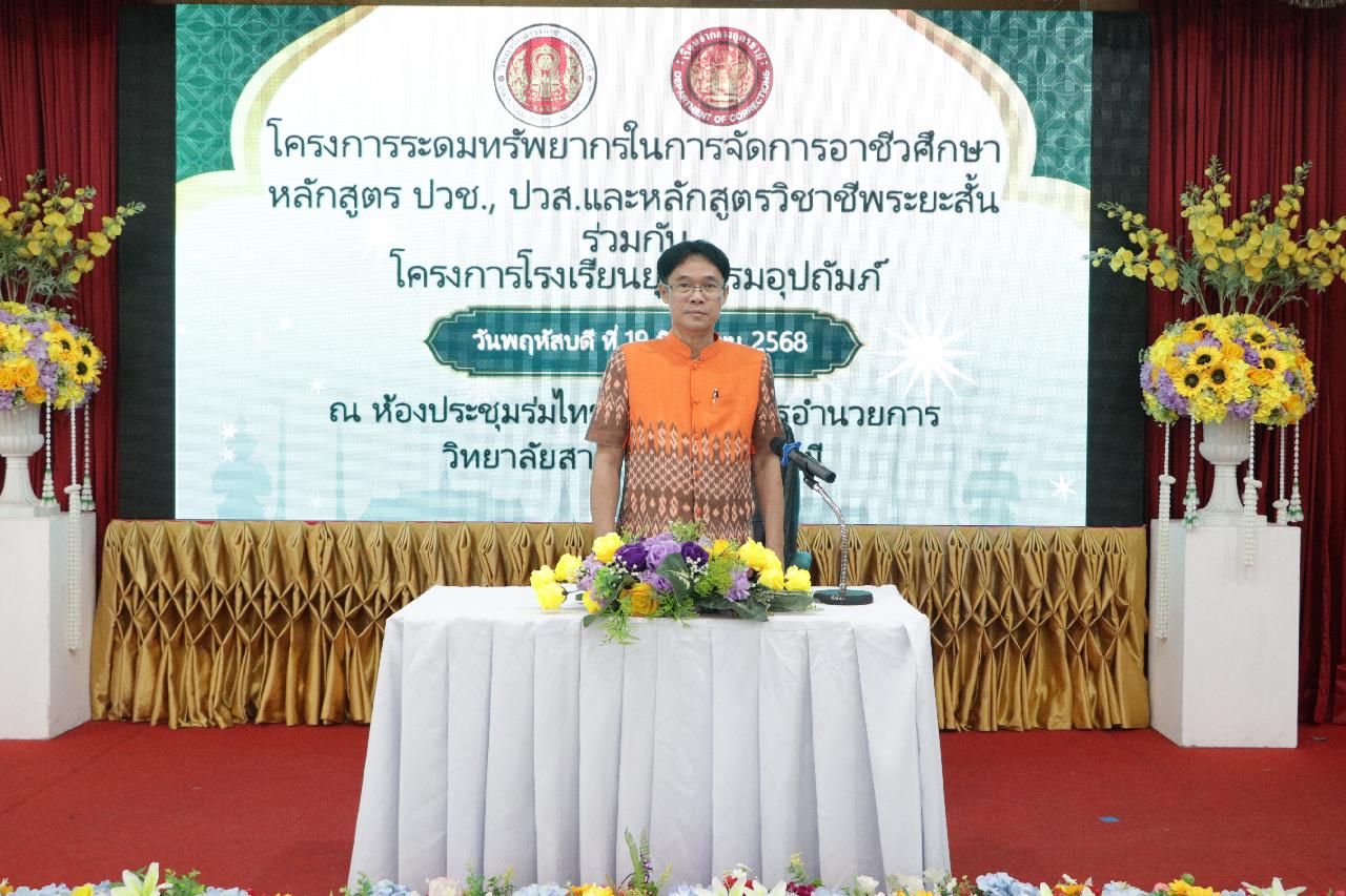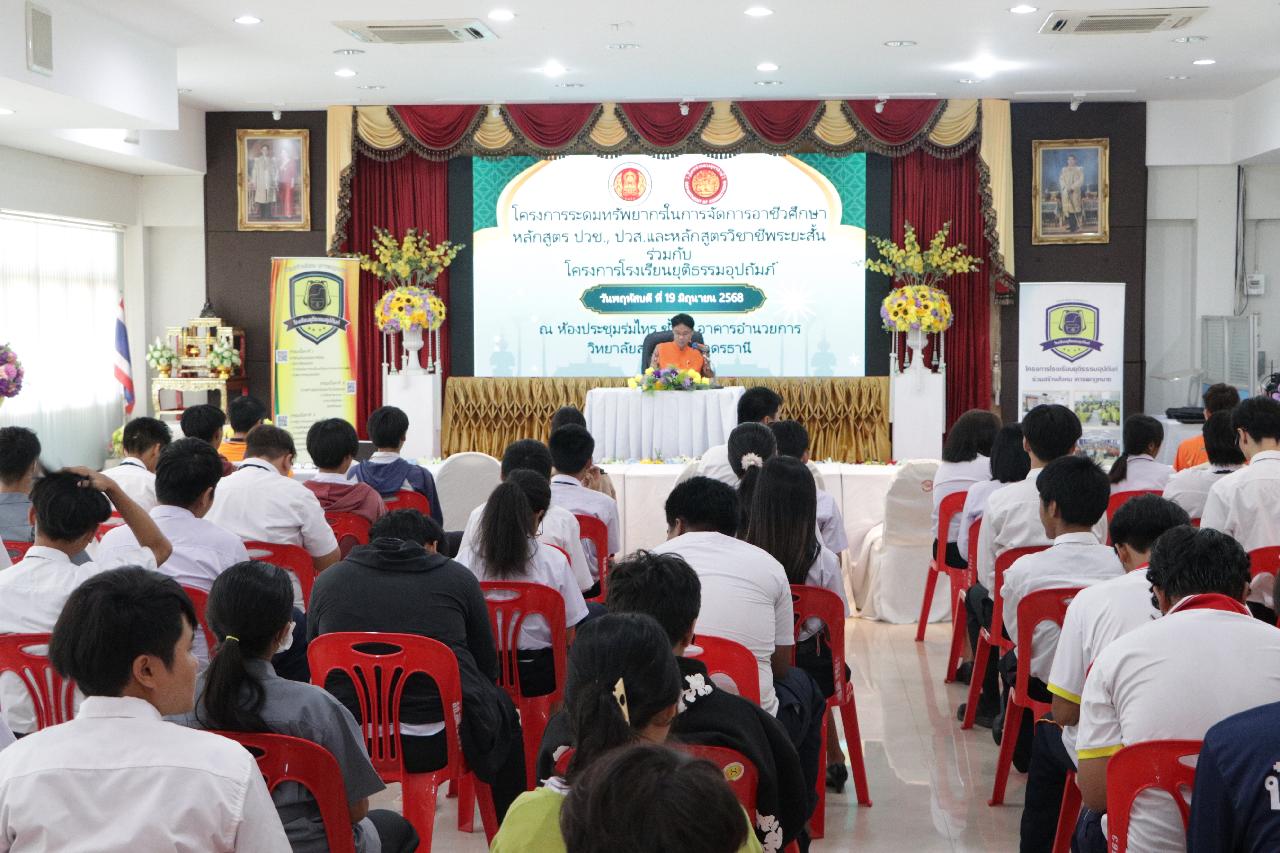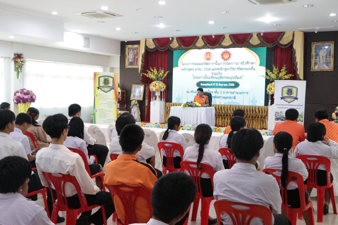 วันพฤหัสบดี ที่ 19 มิถุนายน 2568 นายไพฑูรย์ ธนพงศ์ภากรณ์ ผู้อำนวยการวิทยาลัยสารพัดช่างอุดรธานี พร้อมด้วย คณะผู้บริหาร, คณะครู, บุคลากรทางการศึกษา และนักเรียนนักศึกษา เข้าร่วมโครงการระดมทรัพยากรในการจัดการอาชีวศึกษาหลักสูตร ปวช., ปวส. และหลักสูตรวิชาชีพระยะสั้น ร่วมกับโรงเรียนยุติธรรมอุปถัมภ์ ณ ห้องประชุมร่มไทร ชั้น 3 อาคารอำนวยการ วิทยาลัยสารพัดช่างอุดรธานี