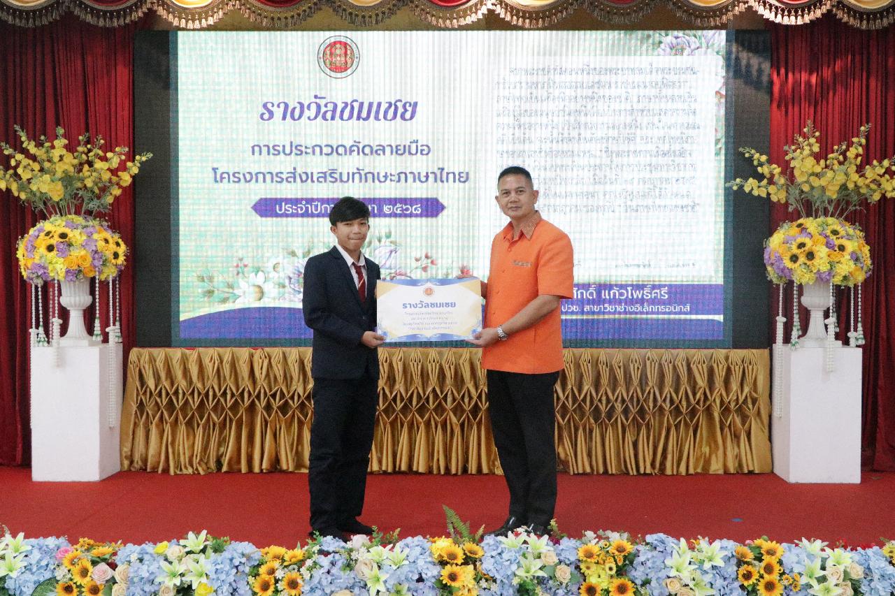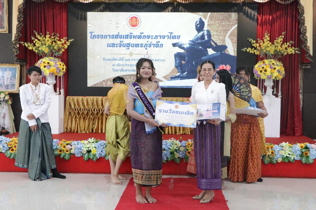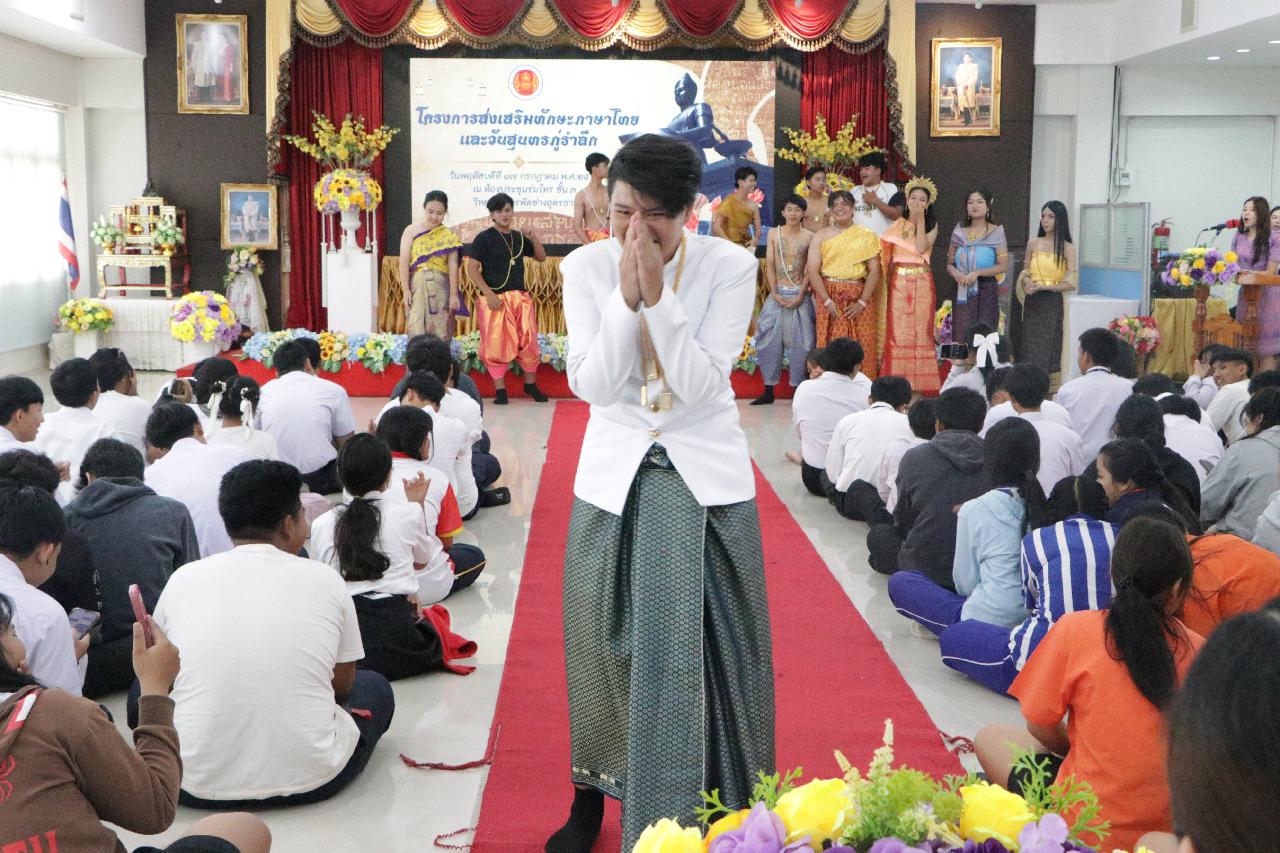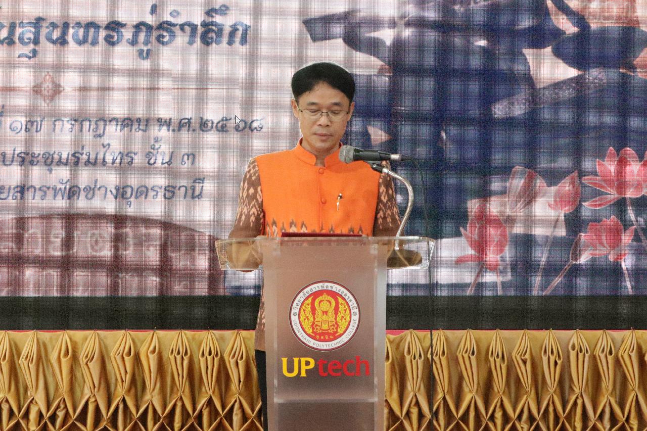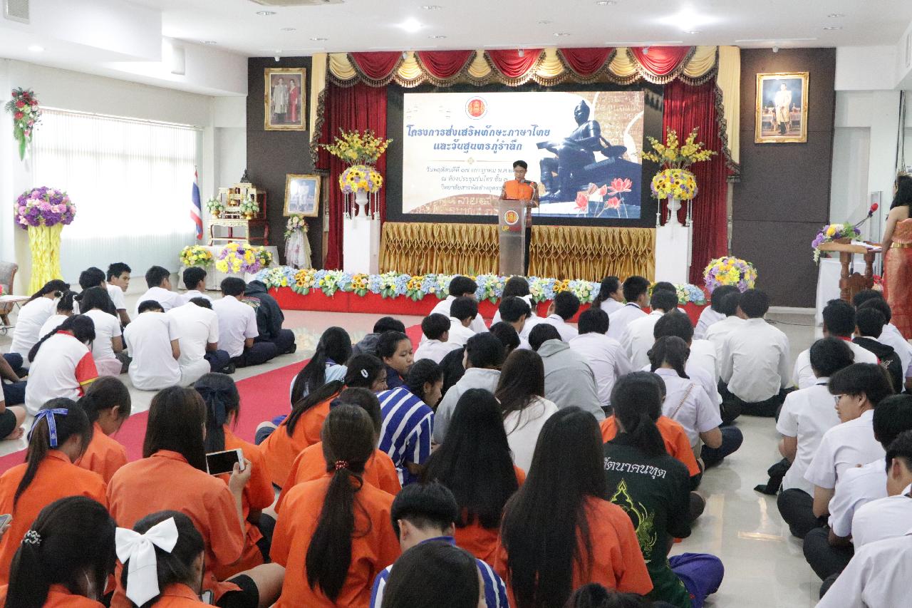 วันพฤหัสบดี ที่ 17 กรกฎาคม 2568 นายไพฑูรย์ ธนพงศ์ภากรณ์ ผู้อำนวยการวิทยาลัยสารพัดช่างอุดรธานี พร้อมด้วย ว่าที่ร้อยโทอภิเดช สารคำ รองผู้อำนวยการฝ่ายบริหารทรัพยากร, ดร.ยุพาวดี ศิริปีริด์ รองผู้อำนวยการฝ่ายวิชาการ, คณะครู, บุคลากรทางการศึกษา และนักเรียนนักศึกษา ร่วมกิจกรรมโครงการส่งเสริมทักษะภาษาไทยและวันสุนทรภู่ ณ ห้องประชุมร่มไทร ชั้น 3 อาคารอำนวยการ วิทยาลัยสารพัดช่างอุดรธานี