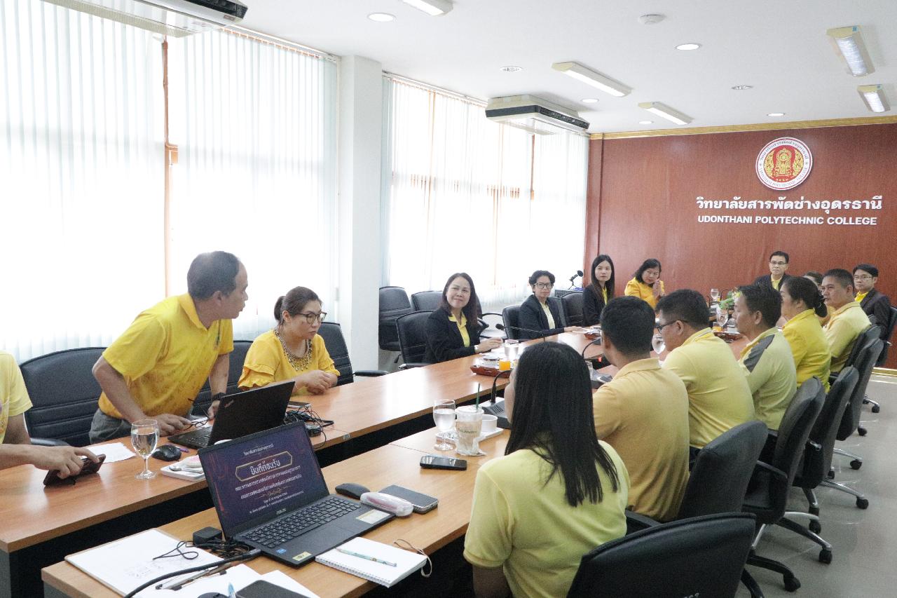 วันพุธ ที่ 30 กรกฎาคม 2568 นายไพฑูรย์ ธนพงศ์ภากรณ์ ผู้อำนวยการวิทยาลัยสารพัดช่างอุดรธานี พร้อมด้วย ว่าที่ร้อยโทอภิเดช สารคำ รองผู้อำนวยการฝ่ายบริหารทรัพยากร, นางยุพาวดี ศิริปีริด์ รองผู้อำนวยการฝ่ายวิชาการ, คณะครู และบุคลากรทางการศึกษา ร่วมต้อนรับคณะกรรมการตรวจสอบโครงการตามแผนบูรณาการ งานตรวจสอบภายในร่วมกับกลุ่มตรวจสอบภายใน ณ ห้องประชุมไผ่ทอง ชั้น 2 อาคารอำนวยการ วิทยาลัยสารพัดช่างอุดรธานี