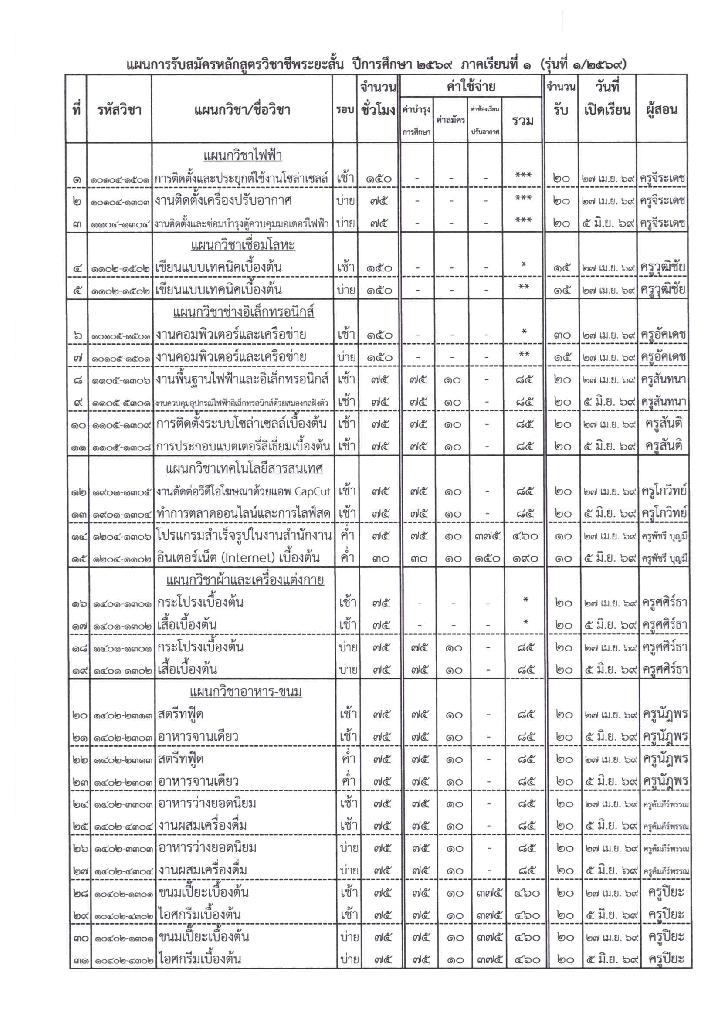 รับสมัครนักศึกษาหลักสูตรวิชาชีพระยะสั้น รุ่นที่ 1/2569 (วันที่ 24 เดือน กุมภาพันธ์ พ.ศ. 2569)