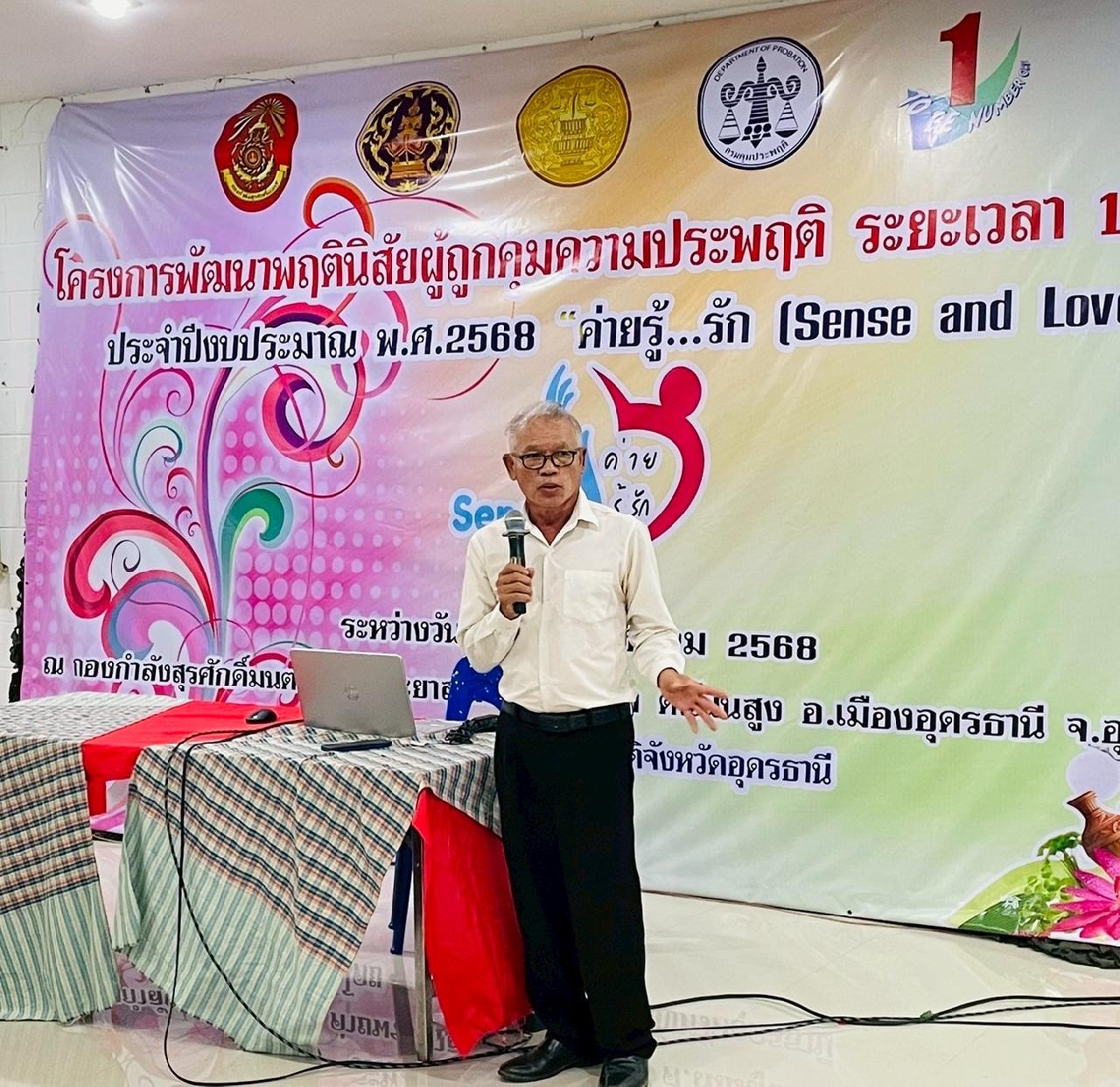 วันอังคารที่ 12 สิงหาคม 2568 นายไพฑูรย์ ธนพงศ์ภากรณ์ ผู้อำนวยการวิทยาลัยสารพัดช่างอุดรธานี มอบหมายให้ ดร.ยุพาวดี ศิริปีริด์ รองผู้อำนวยการฝ่ายวิชาการ และนายพงษ์ศักดิ์ ชาญณรงค์ ครูประจำแผนกวิชาเสริมสวย-ตัดผม ร่วมบรรยาย เรื่อง “เสริมสร้างทัศนคติและสำรวจอาชีพ“ แก่ผู้ถูกคุมความประพฤติ ภายใต้โครงการพัฒนาพฤตินิสัยผู้ถูกคุมความประพฤติ ระยะเวลา 15 วัน ประจำปีงบประมาณ พ.ศ.2568 “ค่าย รู้…รัก (Sense and love)” ณ กองกำลังสุรศักดิ์มนตรี ค่ายพระยาสุนทรธรรมธาดา ต.โนนสูง อ.เมืองอุดรธานี จ.อุดรธานี