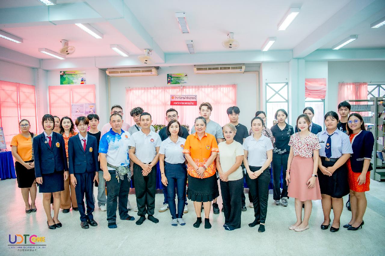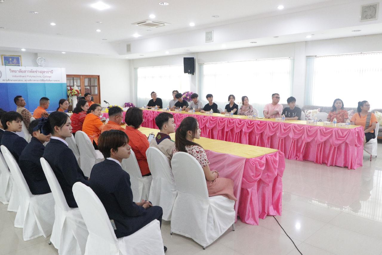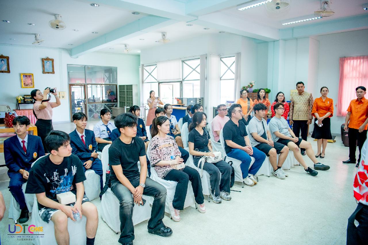 วันพฤหัสบดี ที่ 14 สิงหาคม 2568 นายไพฑูรย์ ธนพงศ์ภากรณ์ ผู้อำนวยการวิทยาลัยสารพัดช่างอุดรธานี พร้อมด้วย คณะผู้บริหาร คณะครู และบุคลากรทางการศึกษา เข้าร่วมต้อนรับคณะศึกษาดูงานจากวิทยาลัยอาชีวศึกษาทรัพยากรน้ำ และไฟฟ้าพลังน้ำกุ้ยโจว ณ ห้องประชุมร่มไทร ชั้น 3 อาคารอำนวยการ และห้องสมุด วิทยาลัยสารพัดช่างอุดร