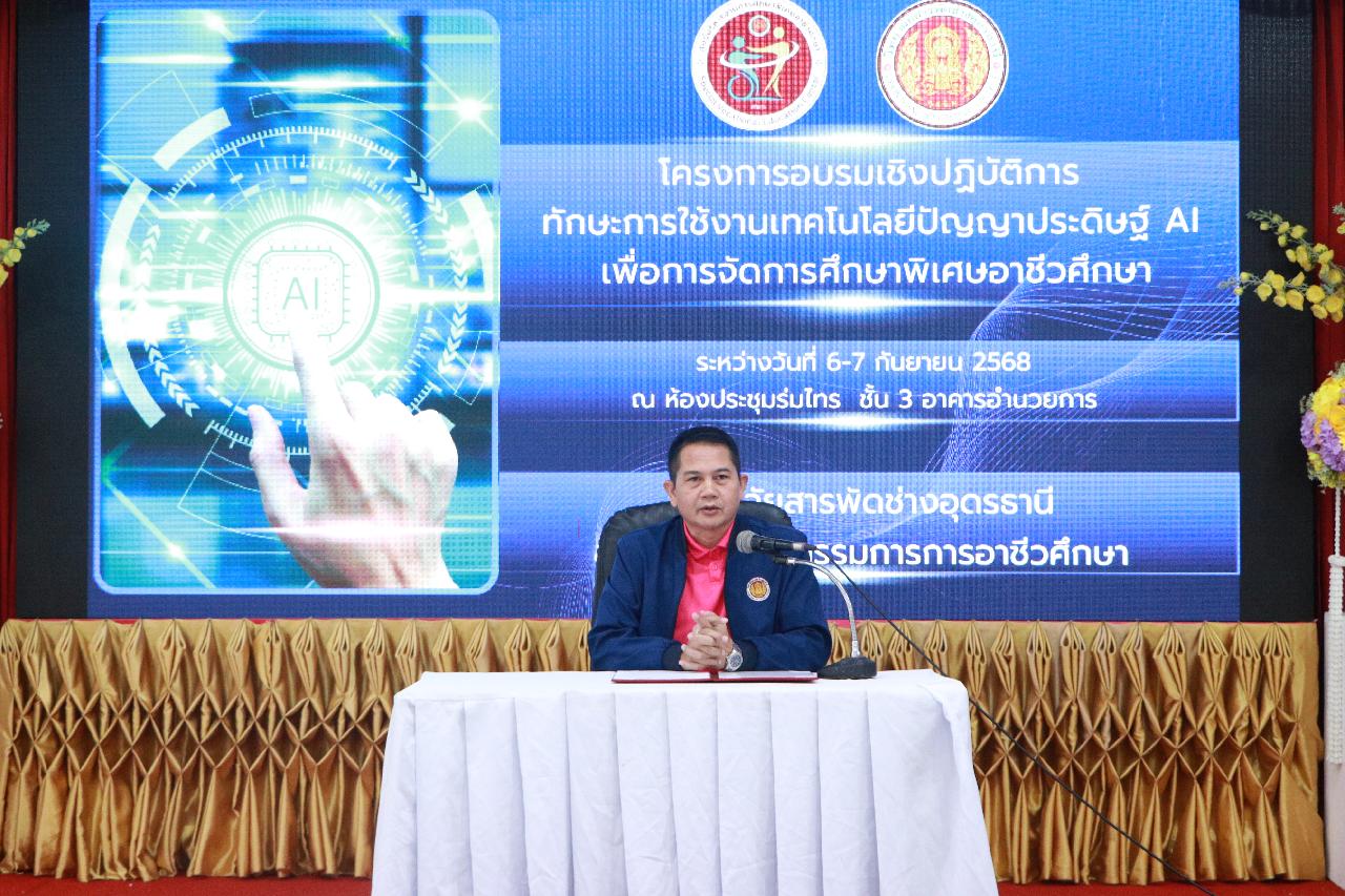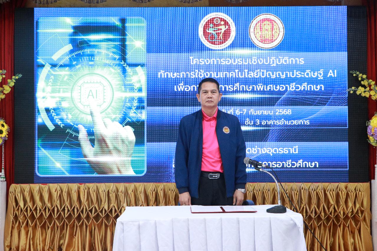 วันเสาร์ ที่ 6 และวันอาทิตย์ ที่ 7 กันยายน 2568 นายไพฑูรย์ ธนพงศ์ภากรณ์ ผู้อำนวยการวิทยาลัยสารพัดช่างอุดรธานี มอบหมายให้ นายสุรสิทธิ์ ดรละคร รองผู้อำนวยการฝ่ายพัฒนากิจการนักเรียน นักศึกษา, ว่าที่ร้อยโทอภิเดช สารคำ รองผู้อำนวยการฝ่ายบริหารทรัพยากร, ดร.ยุวดี ธรรมสุนา รองผู้อำนวยการฝ่ายแผนงานและความร่วมมือ, คณะครู และบุคลากรทางการศึกษา เข้าร่วมโครงการอบรมเชิงปฏิบัติการทักษะการใช้งานเทคโนโลยีปัญญาประดิษฐ์ AI เพื่อการจัดการศึกษาพิเศษอาชีวศึกษา ณ ห้องประชุมร่มไทร ชั้น 3 อาคารอำนวยการ วิทยาลัยสารพัดช่างอุดรธานี