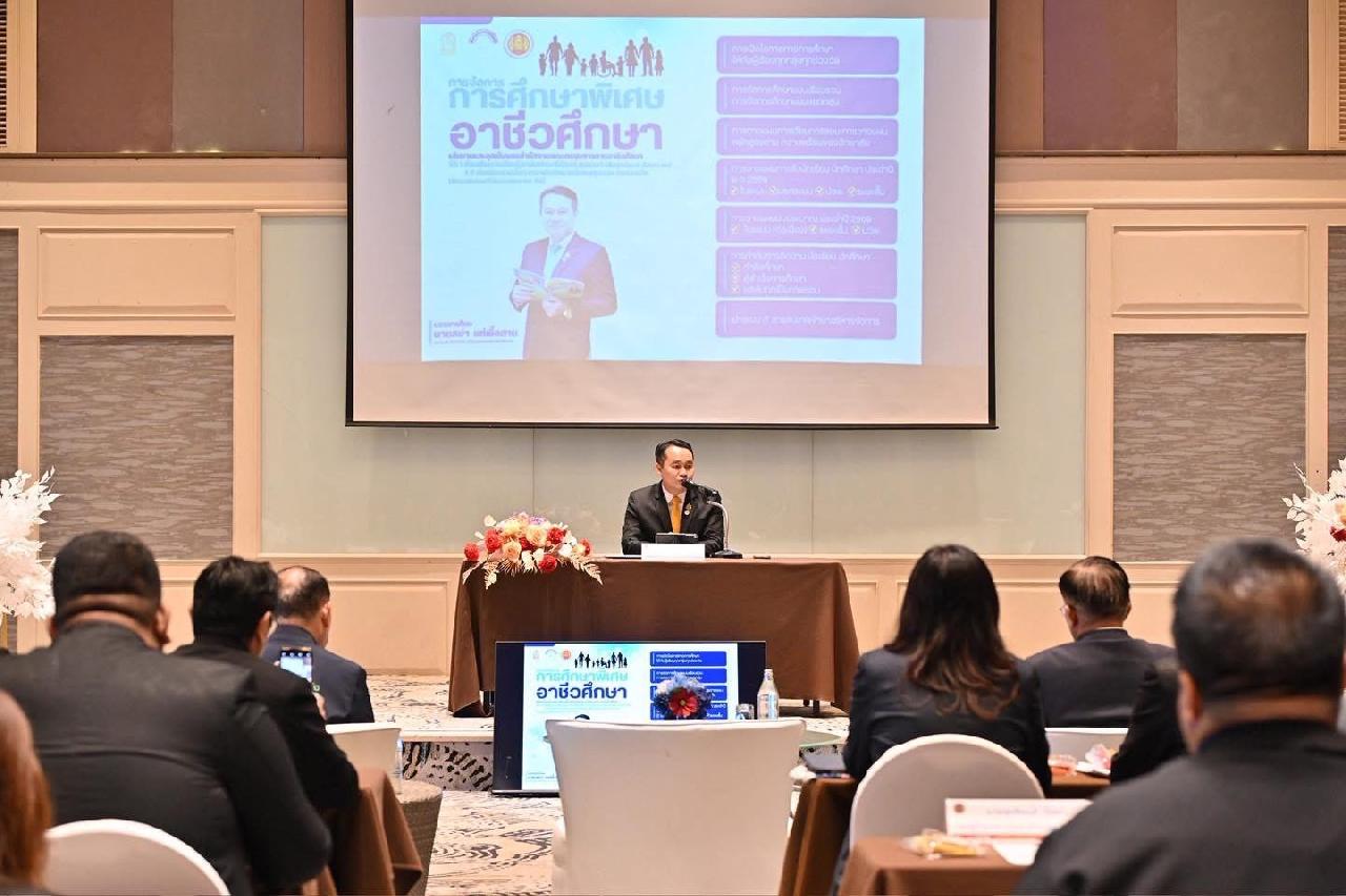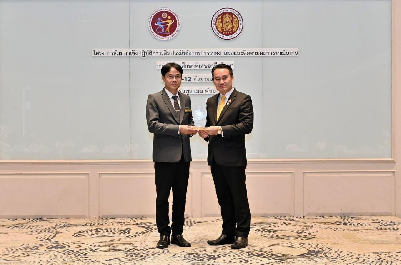 วันที่ 10-12 กันยายน 2568 นายไพฑูรย์ ธนพงศ์ภากรณ์ ผู้อำนวยการวิทยาลัสารพัดช่างอุดรธานี้ พร้อมด้วย ดร.ยุพวดี ศิริปีริดิ์ รองผู้อำนวยการฝ่ายวิชาการและนายพิศาล วงค์งาม ครูพิเศษสอน เข้าร่วมโครงการสัมมนาเชิงปฏิบัติการเพิ่มประสิทธิภาพการรายงานผลและติดตามการดำเนินงานการจัดการศึกษาพิเศษอาชีวศึกษา โดยมีนายสง่า แต่เชื้อสาย รองเลขาธิการคณะกรรมการการอาชีวศึกษา เป็นประธานเปิดงานโครงการดังกล่าว พร้อมบรรยายพิเศษ มอบโล่เกียรติยศและเกียรติบัตรแก่สถานศึกษา ผู้บริหาร และบุคคลผู้มีส่วนช่วยในการสนับสนุนการขับเคลื่อนการจัดการศึกษาพิเศษอาชีวศึกษาอย่างต่อเนื่อง ณ โรงแรมพลูแมน พัทยา จี จังหวัดชลบุรี