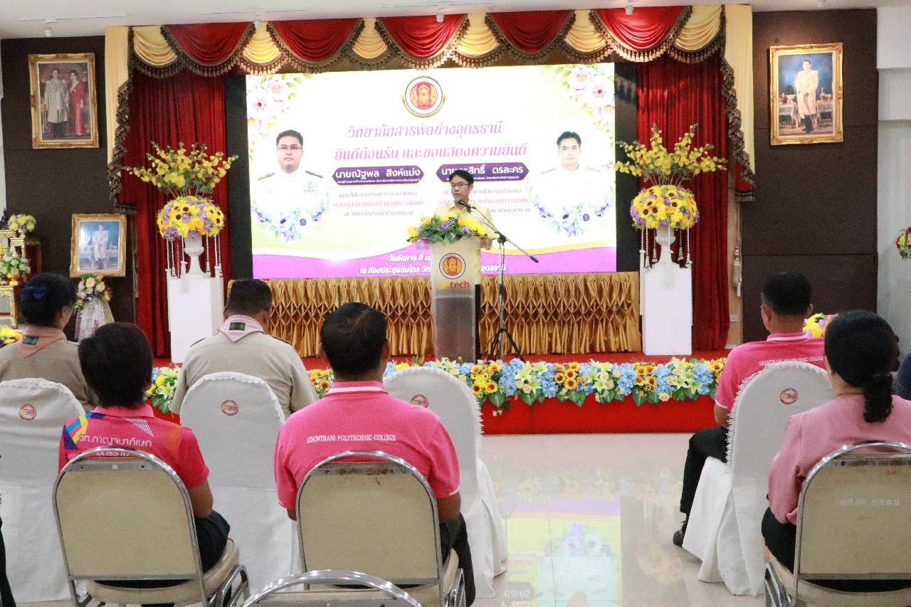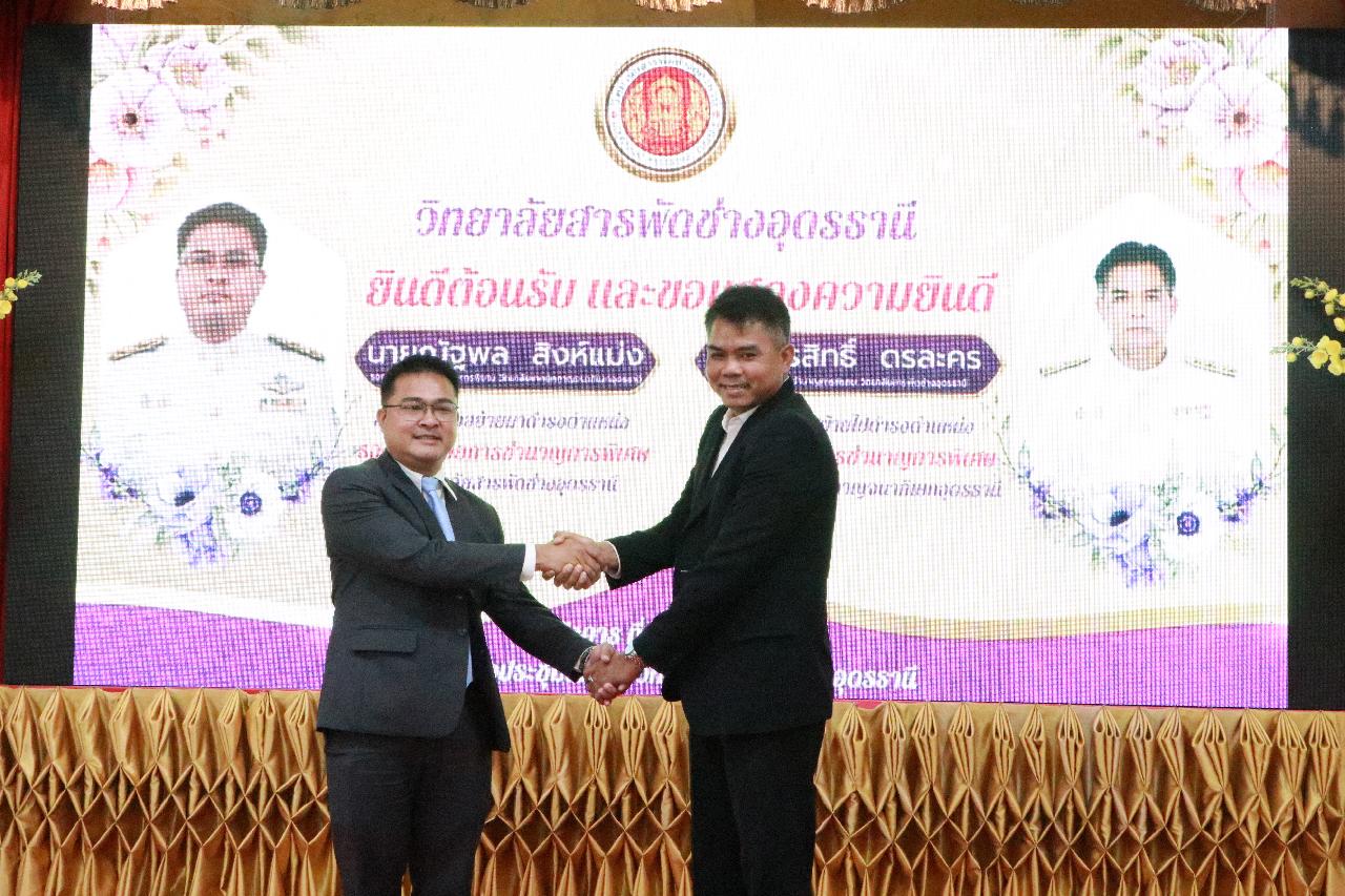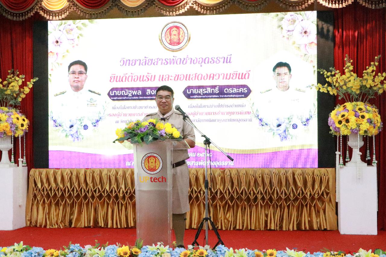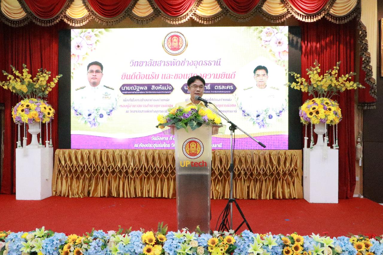 วันอังคาร ที่ 7 ตุลาคม 2568 นายไพฑูรย์ ธนพงศ์ภากรณ์ ผู้อำนวยการวิทยาลัยสารพัดช่างอุดรธานี พร้อมด้วยคณะผู้บริหาร, ครู, บุคลากร วิทยาลัยสารพัดช่างอุดรธานี และคณะผู้บริหาร, ครู วิทยาลัยเทคนิคกาญจนาภิเษกอุดรธานี ร่วมต้อนรับ และแสดงความยินดี กับ นายณัฐพล สิงห์แม่ง รองผู้อำนวยการชำนาญการพิเศษ วิทยาลัยเทคนิคกาญจนาภิเษกอุดรธานี เนื่องในโอกาสย้ายมาดำรงตำแหน่งรองผู้อำนวยการชำนาญการพิเศษ ณ วิทยาลัยสารพัดช่างอุดรธานี และ นายสุรสิทธิ์ ดรละคร รองผู้อำนวยการชำนาญการพิเศษ วิทยาลัยสารพัดช่างอุดรธานี เนื่องในโอกาสย้ายไปดำรงตำแหน่ง รองผู้อำนวยการชำนาญการพิเศษ ณ วิทยาลัยเทคนิคกาญจนาภิเษกอุดรธานี