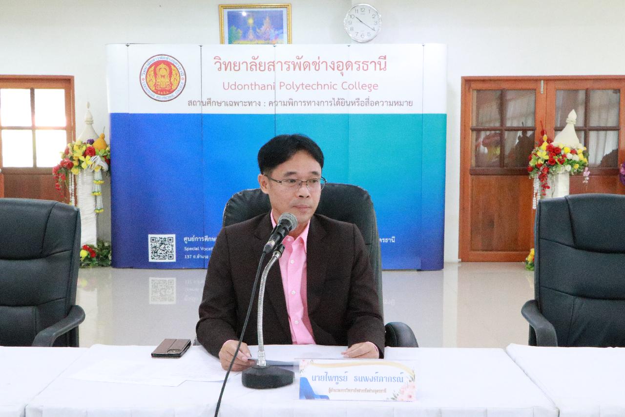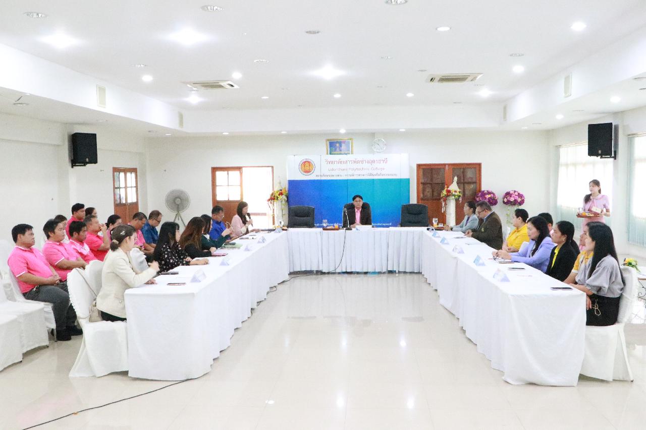 วันอังคารที่ 14 ตุลาคม 2568 นายไพฑูรย์ ธนพงศ์ภากรณ์ ผู้อำนวยการวิทยาลัยสารพัดช่างอุดรธานี พร้อมด้วยคณะผู้บริหาร, ครู, บุคลากรทางการศึกษา เข้าร่วมการประชุมการจัดการเรียนการสอนหลักสูตรเชื่อมโยงการศึกษาขั้นพื้นฐานกับอาชีวศึกษาและอุดมศึกษา ประจำภาคเรียนที่ 2 ปีการศึกษา 2568 ณ ห้องประชุมร่มไทร อาคารอำนวยการ วิทยาลัยสารพัดช่างอุดรธานี