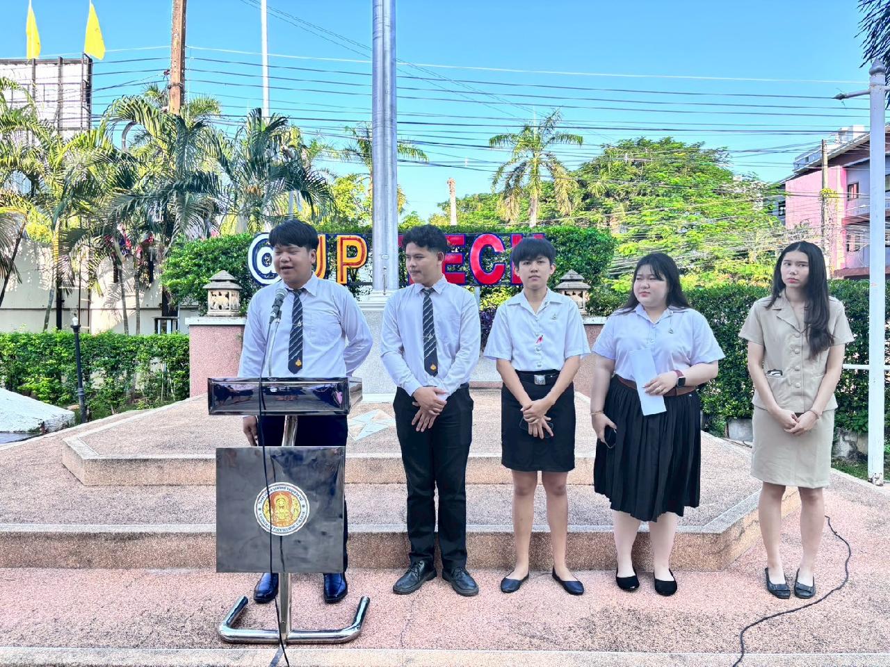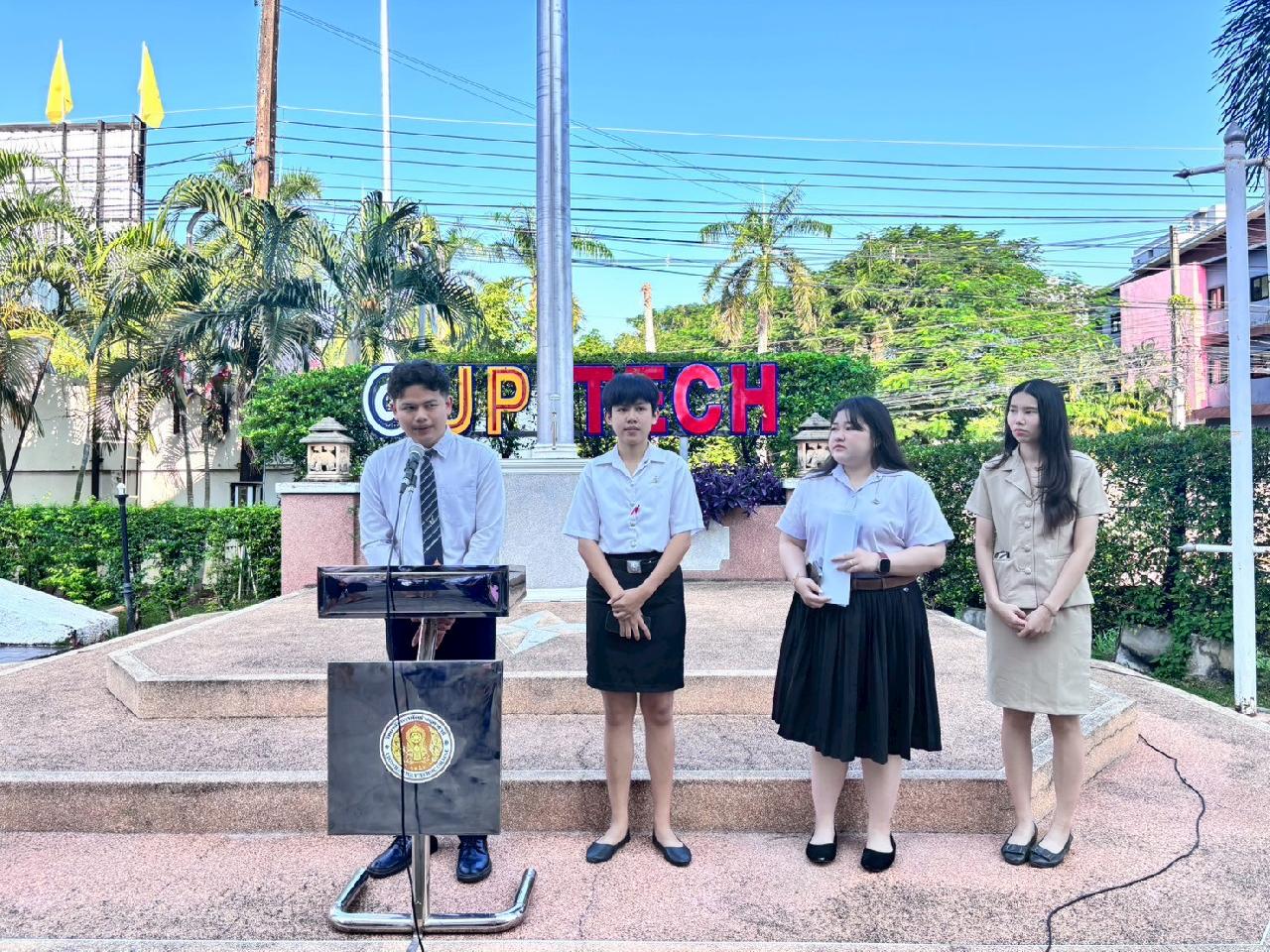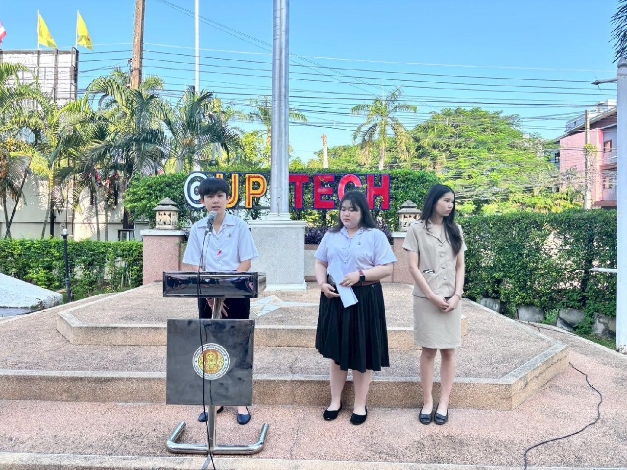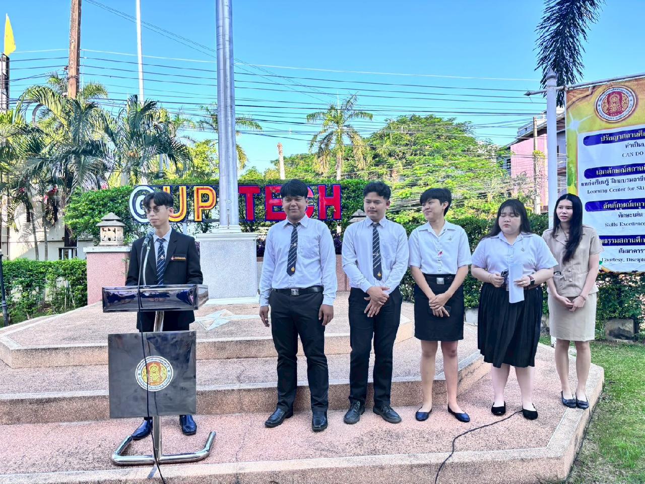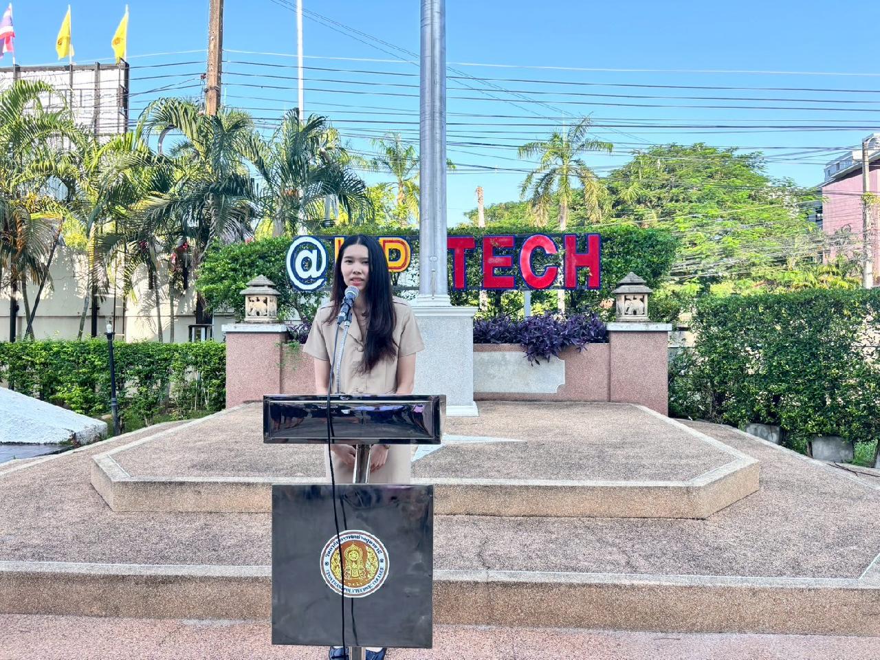 วันที่ 20 ตุลาคม 2568 นายไพฑูรย์ ธนพงศ์ภากรณ์ ผู้อำนวยการวิทยาลัยสารพัดช่างอุดรธานี กล่าวให้โอวาทหน้าเสาธงประจำภาคเรียนที่ 2/2568 แก่นักเรียน นักศึกษา และครูธนพัฒน์ อินทะสร้อย หัวหน้างานกิจกรรมฯแนะนำรองผู้อำนวยการ นายณัฐพล สิงห์แม่ง, นักศึกษาฝึกประสบการณ์วิชาชีพครู และเจ้าหน้าที่ ที่มาปฏิบัติงาน ณ วิทยาลัยสารพัดช่างอุดรธานี