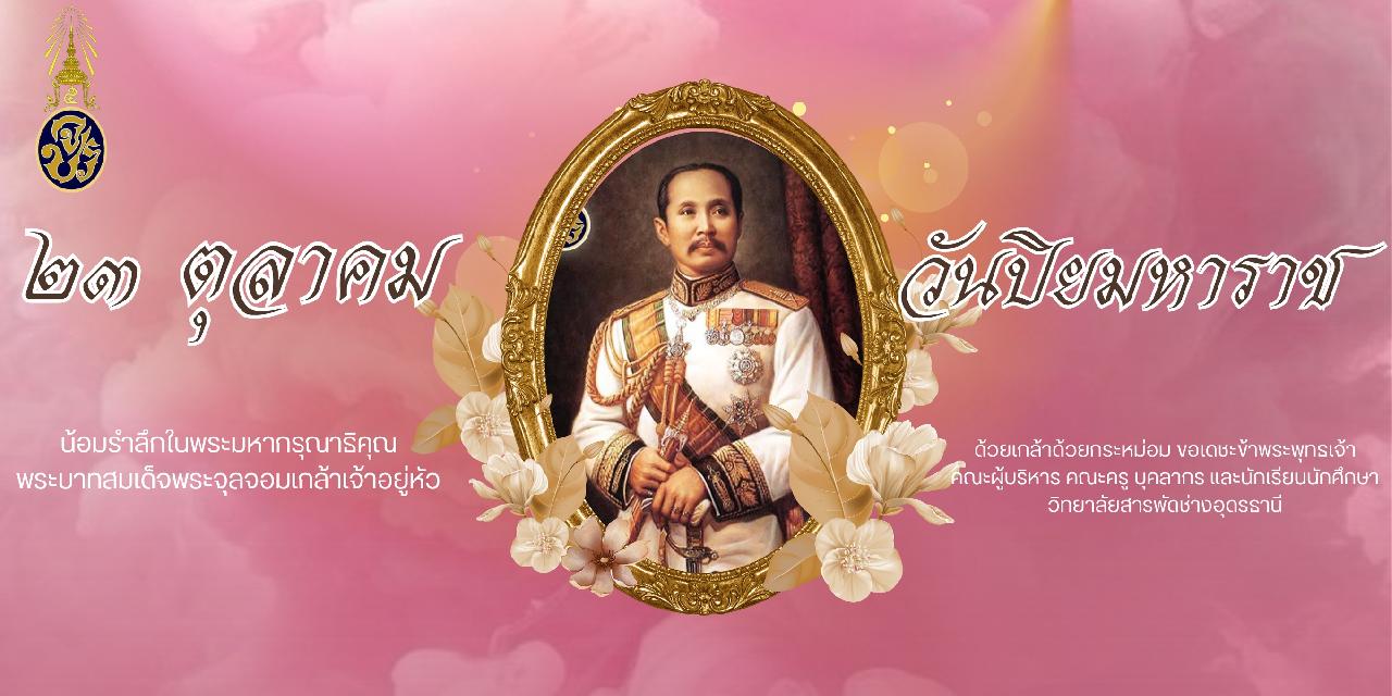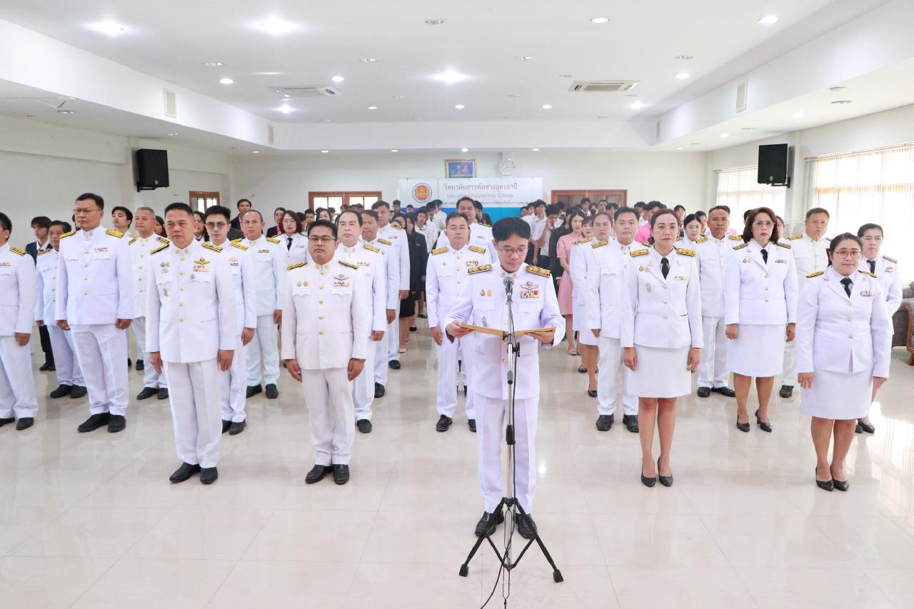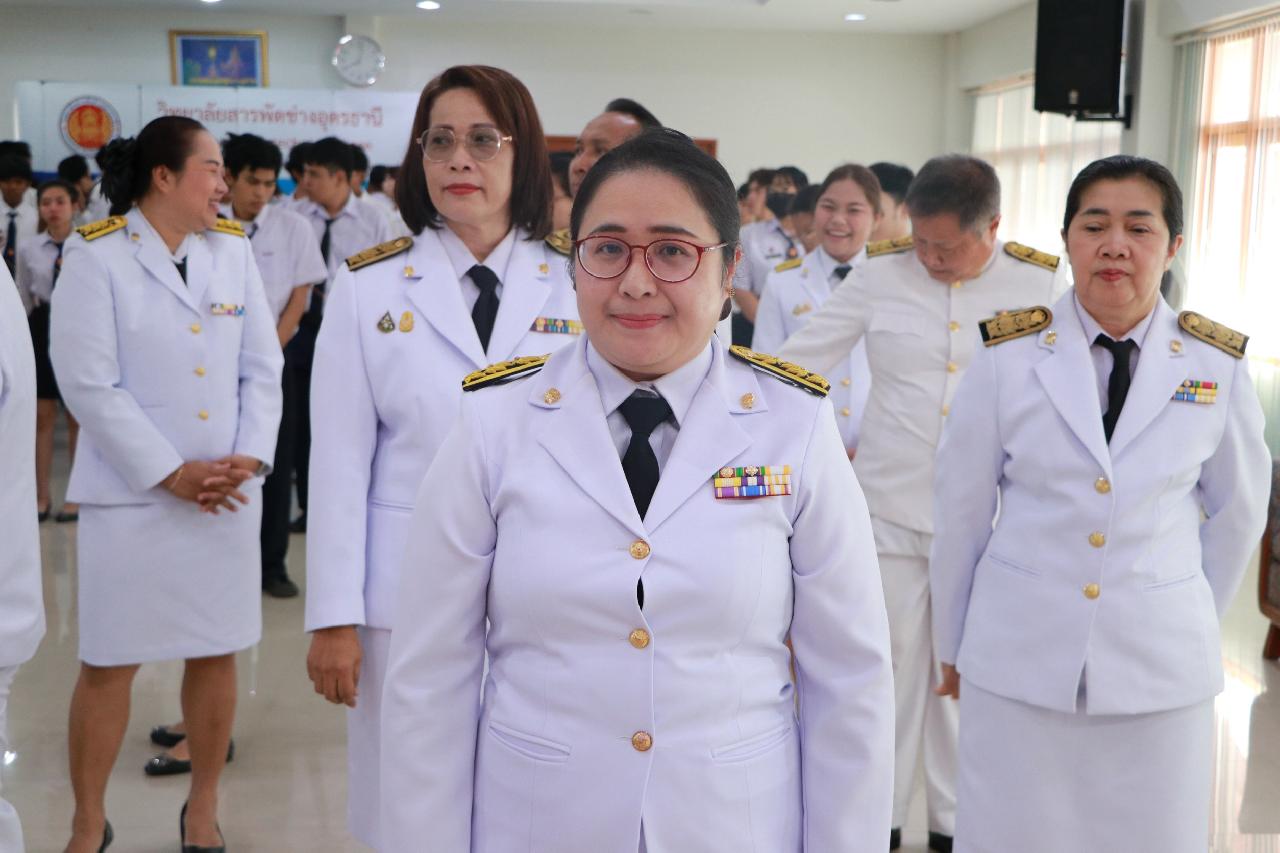 วันพุธ ที่ 22 ตุลาคม 2568 นายไพฑูรย์ ธนพงศ์ภากรณ์ ผู้อำนวยการวิทยาลัยสารพัดช่างอุดรธานี พร้อมด้วยคณะผู้บริหาร ครู บุคลากรและนักเรียน นักศึกษา เข้าร่วมพิธีวันปิยมหาราช ณ ห้องประชุมร่มไทร ชั้น 3 อาคารอำนวยการ วิทยาลัยสารพัดช่างอุดรธานี