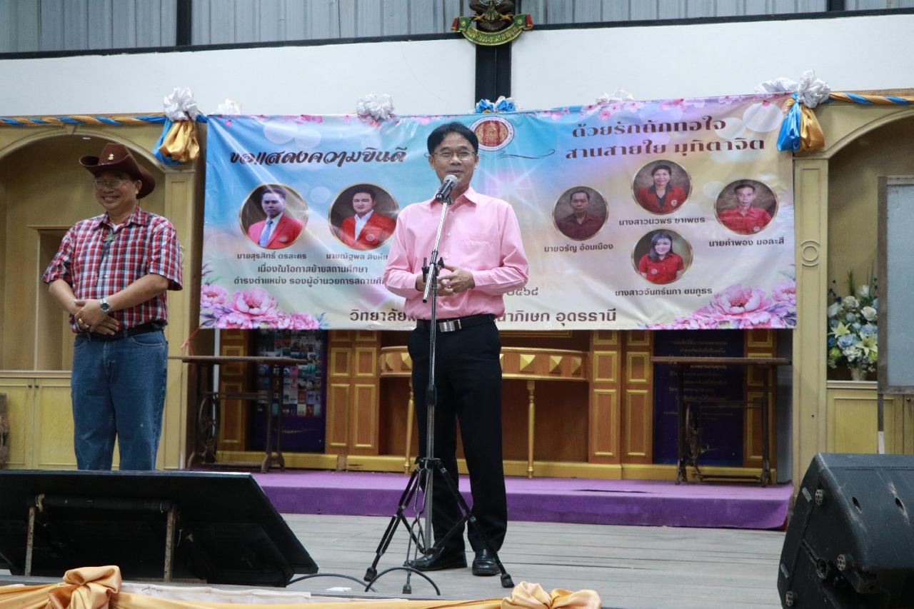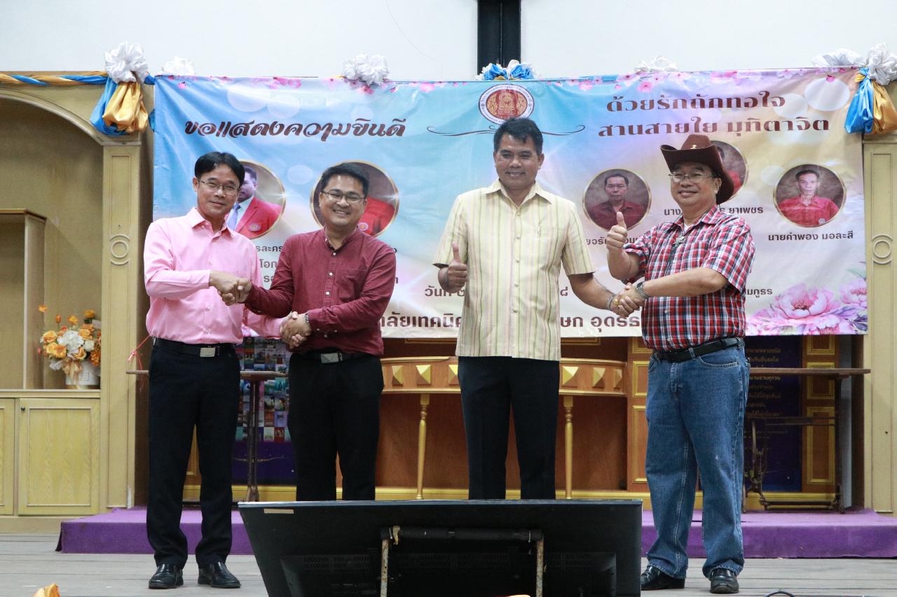 วันพุธ ที่ 22 ตุลาคม 2568 นายไพฑูรย์ ธนพงศ์ภากรณ์ ผู้อำนวยการวิทยาลัยสารพัดช่างอุดรธานี พร้อมด้วยผู้คณะบริหาร และบุคลากร ร่วมแสดงความยินดีกับนายณัฐพล สิงห์แม่ง รองผู้อำนวยการชำนาญการพิเศษ วิทยาลัยเทคนิคกาญจนาภิเษก อุดรธานี เนื่องในโอกาสย้ายมาดำรงตำแหน่งรองผู้อำนวยการชำนาญการพิเศษ ณ วิทยาลัยสารพัดช่าง อุดรธานี และนายสุรสิทธิ์ ดรละคร รองผู้อำนวยการชำนาญการพิเศษ วิทยาลัยสารพัดช่างอุดรธานี เนื่องในโอกาสย้ายไปดำรงตำแหน่งรองผู้อำนวยการชำนาญการพิเศษ และร่วมแสดงมุทิตาจิตแก่ข้าราชการที่ลาออก ณ วิทยาลัยเทคนิคกาญจนาภิเษก อุดรธานี