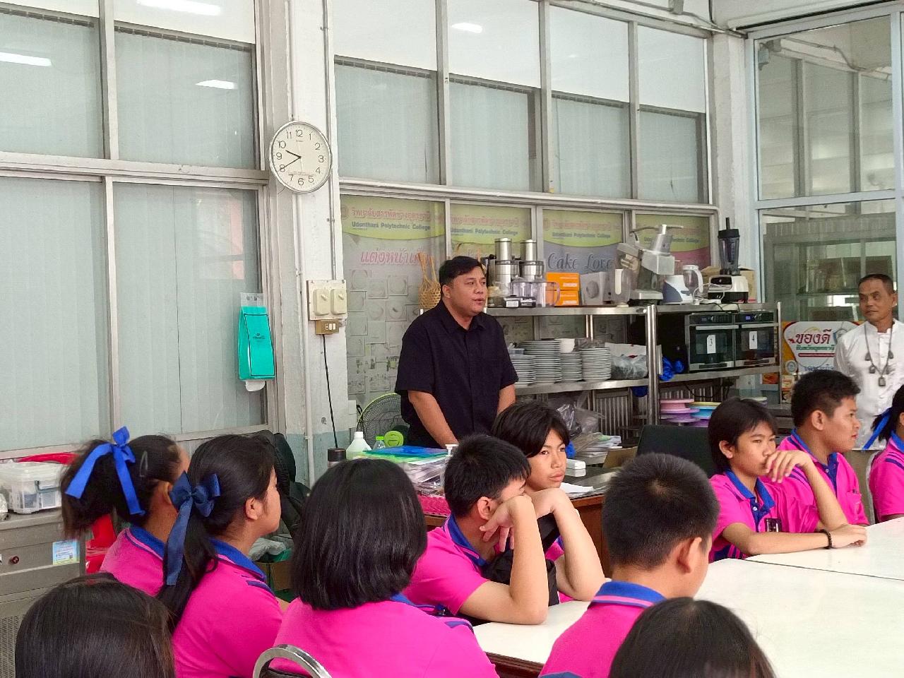 วันอังคารที่ 4 พฤศจิกายน 2568 นายเชิดศักดิ์ คำสุนันท์ หัวหน้างานพัฒนาหลักสูตรการเรียนการสอน พร้อมด้วย นายปิยะ เอมโอษฐ์ ครูแผนกวิชาอาหาร-ขนม และนักศึกษาฝึกประสบการณ์วิชาชีพครู ร่วมต้อนรับคณะครูและนักเรียน โรงเรียนอุดรพิทยานุกูล 2 หลักสูตรต่อเนื่องเชื่อมโยงการศึกษาขั้นพื้นฐานกับอาชีวศึกษาและอุดมศึกษา ณ วิทยาลัยสารพัดช่างอุดรธานี
