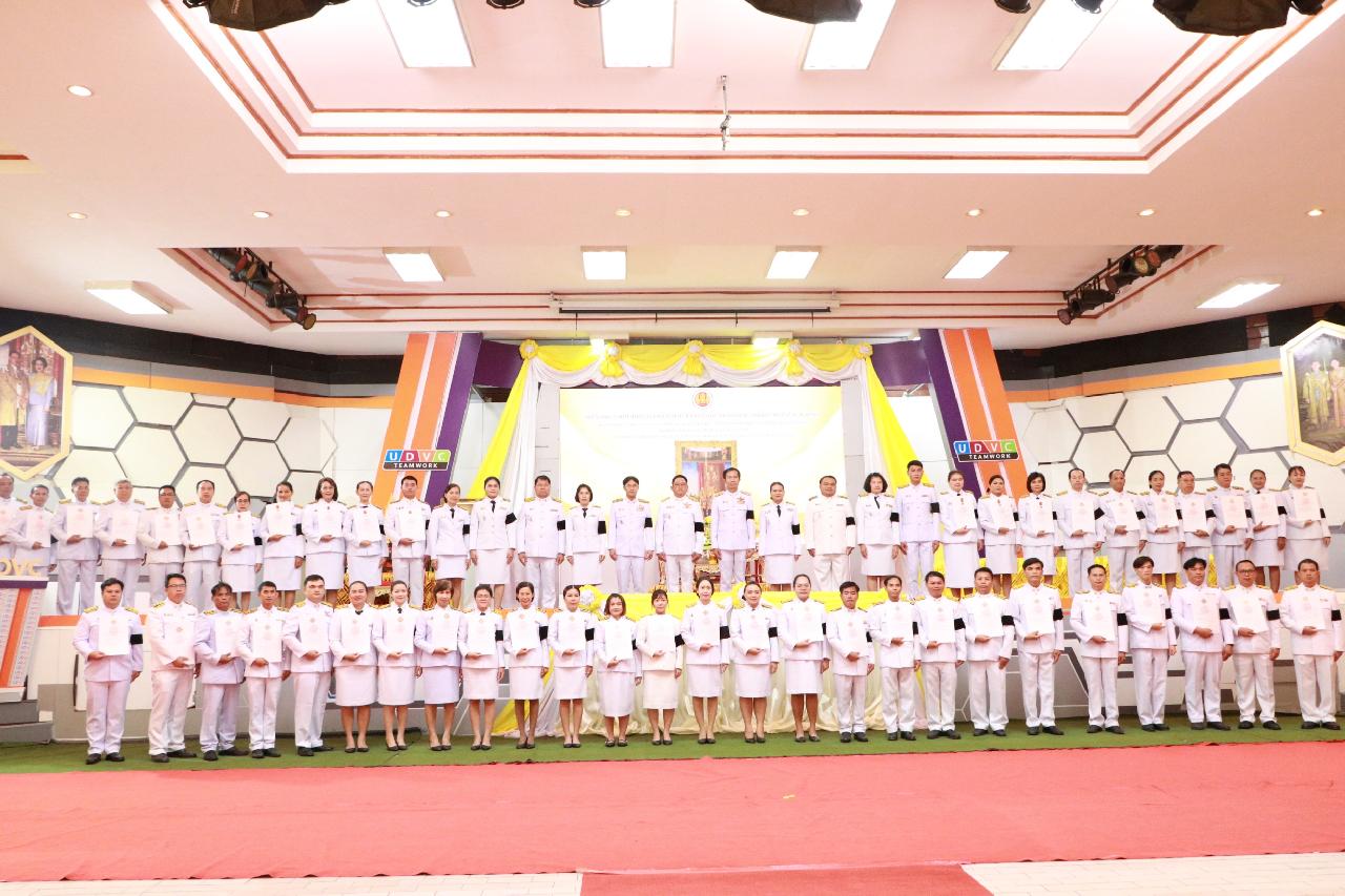 วันจันทร์ที่ 3 พฤศจิกายน 2568 นายไพฑูรย์ ธนพงศ์ภากรณ์ ผู้อำนวยการวิทยาลัยสารพัดช่างอุดรธานี พร้อมด้วยนายณัฐพล สิงห์แม่ง รองผู้อำนวยการฝ่ายแผนงานและความร่วมมือ และคณะครู เข้าร่วมพิธีการจ่ายประกาศนียบัตรกำกับเครื่องราชอิสริยาภรณ์ชั้นต่ำกว่าสายสะพายและเหรียญจักรพรรดิมาลา ประจำปี2565 ณ หอประชุมเฉลิมพระเกียรติ ชั้น2 วิทยาลัยอาชีวศึกษาอุดรธานี