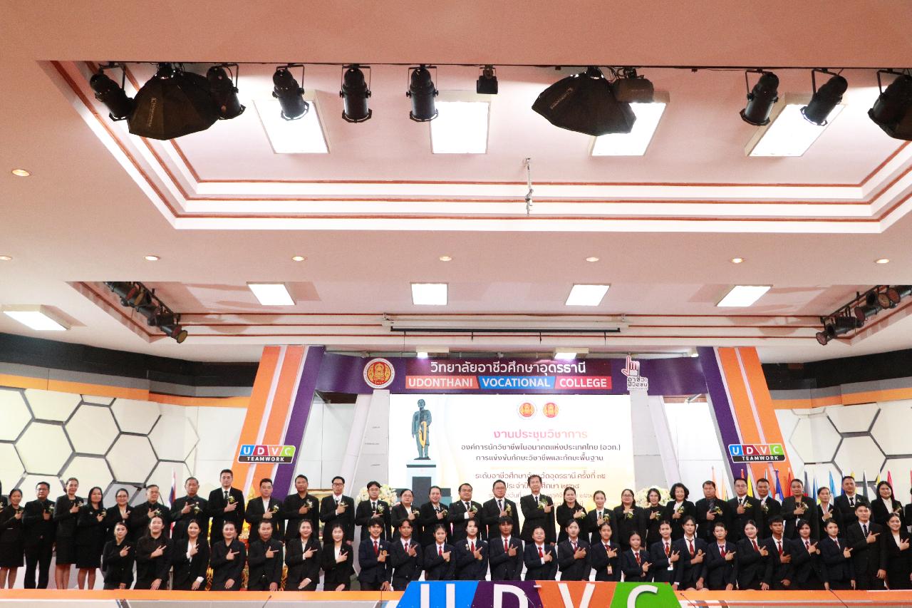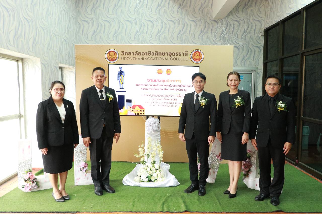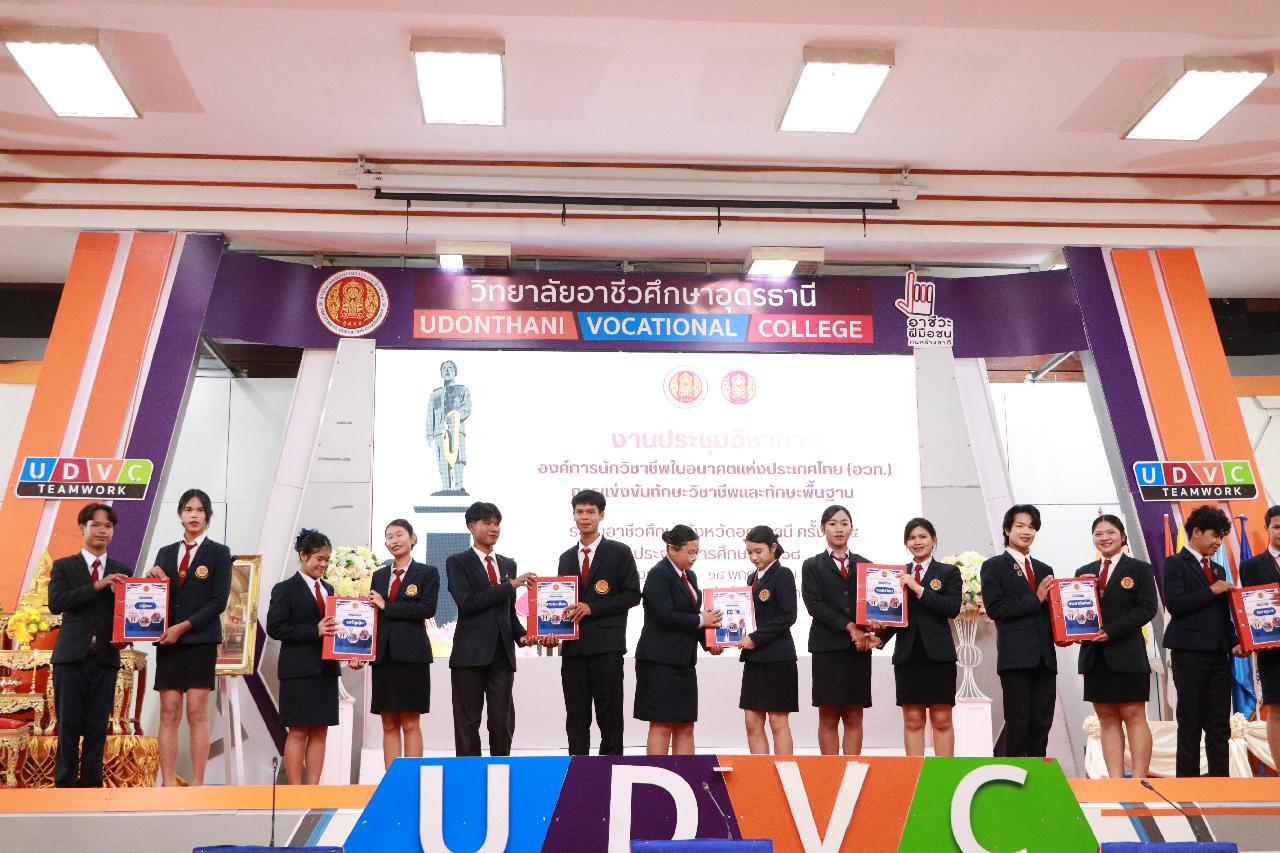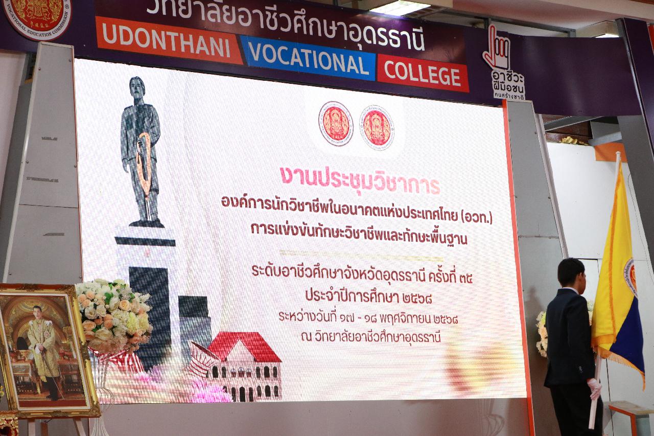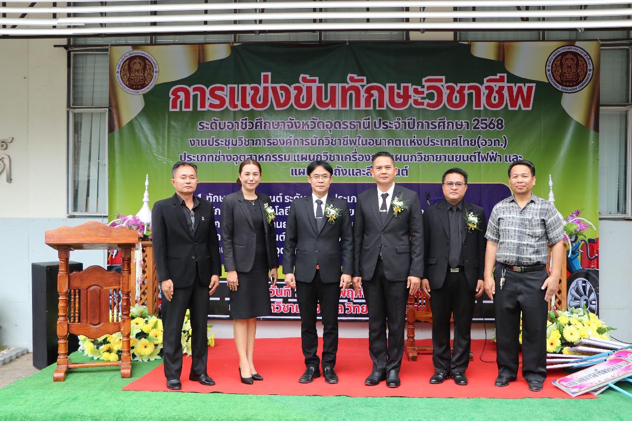 วันอังคารที่ 18 พฤศจิกายน 2568 นายไพฑูรย์ ธนพงศ์ภากรณ์ ผู้อำนวยการวิทยาลัยสารพัดช่างอุดรธานี พร้อมด้วย ว่าที่ร้อยโท อภิเดช สารคำ รองผู้อำนวยการฝ่ายบริหารทรัพยากร , นางยุพาวดี ศิริปีริด์ รองผู้อำนวยการฝ่ายวิชาการ , นางยุวดี ธรรมสุนา รองผู้อำนวยการฝ่ายพัฒนากิจการนักเรียน , นายณัฐพล สิงห์แม่ง รองผู้อำนวยการฝ่ายแผนงานและความร่วมมือ เข้าร่วมงานประชุมวิชาการ องค์การนักวิชาชีพในอนาคตแห่งประเทศไทย(อวท.) การแข่งขันทักษะวิชาชีพและทักษะพื้นฐาน ระดับอาชีวศึกษาจังหวัดอุดรธานี ครั้งที่ 35 ประจำปีการศึกษา 2568 ณ วิทยาลัยอาชีวศึกษาอุดรธานีและวิทยาลัยเทคนิคอุดรธานี