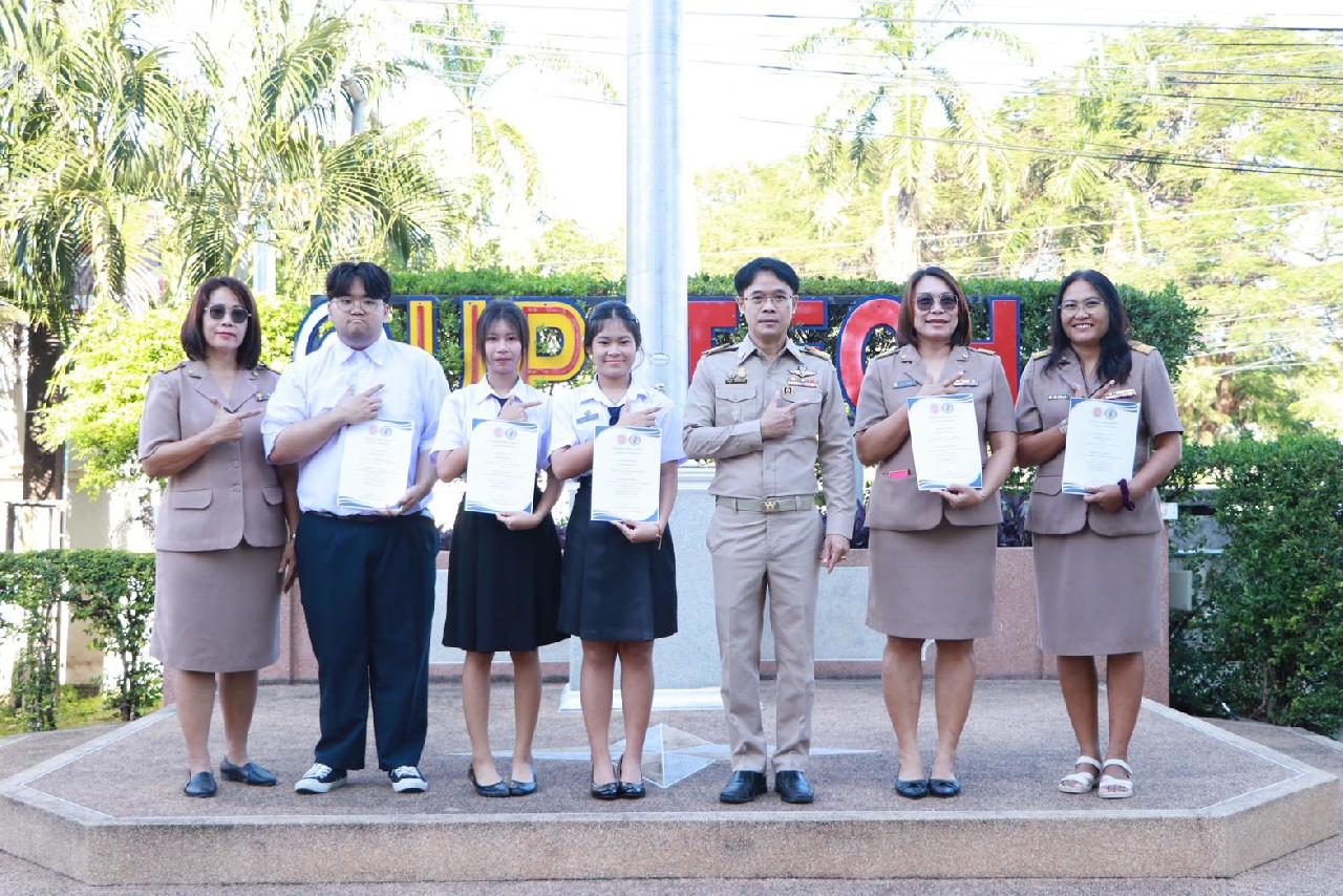 วันจันทร์ที่ 1 ธันวาคม 2568 นายไพฑูรณ์ ธนพงศ์ภากรณ์ ผู้อำนวยการวิทยาลัยสารพัดช่างอุดรธานี พร้อมด้วยคณะผู้บริหาร ครู บุคลากร และนักเรียน นักศึกษา เข้าร่วมพิธีการมอบเกียรติบัตร การแข่งขันทักษะฯ ระดับจังหวัดอุดรธานี และรางวัลสุดยอดนวัตกรรมอาชีวศึกษา การประกวดสิ่งประดิษฐ์ของคนรุ่นใหม่ ระดับอาชีวศึกษาจังหวัดอุดรธานี ประจำปีการศึกษา 2568 ณ บริเวณหน้าเสาธง ตึกอำนวยการวิทยาลัยสารพัดช่างอุดรธานี