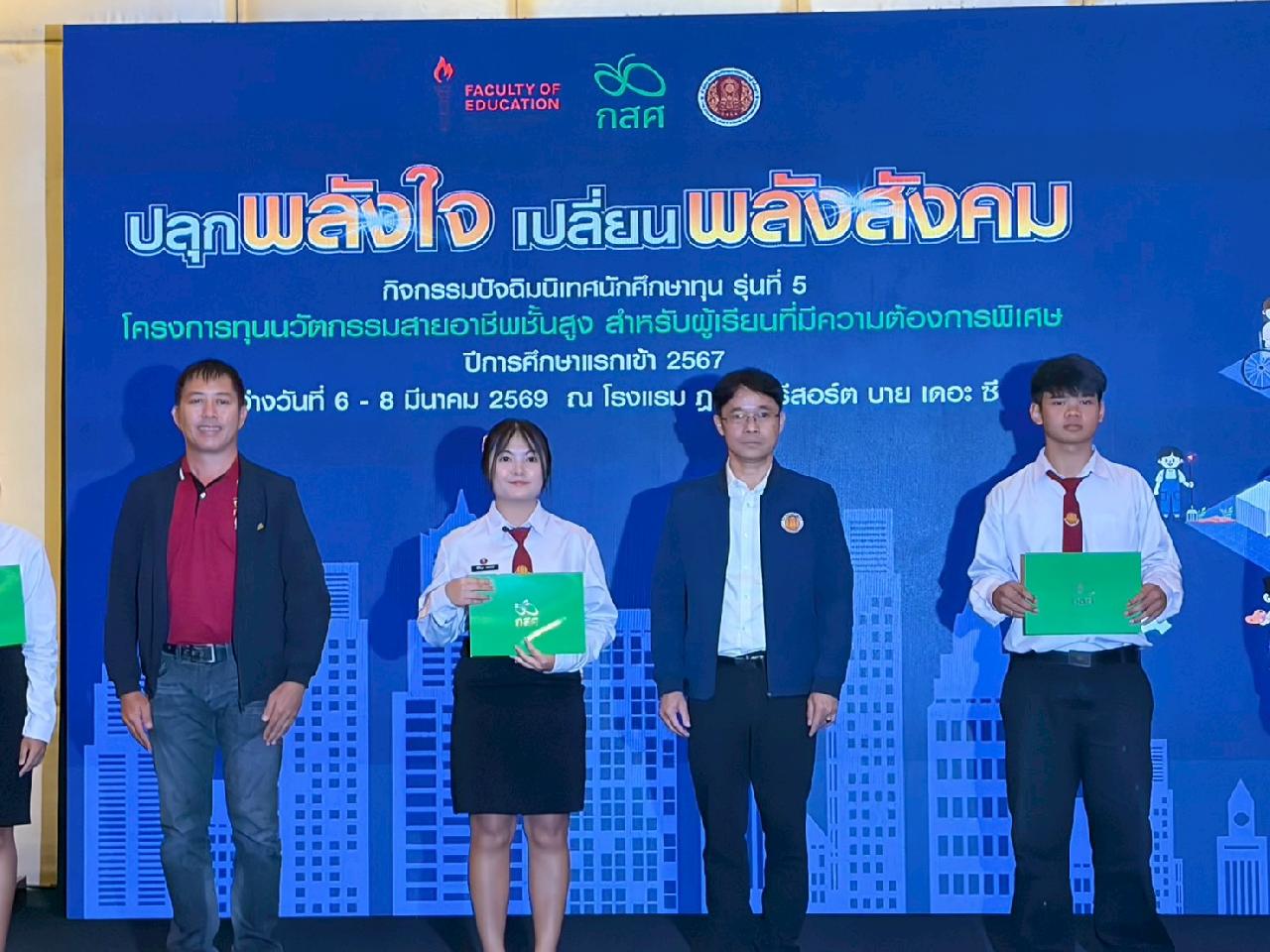 ระหว่างวันที่ 6 - 8 มีนาคม 2569 นายไพฑูรย์ ธนพงศ์ภากรณ์ ผู้อำนวยการวิทยาลัยสารพัดช่างอุดรธานี พร้อมด้วย นางยุพาวดี ศิริปีริด์ รองผู้อำนวยการฝ่ายวิชาการ นางนวลนภา ริมโพธิ์เงิน ครูชำนาญการพิเศษ นายรัตนสิทธิ์ สายสิทธิ์ ครู นางสาวรัตติยากร บุญลาภ ครูพิเศษสอน และนายอัครเดช เวียงเหล็ก ครูพิเศษสอน เข้าร่วมกิจกรรมปัจฉิมนิเทศนักศึกษาทุนรุ่นที่5 โครงการทุนนวัตกรรมสายอาชีพชั้นสูงสำหรับผู้เรียนที่มีความต้องการพิเศษ ณ โรงแรม ฎ-ชฎา รีสอร์ท บาย เดอะ ซี อำเภอสัตหีบ จังหวัดชลบุรี
