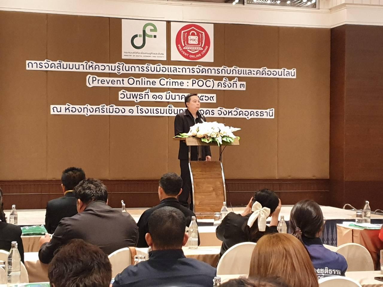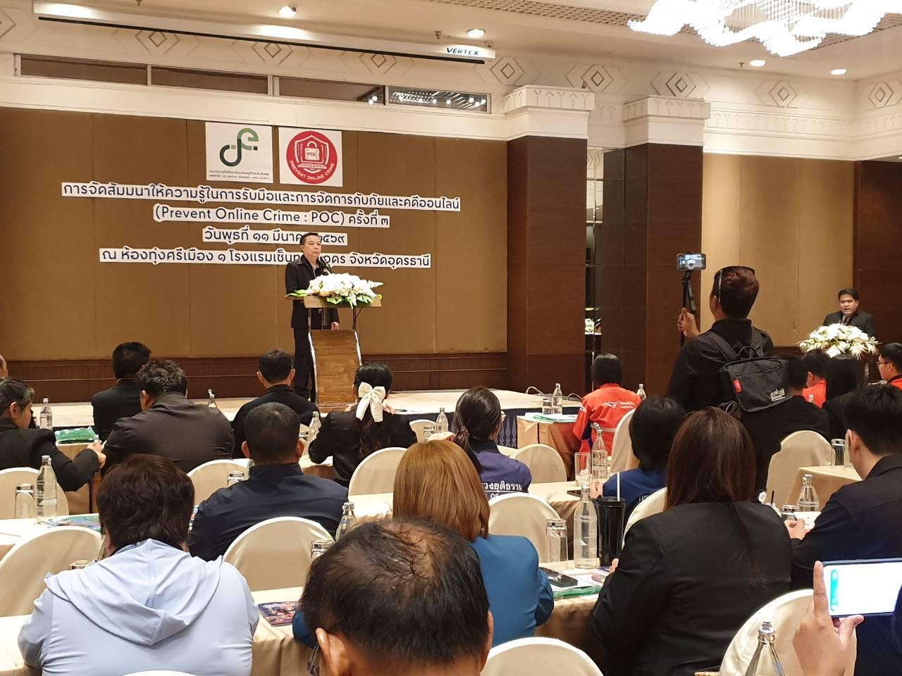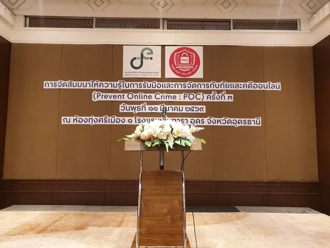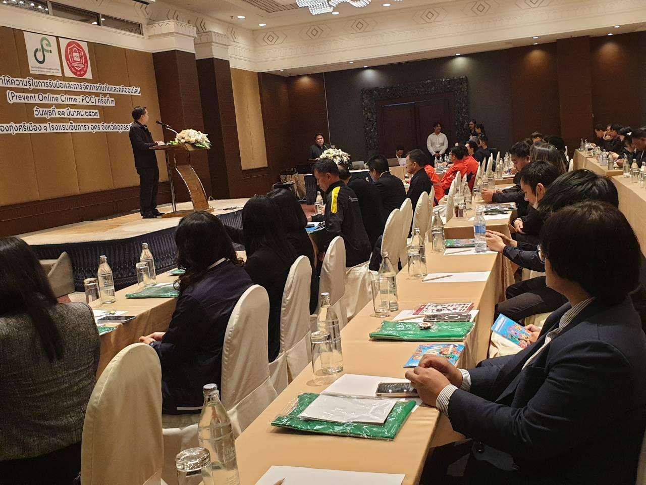 วันพุธที่ 11 มีนาคม 2569 นายไพฑูรย์ ธนพงศ์ภากรณ์ ผู้อำนวยการ ได้มอบหมายให้ นายสถาพร จันทะพา หัวหน้างานศูนย์ข้อมูลฯ, นางสาวพัชรี บุญมี ครูสอนสาขาวิชาเทคโนโลยีสารสนเทศ และนางภัทรภรณ์ อิงสุรารักษ์ เจ้าหน้าที่งานศูนย์ข้อมูลฯ เข้าร่วมงานสัมมนาให้ความรู้ในการรับมือและการจัดการกับภัยและคดีออนไลน์ สำหรับเจ้าหน้าที่ภาครัฐ และภาคเอกชน นักศึกษา หรือประชาชนทั่วไป ณ ห้องทุ่งศรีเมือง 1 โรงแรมเซ็นทาราคอนเวชั่นเซ็นเตอร์ จ.อุดรธานี