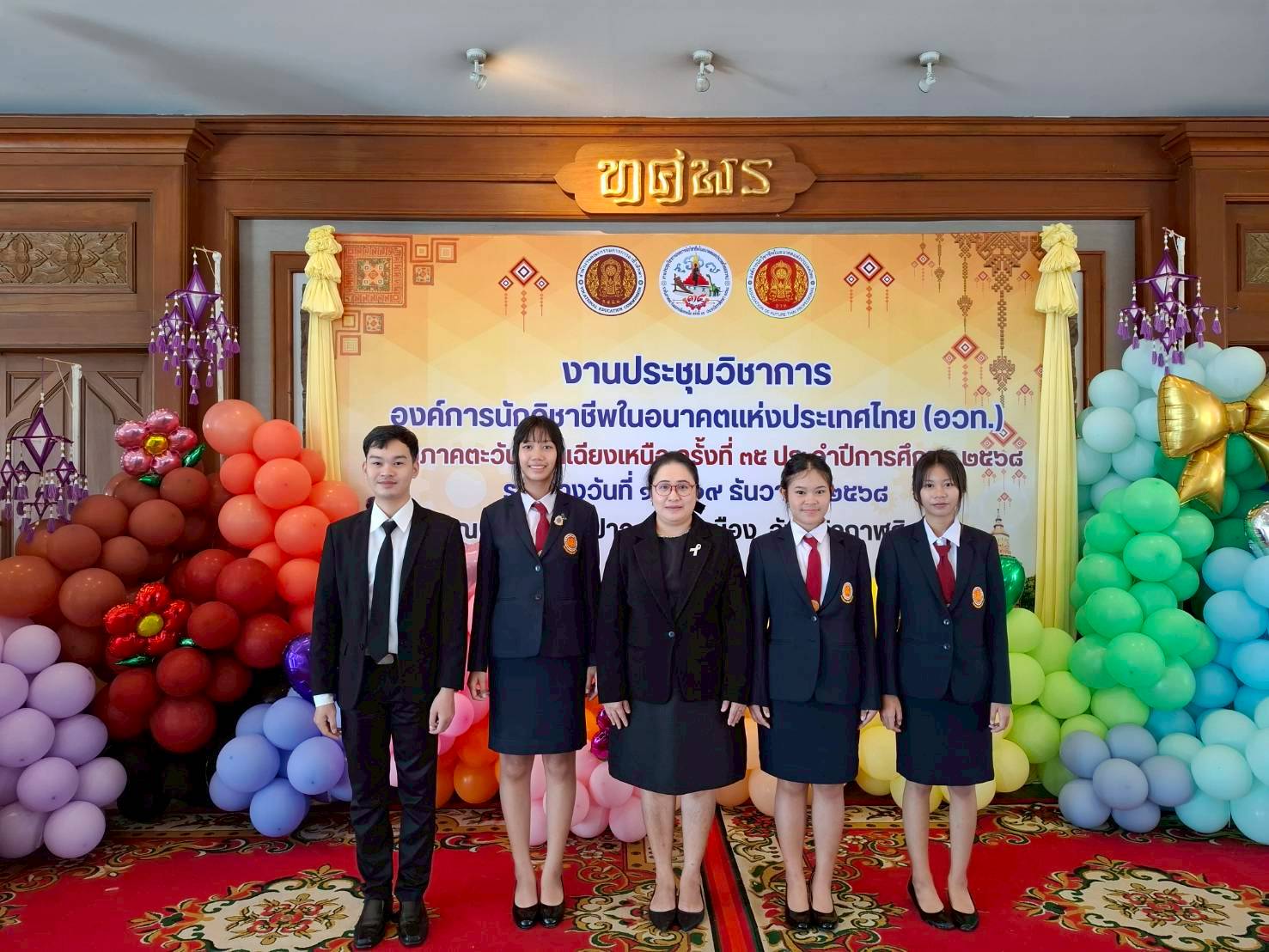 วันอังคารที่ 16 ธันวาคม 2568 นายไพฑูรย์ ธนพงศ์ภากรณ์ ผู้อำนวยการ ได้มอบหมายให้นางยุวดี ธรรมสุนา รองผู้อำนวยการฝ่ายพัฒนากิจการนักเรียนนักศึกษา พร้อมด้วยครูวิทวัช คงเลิศ ครูที่ปรึกษา อวท.และนักศึกษาองค์การนักวิชาชีพฯ เข้าร่วมพิธีเปิดการประชุมวิชาการ อวท.ภาคตะวันออกเฉียงเหนือ ประจำปีการศึกษา 2568 ณ ..
