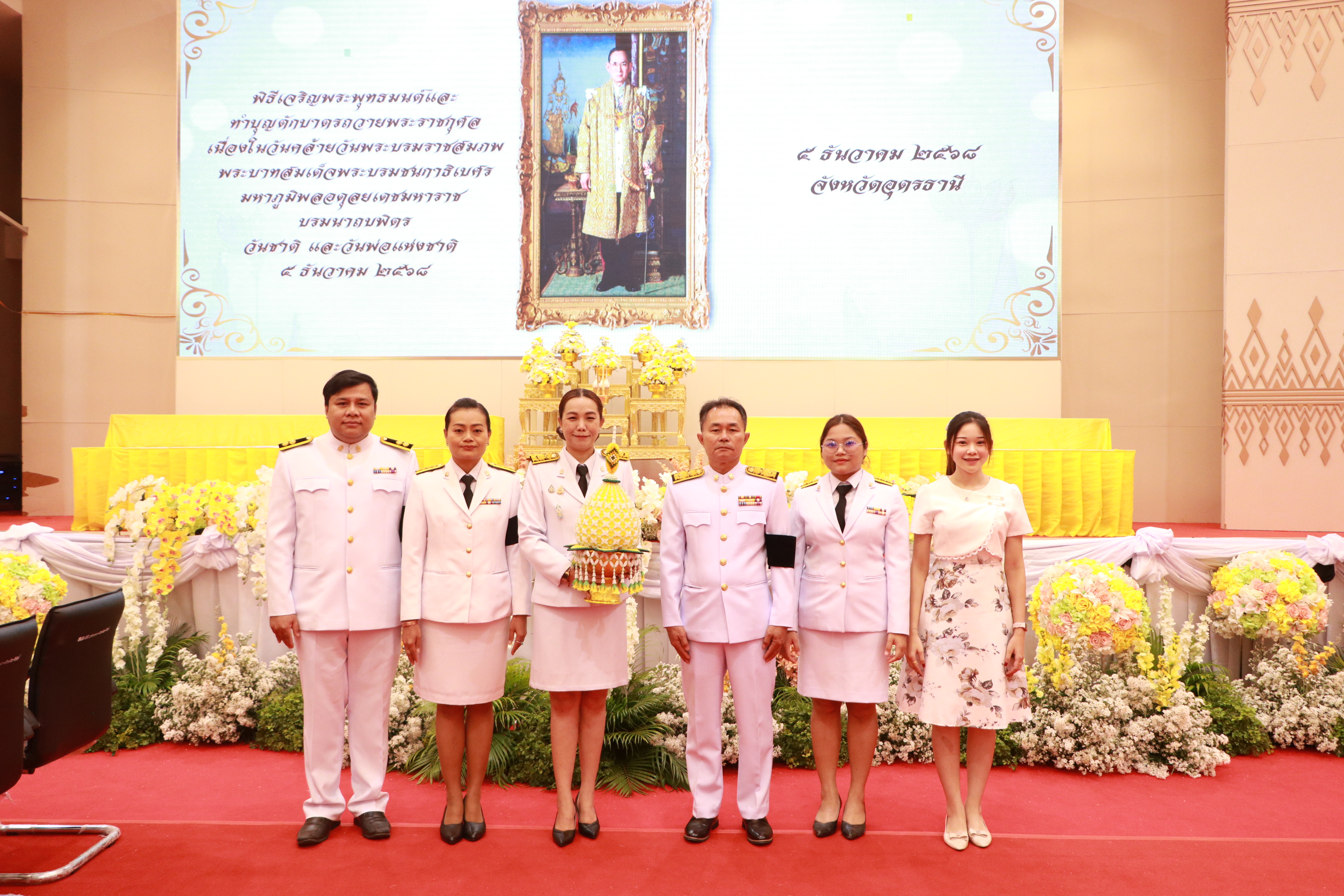 วันศุกร์ที่ 5 ธันวาคม 2568 นายไพฑูรย์ ธนพงศ์ภากรณ์ ผู้อำนวยการวิทยาลัยสารพัดช่างอุดรธานี มอบหมายให้ นางยุพาวดี ศิริปีริด์ รองผู้อำนวยการฝ่ายวิชาการ พร้อมทั้งคณะครู และบุคลากรทางการศึกษา เข้าร่วมพิธีเจริญพระพุทธมนต์ ทำบุญตักบาตรถวายพระราชกุศล และพิธีวางพุ่มดอกไม้ถวายบังคมเบื้องหน้าพระบรมฉายาลักษณ์ เ..