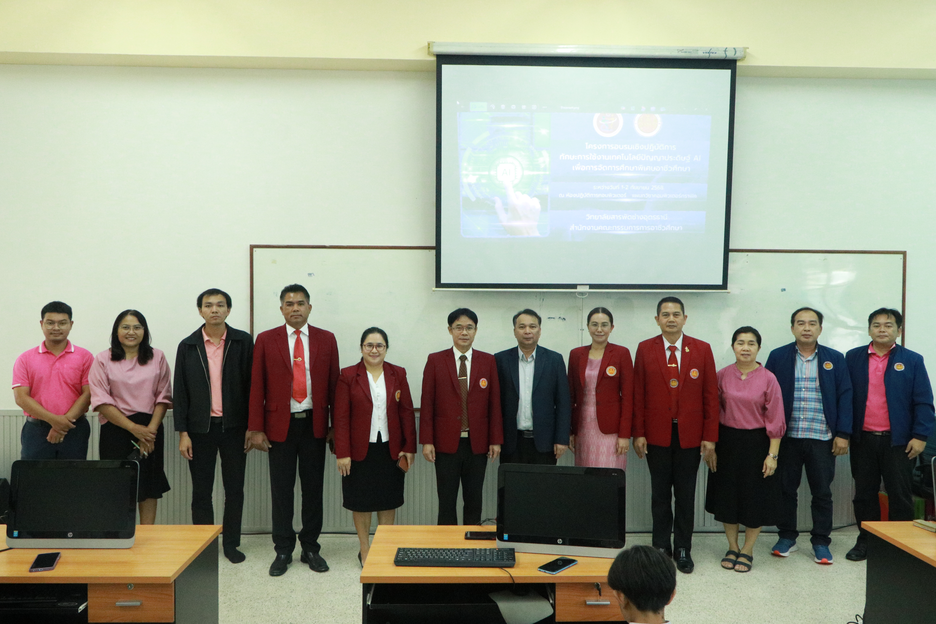 วันอังคาร ที่ 2 กันยายน 2568 นายไพฑูรย์ ธนพงศ์ภากรณ์ ผู้อำนวยการวิทยาลัยสารพัดช่างอุดรธานี พร้อมด้วย คณะผู้บริหาร, คณะครู, บุคลากรทางการศึกษา และนักเรียนนักศึกษา เข้าร่วมโครงการอบรมเชิงปฏิบัติการ ทักษะการใช้งานเทคโนโลยีปัญญาประดิษฐ์ AI เพื่อการจัดการศึกษาพิเศษอาชีวศึกษา ณ แผนกคอมพิวเตอร์กราฟิก วิ..
