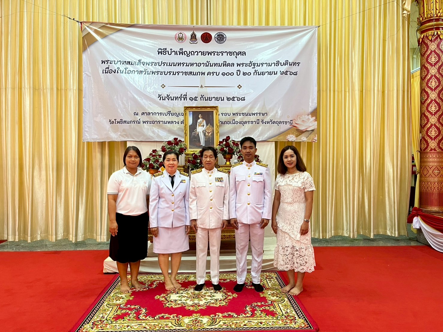 เข้าร่วมพิธีเจริญพระพุทธมนต์และทำบุญตักบาตรเฉลิมพระเกียรติพระบาทสมเด็จพระปรเมนทรมหาอานันทมหิดล พระอัฐมรามาธิบดินทร เนื่องในโอกาส วันพระราชสมภพครบ 100 ปี 20 กันยายน 2568..