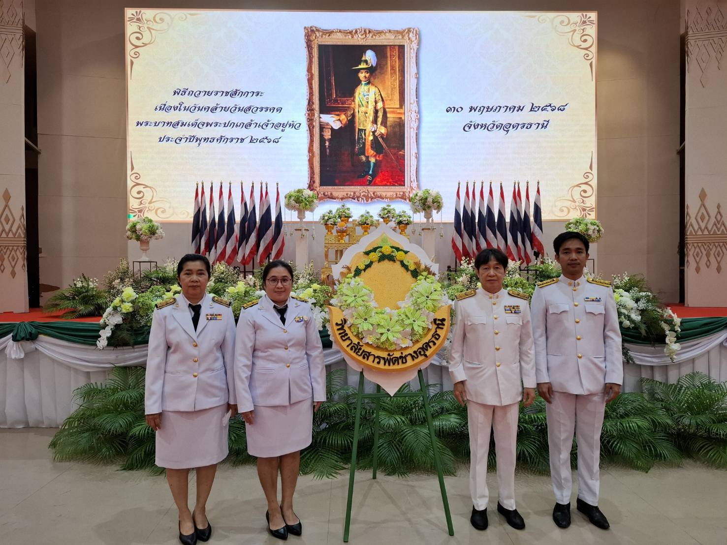 วันจันทร์ ที่ 9 มิถุนายน 2568 นายไพฑูรย์ ธนพงศ์ภากรณ์ ผู้อำนวยการวิทยาลัยสารพัดช่างอุดรธานี มอบหมายให้ ว่าที่ร้อยโทอภิเดช สารคำ รองผู้อำนวยการฝ่ายบริหารทรัพยากร, คณะครู และบุคลากรทางการศึกษา เข้าร่วมพิธีถวายราชสักการะเนื่องในวันคล้ายวันสวรรคต พระบาทสมเด็จพระปรเมนทรมหาอานันทมหิดล พระอัฐมรามาธิบดินทร..