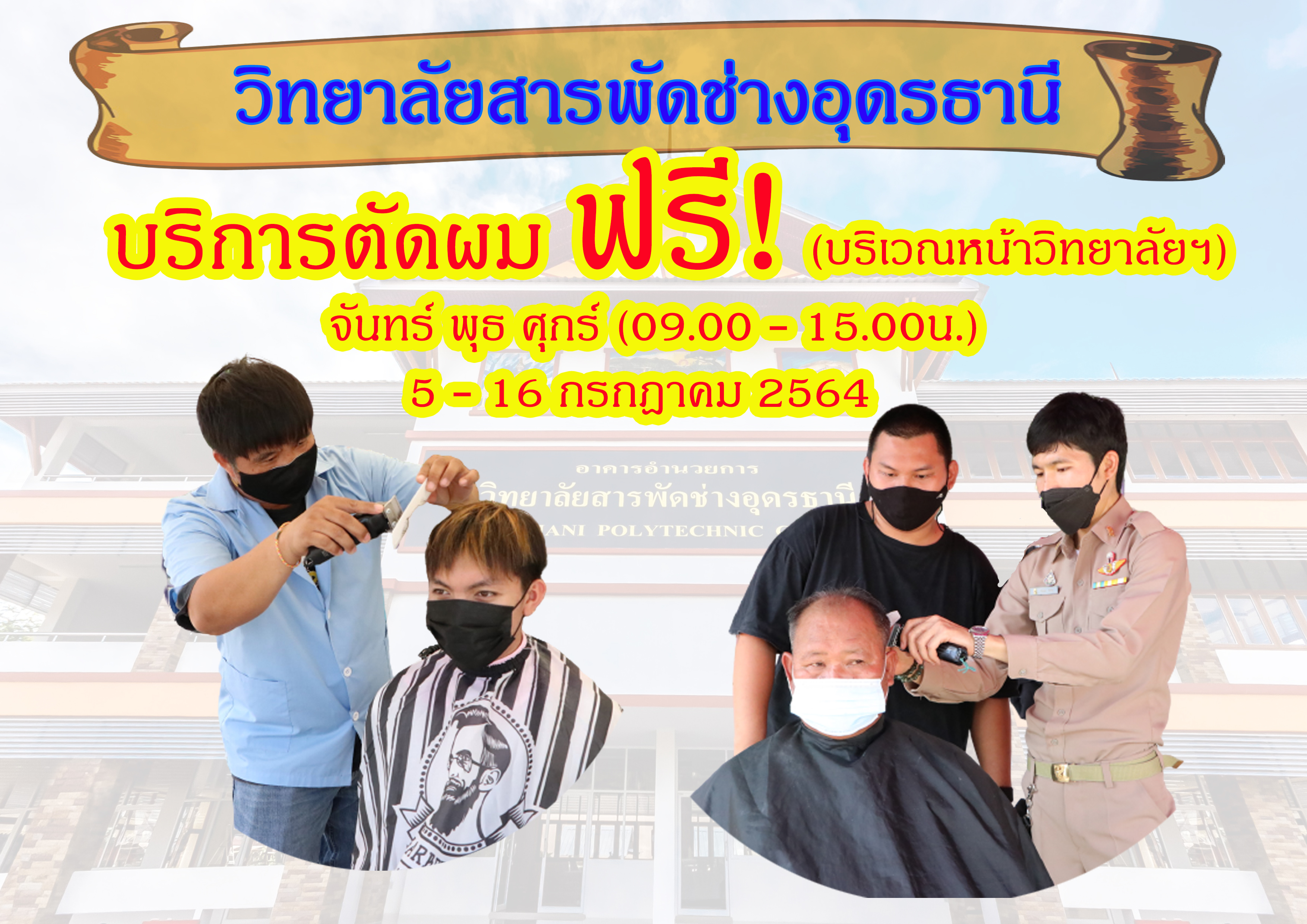 บริการตัดผม ฟรี! สำหรับประชาชนทั่วไป ณ หน้าวิทยาลัยสารพัดช่างอุดรธานี ..