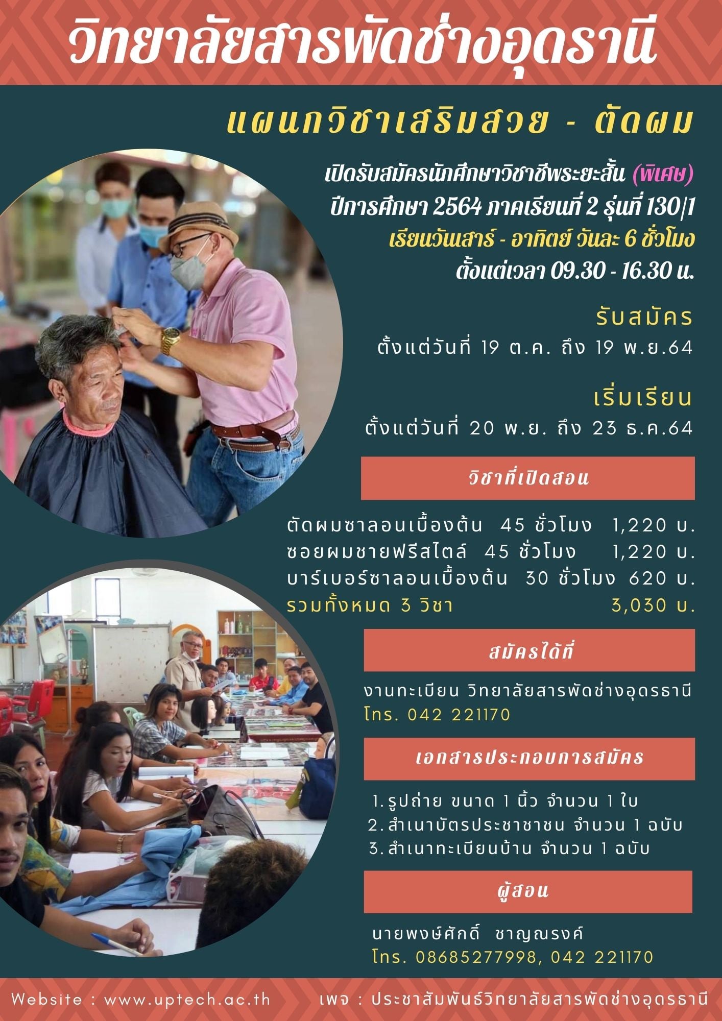 รับสมัครนักศึกษาวิชาชีพระยะสั้น วิชาตัดผมซาลอนเบื้องต้น / ซอยผมชายฟรีสไตล์ / บาร์เบอร์ซาลอนเบื้องต้น สมัครกันได้เลยนะคะ หรือสามารถสอบถามเพิ่มเติมตามเบอร์โทรที่ให้ไว้ .... ..