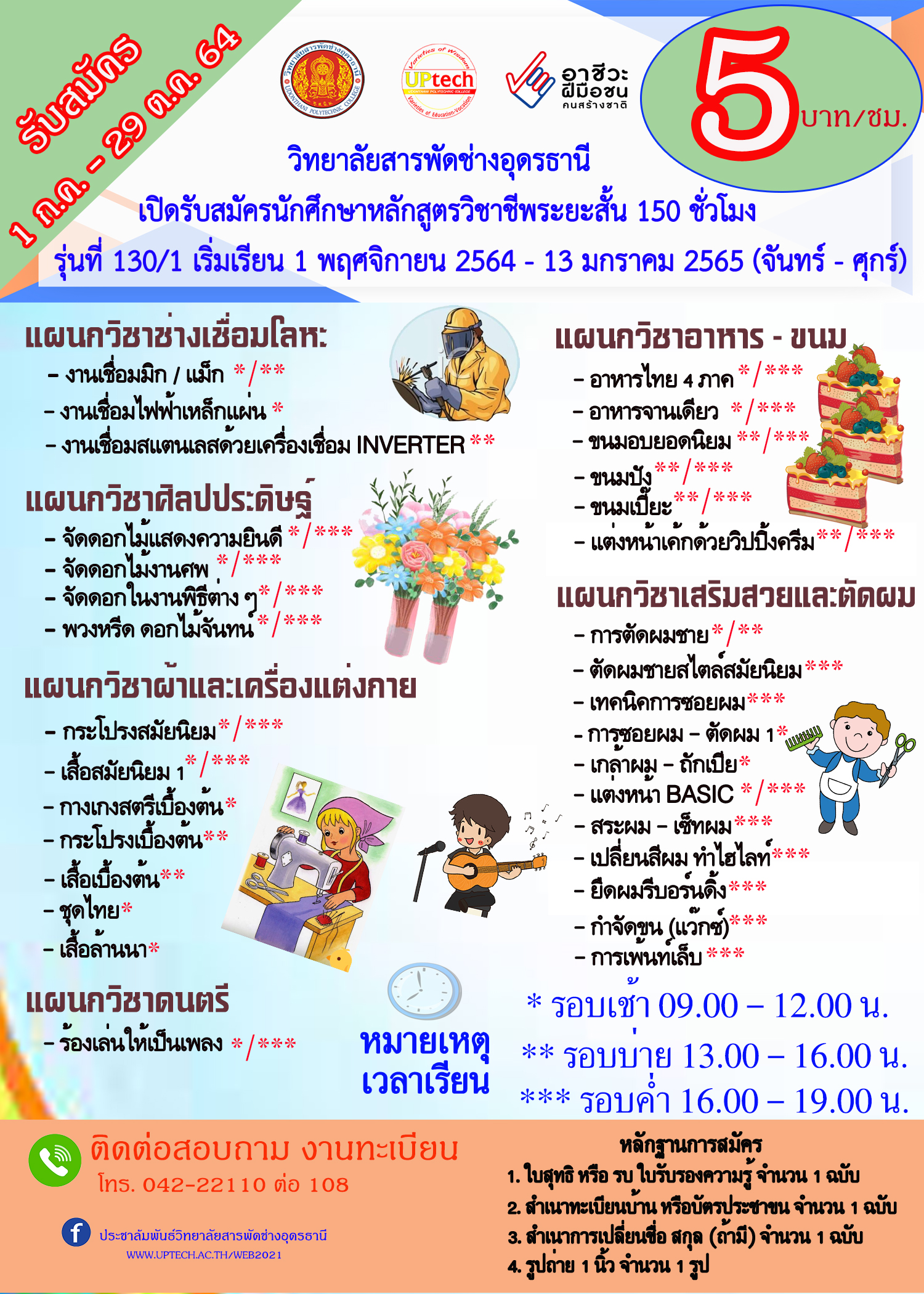 เปิดรับนักศึกษาหลักสูตรวิชาชีพระยะสั้น รุ่นที่ 130/2 เริ่มเรียนตั้งแต่วันที่ 17 ม.ค.65 สนใจสอบถามเพิ่มเติมได้ที่งานทะเบียน ..