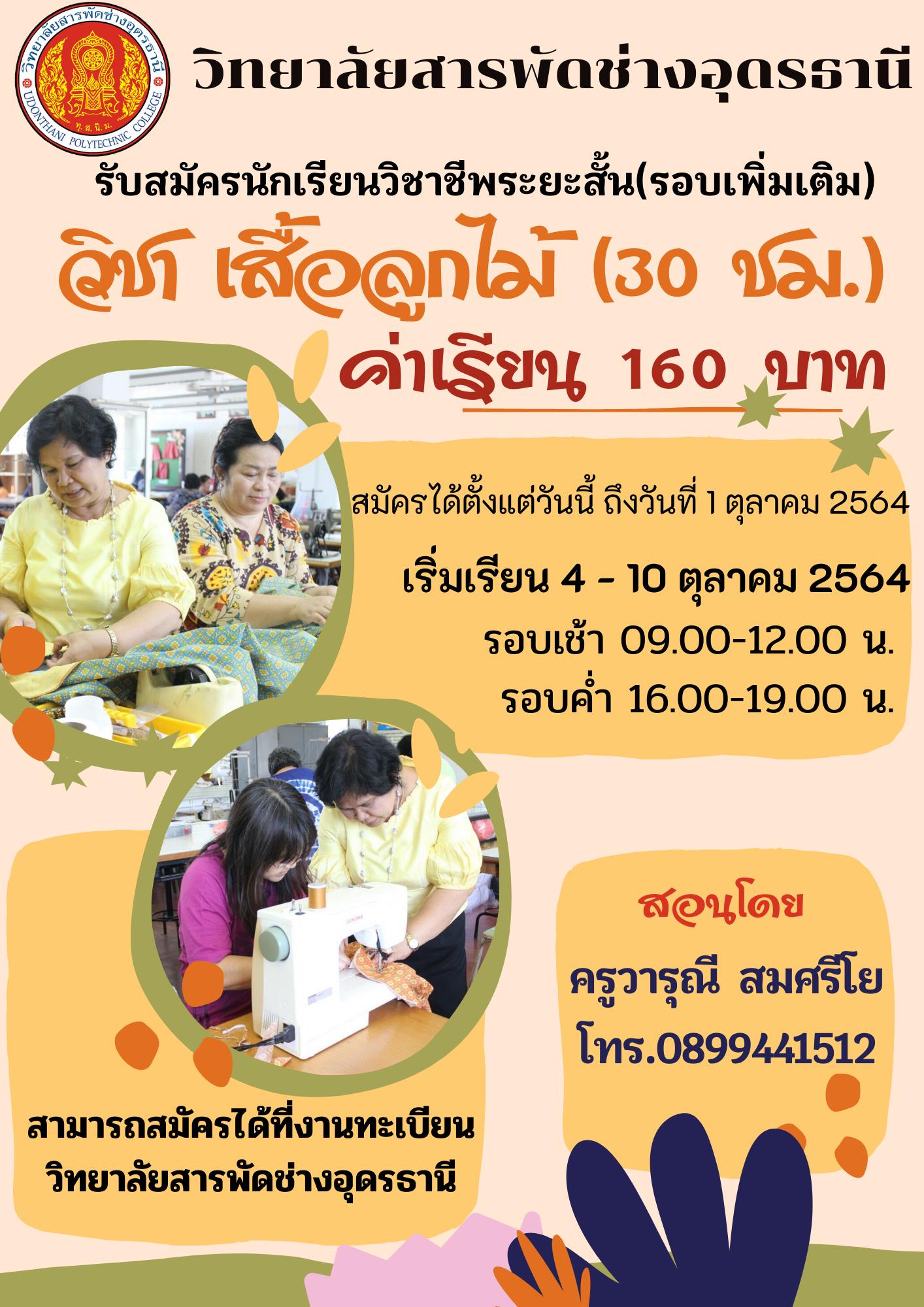 รับสมัครนักศึกษาวิชาชีพระยะสั้น วิชาเสื้อลูกไม้ สมัครกันได้เลยนะคะ หรือสามารถสอบถามเพิ่มเติมตามเบอร์โทรที่ให้ไว้ .... ..