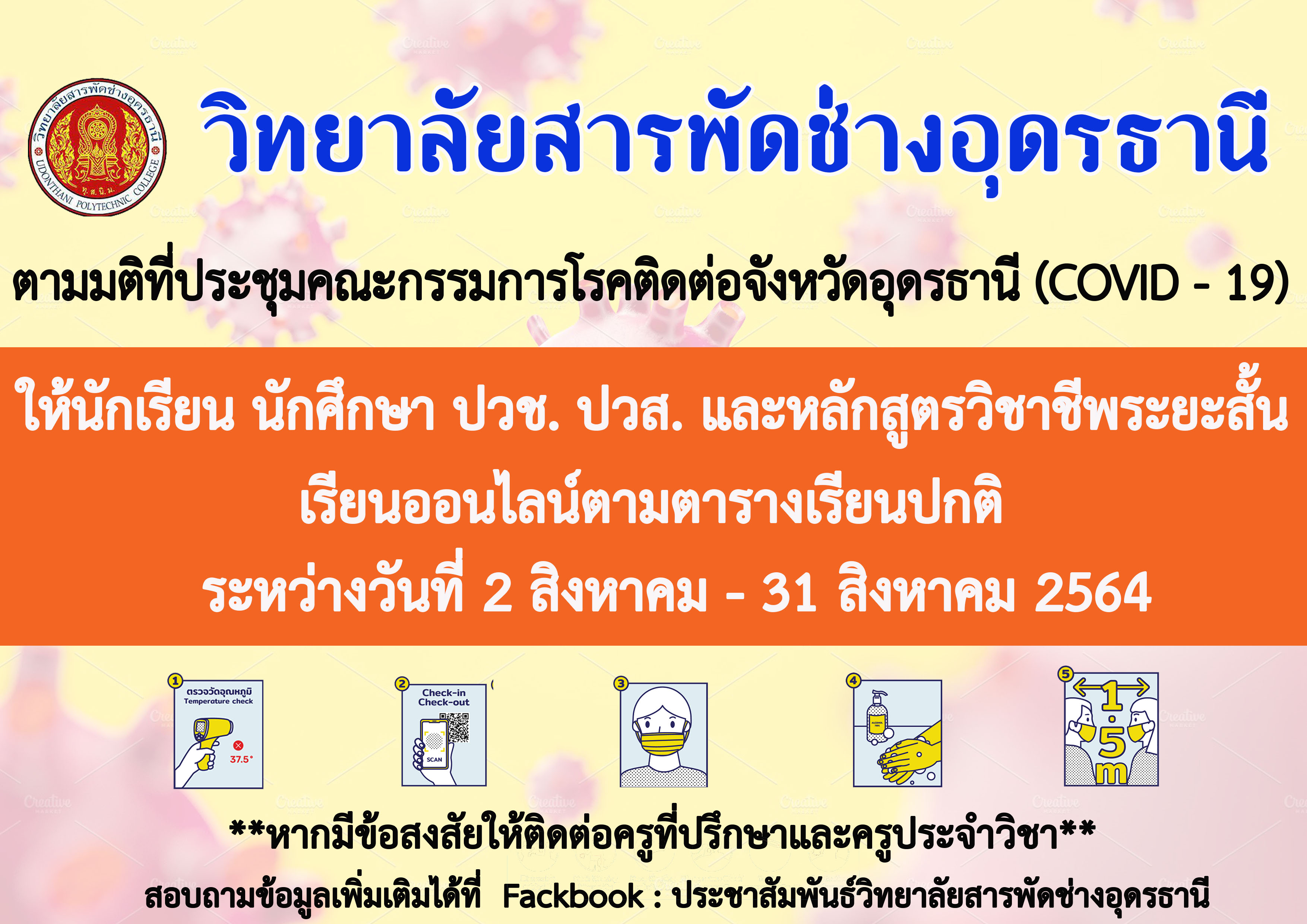 ตามมติที่ประชุมคณะกรรมการโรคติดต่อจังหวัดอุดรธานี (COVID - 19) ให้จัดการเรียนการสอนแบบ On - Line ..