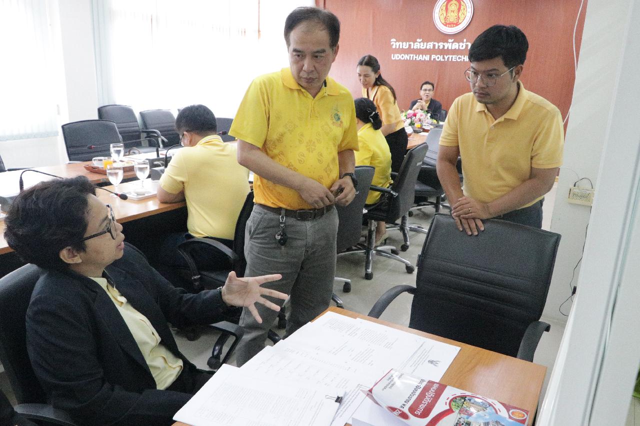 วันพุธ ที่ 30 กรกฎาคม 2568 นายไพฑูรย์ ธนพงศ์ภากรณ์ ผู้อำนวยการวิทยาลัยสารพัดช่างอุดรธานี พร้อมด้วย ว่าที่ร้อยโทอภิเดช สารคำ รองผู้อำนวยการฝ่ายบริหารทรัพยากร, นางยุพาวดี ศิริปีริด์ รองผู้อำนวยการฝ่ายวิชาการ, คณะครู และบุคลากรทางการศึกษา ร่วมต้อนรับคณะกรรมการตรวจสอบโครงการตามแผนบูรณาการ งานตรวจสอบภายในร่วมกับกลุ่มตรวจสอบภายใน ณ ห้องประชุมไผ่ทอง ชั้น 2 อาคารอำนวยการ วิทยาลัยสารพัดช่างอุดรธานี