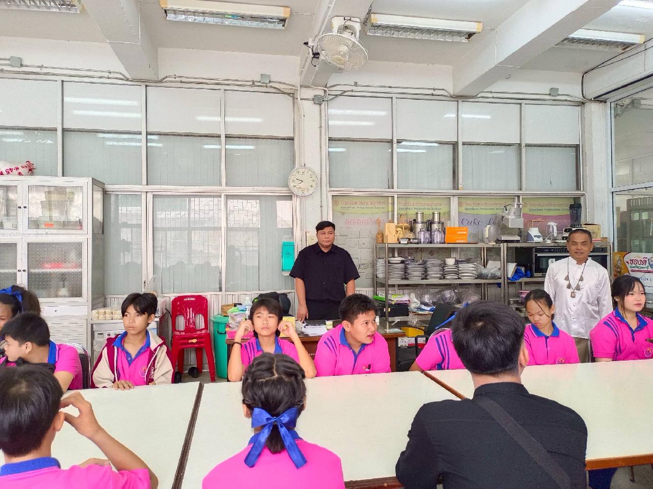 วันอังคารที่ 4 พฤศจิกายน 2568 นายเชิดศักดิ์ คำสุนันท์ หัวหน้างานพัฒนาหลักสูตรการเรียนการสอน พร้อมด้วย นายปิยะ เอมโอษฐ์ ครูแผนกวิชาอาหาร-ขนม และนักศึกษาฝึกประสบการณ์วิชาชีพครู ร่วมต้อนรับคณะครูและนักเรียน โรงเรียนอุดรพิทยานุกูล 2 หลักสูตรต่อเนื่องเชื่อมโยงการศึกษาขั้นพื้นฐานกับอาชีวศึกษาและอุดมศึกษา ณ วิทยาลัยสารพัดช่างอุดรธานี