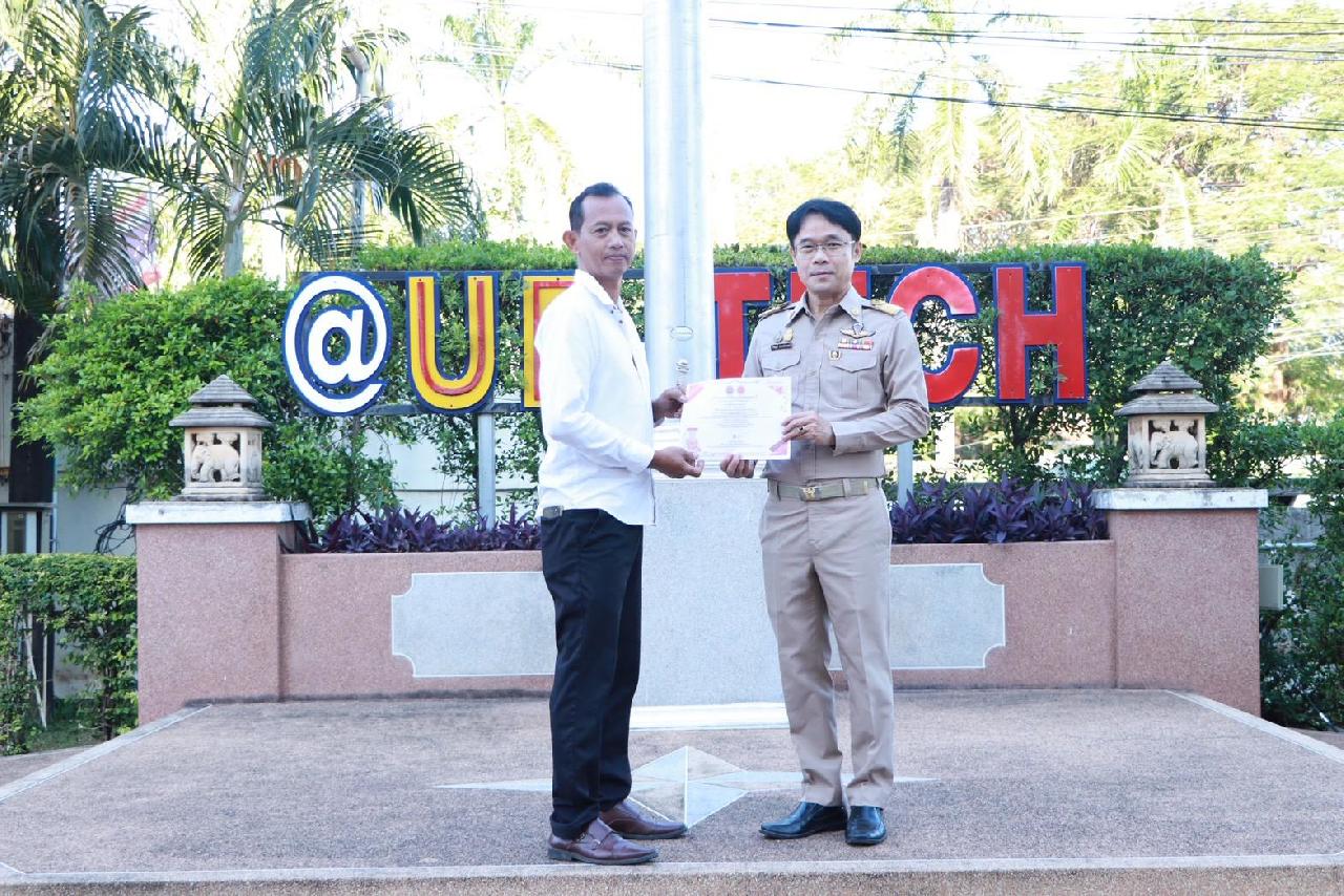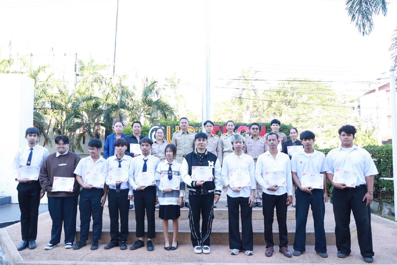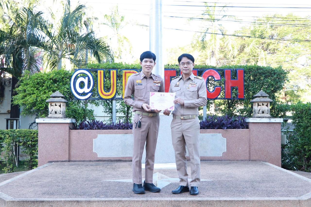 วันจันทร์ที่ 1 ธันวาคม 2568 นายไพฑูรณ์ ธนพงศ์ภากรณ์ ผู้อำนวยการวิทยาลัยสารพัดช่างอุดรธานี พร้อมด้วยคณะผู้บริหาร ครู บุคลากร และนักเรียน นักศึกษา เข้าร่วมพิธีการมอบเกียรติบัตร การแข่งขันทักษะฯ ระดับจังหวัดอุดรธานี และรางวัลสุดยอดนวัตกรรมอาชีวศึกษา การประกวดสิ่งประดิษฐ์ของคนรุ่นใหม่ ระดับอาชีวศึกษาจังหวัดอุดรธานี ประจำปีการศึกษา 2568 ณ บริเวณหน้าเสาธง ตึกอำนวยการวิทยาลัยสารพัดช่างอุดรธานี