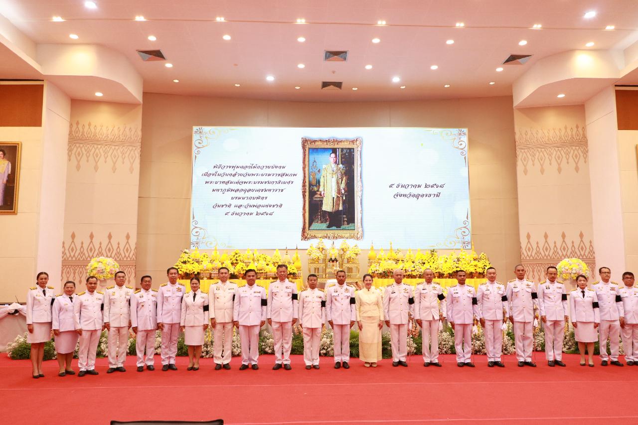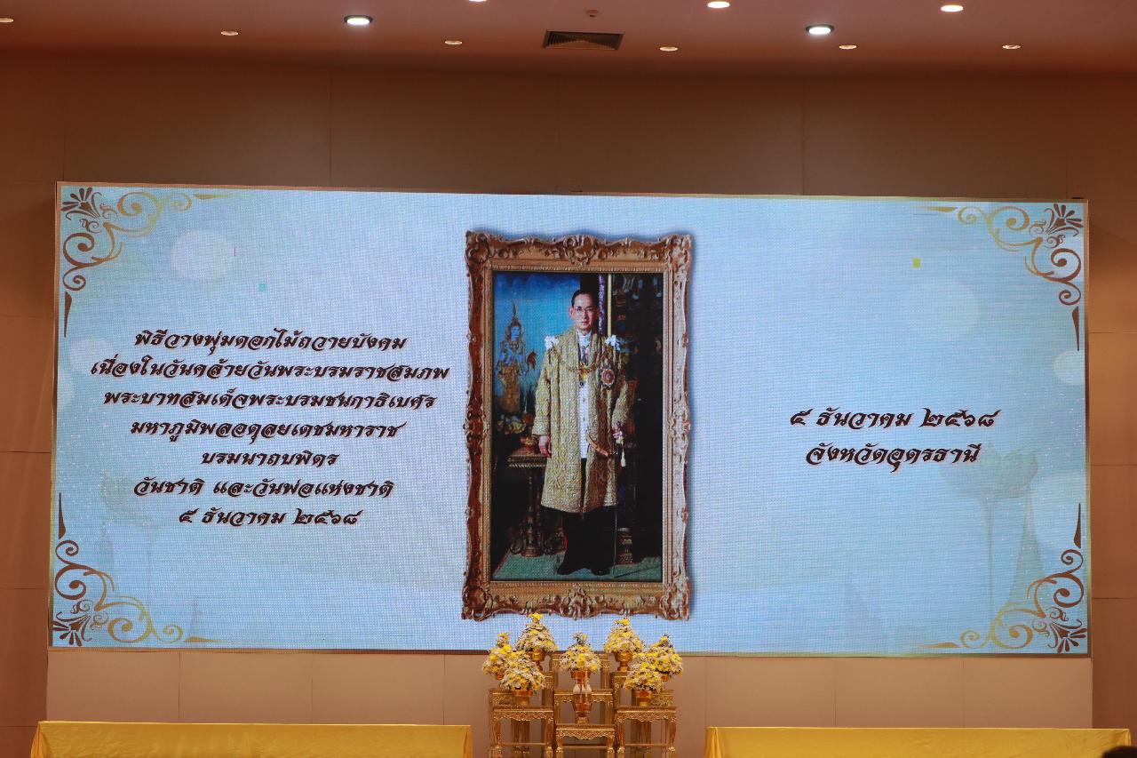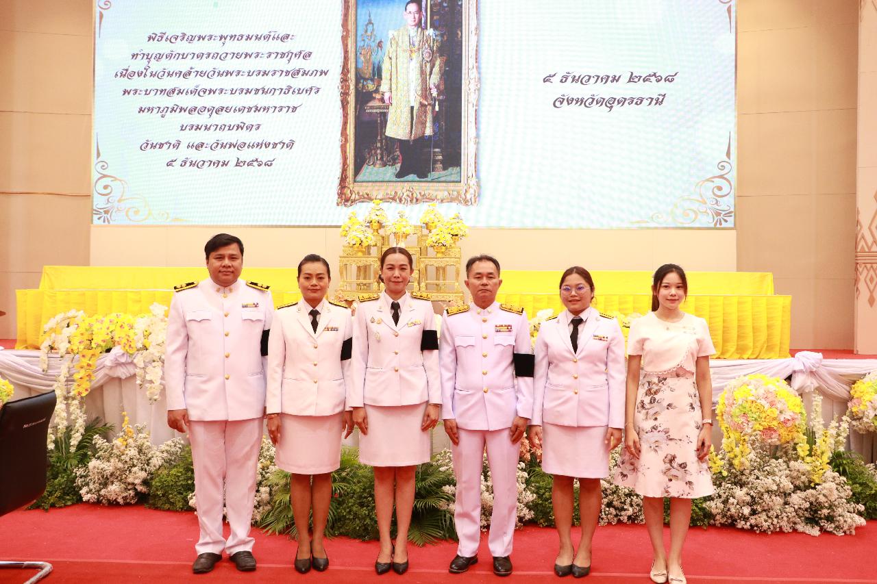 วันศุกร์ที่ 5 ธันวาคม 2568 นายไพฑูรย์ ธนพงศ์ภากรณ์ ผู้อำนวยการวิทยาลัยสารพัดช่างอุดรธานี มอบหมายให้ นางยุพาวดี ศิริปีริด์ รองผู้อำนวยการฝ่ายวิชาการ พร้อมทั้งคณะครู และบุคลากรทางการศึกษา เข้าร่วมพิธีเจริญพระพุทธมนต์ ทำบุญตักบาตรถวายพระราชกุศล และพิธีวางพุ่มดอกไม้ถวายบังคมเบื้องหน้าพระบรมฉายาลักษณ์ เนื่องในวันคล้ายวันพระราชสมภพ พระบาทสมเด็จพระบรมชนกาธิเบศร มหาภูมิพลอดุลยเดชมหาราช บรมนาถบพิตร วันชาติ และวันพ่อแห่งชาติ ณ หอประชุมทองใหญ่ ศาลากลางจังหวัดอุดรธานี
