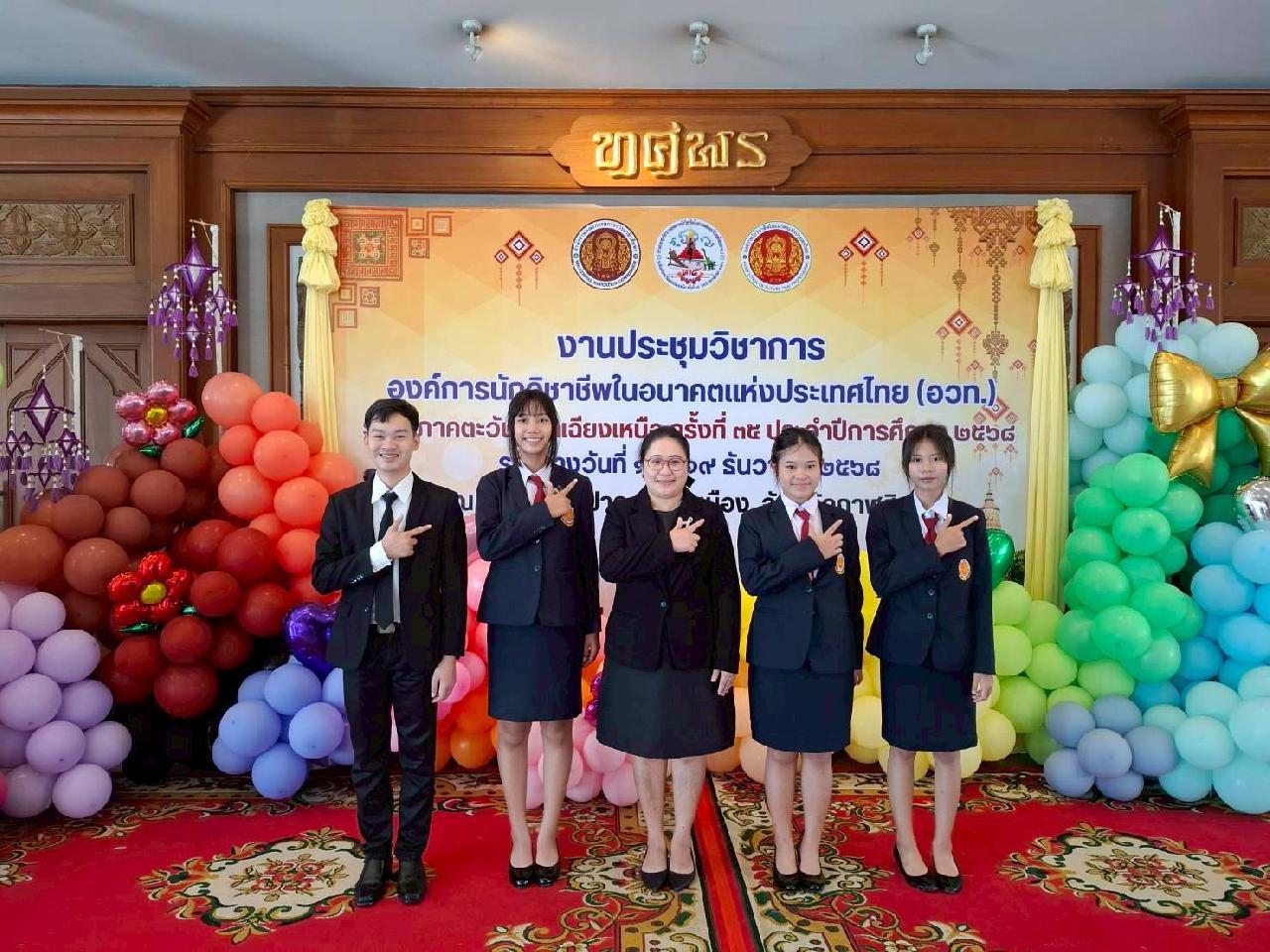 วันอังคารที่ 16 ธันวาคม 2568 นายไพฑูรย์ ธนพงศ์ภากรณ์ ผู้อำนวยการ ได้มอบหมายให้นางยุวดี ธรรมสุนา รองผู้อำนวยการฝ่ายพัฒนากิจการนักเรียนนักศึกษา พร้อมด้วยครูวิทวัช คงเลิศ ครูที่ปรึกษา อวท.และนักศึกษาองค์การนักวิชาชีพฯ เข้าร่วมพิธีเปิดการประชุมวิชาการ อวท.ภาคตะวันออกเฉียงเหนือ ประจำปีการศึกษา 2568 ณ โรงแรมลำปาว อ.เมือง จ.กาฬสินธุ์